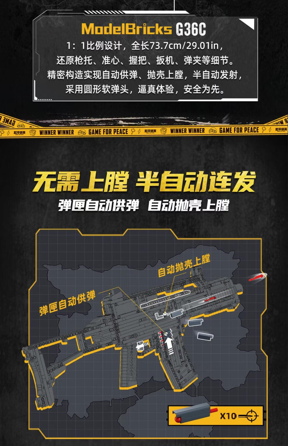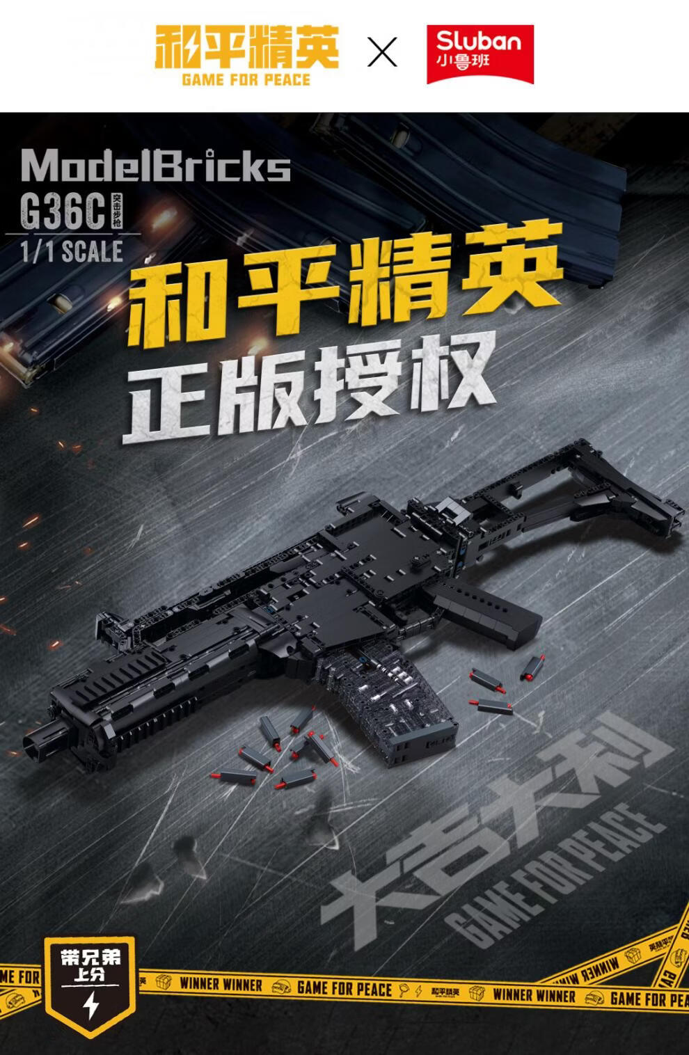 小鲁班SG36C突击步枪积木玩具模型拼图礼物和平精英周边摆件 B1357 SMG-45DS冲锋枪
