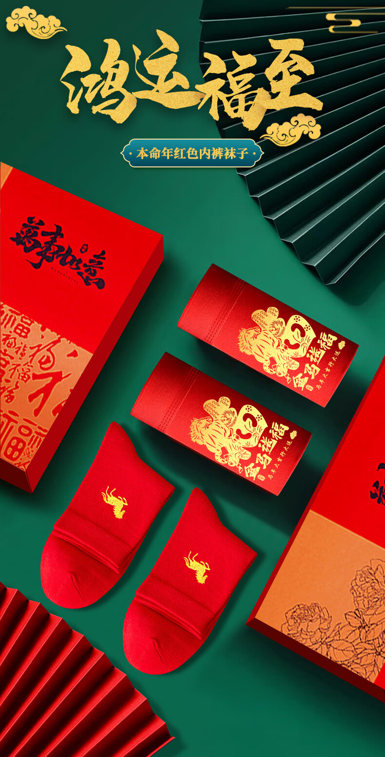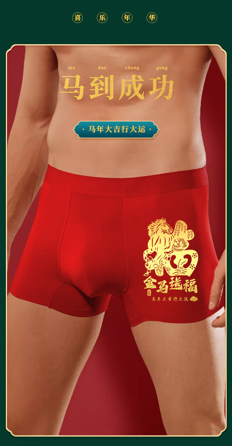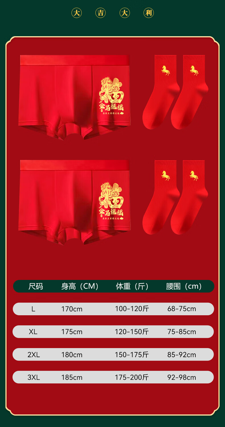 雅鹿【马年限定】男士内裤男本命年红色生肖结婚礼物喜庆短裤衩袜子 马年定制礼盒 袜子2双+内裤 2条 XL 建议120-140斤