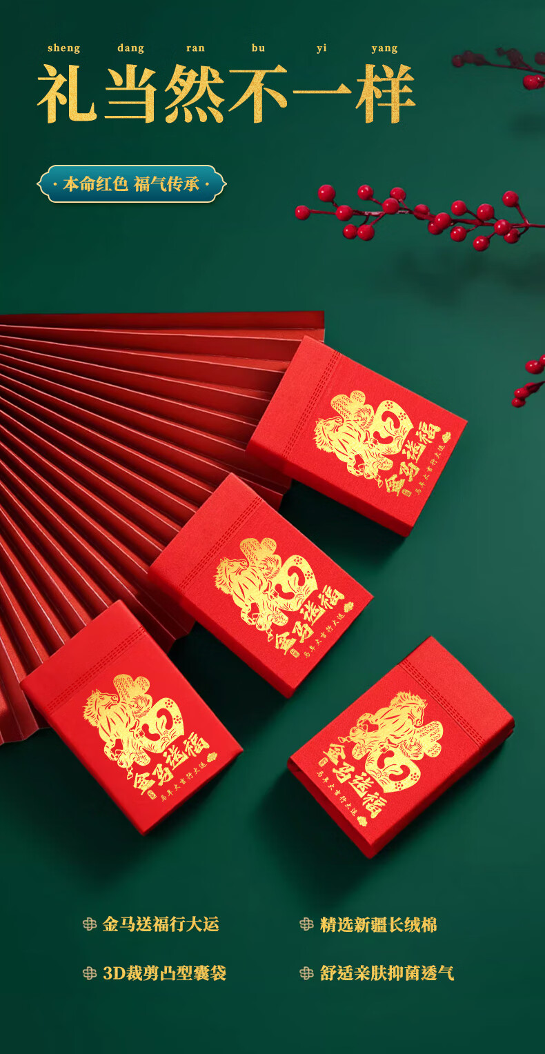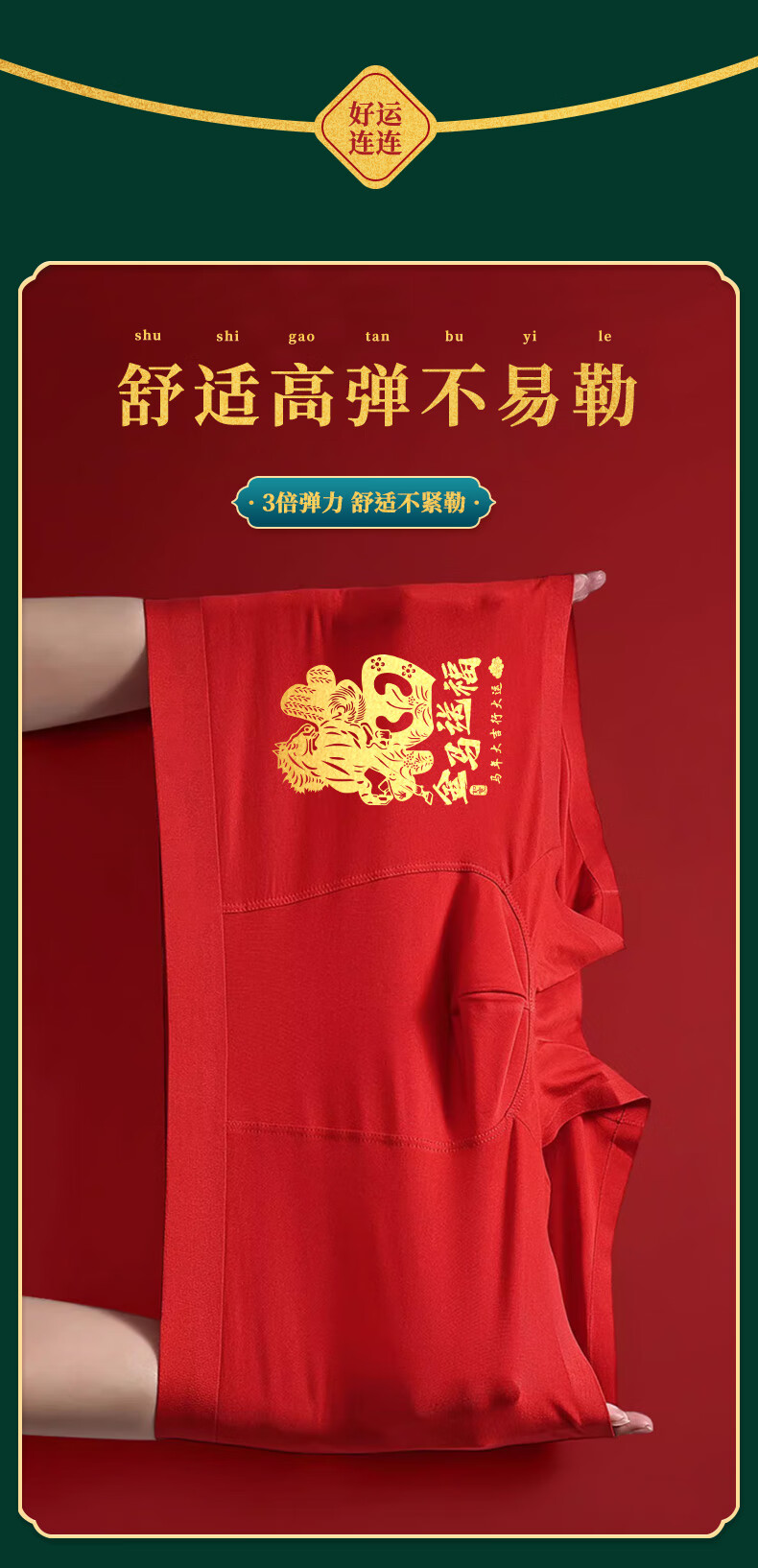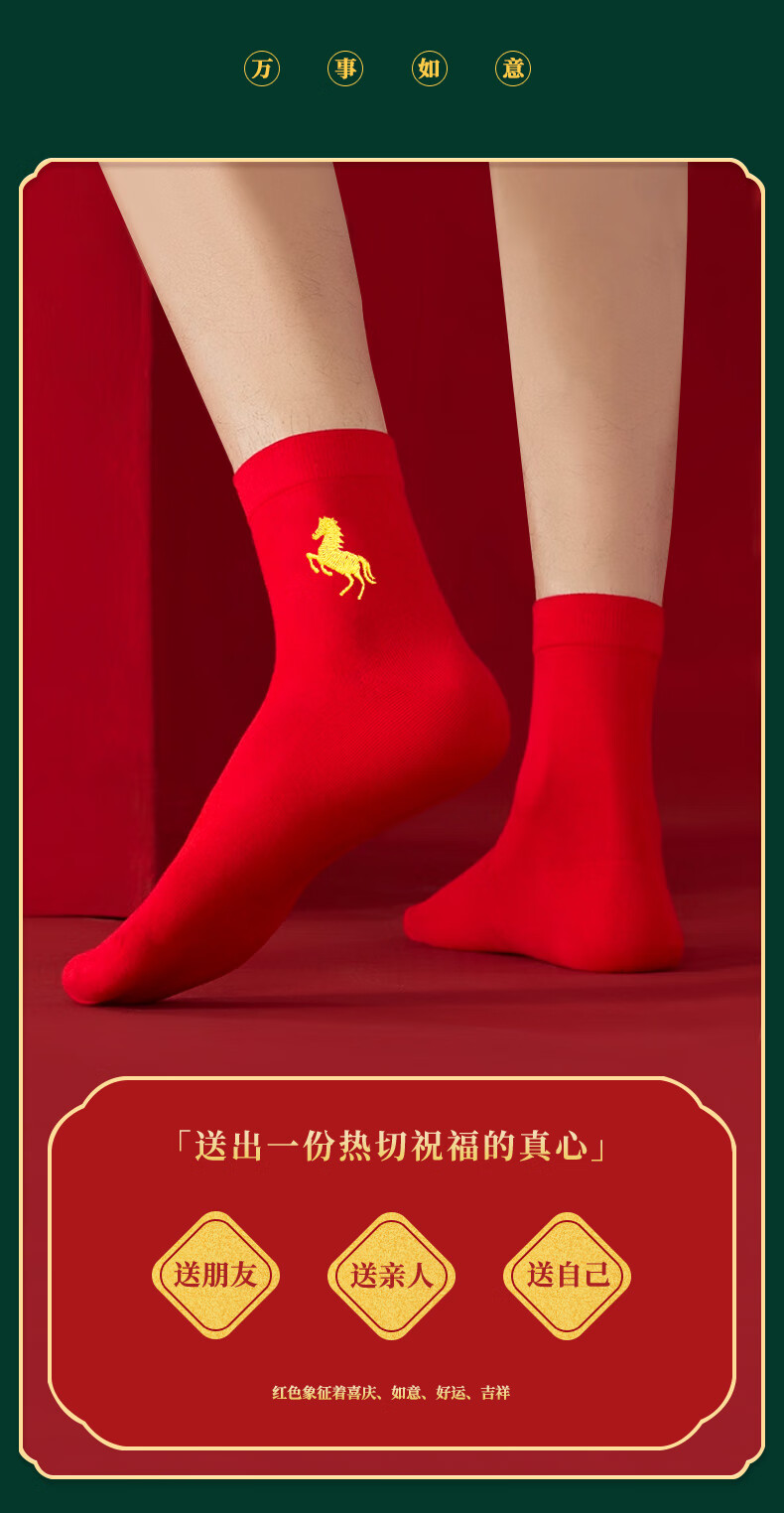 雅鹿【马年限定】男士内裤男本命年红色生肖结婚礼物喜庆短裤衩袜子 马年定制礼盒 袜子2双+内裤 2条 XL 建议120-140斤