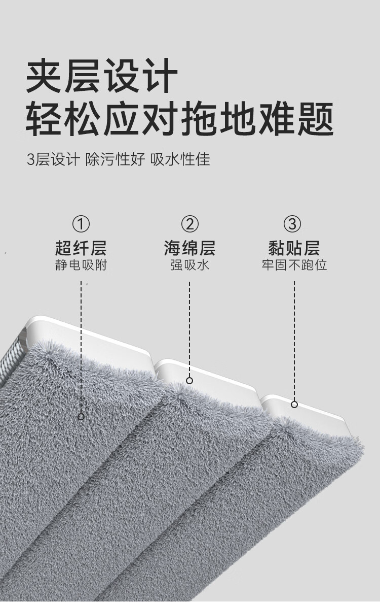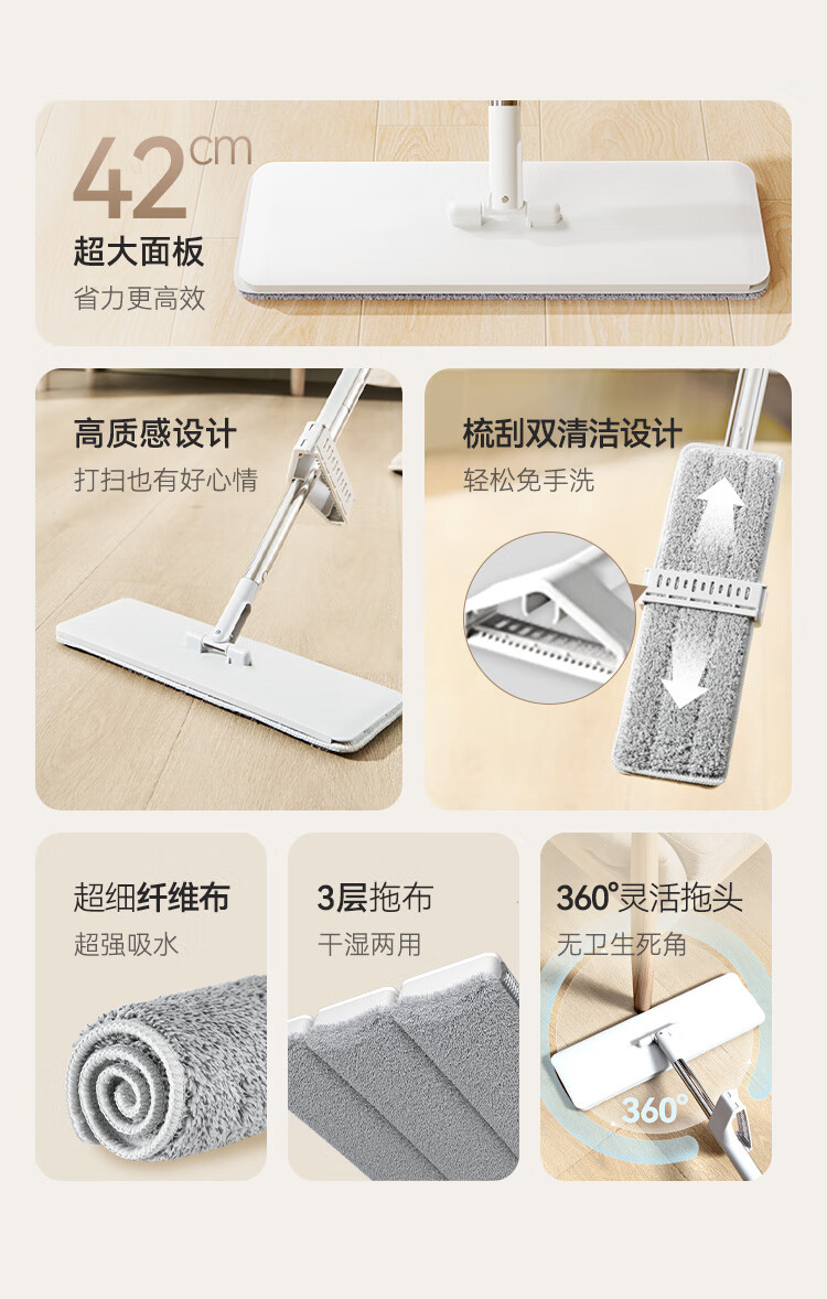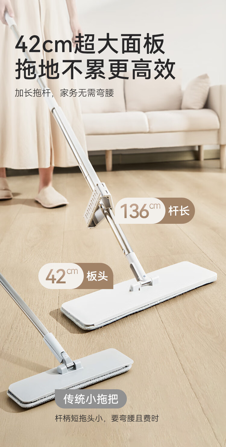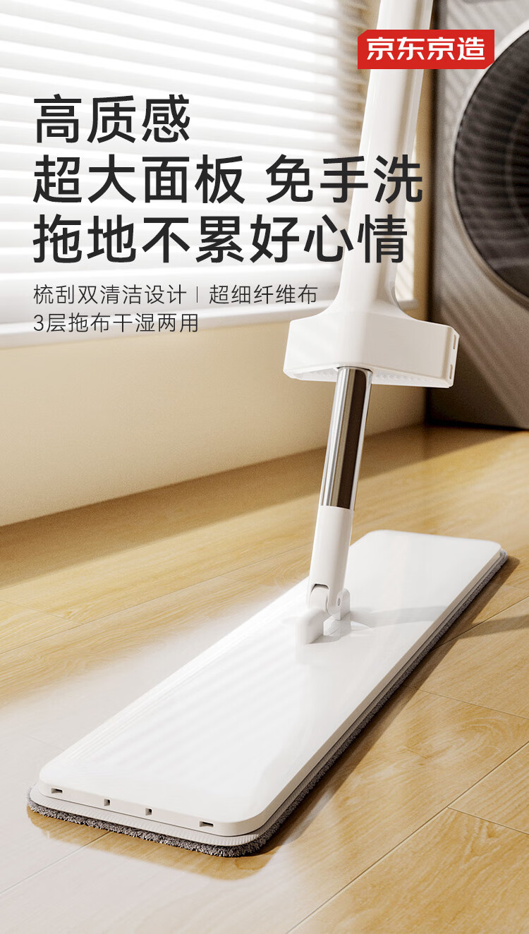 京东京造免手洗平板拖把42cm大号 家用拖地神器一拖净无水印墩布 含拖布*2