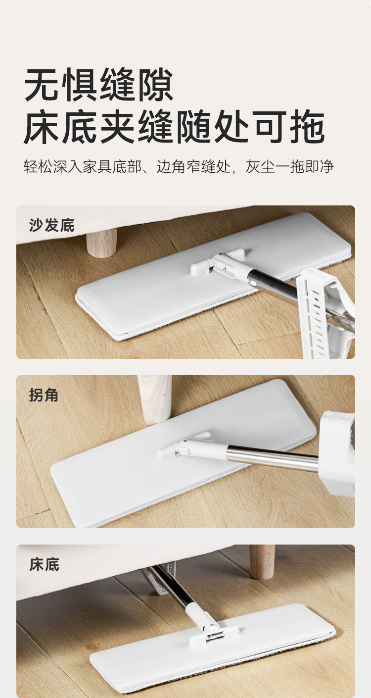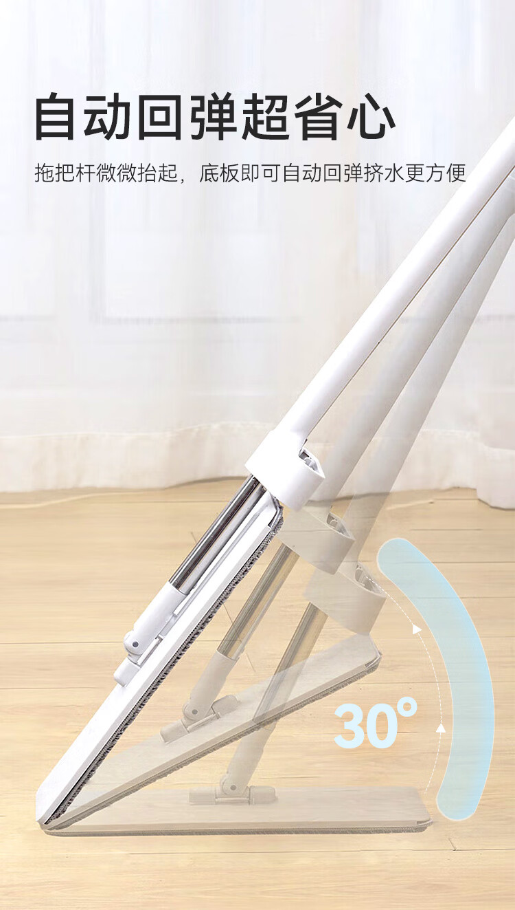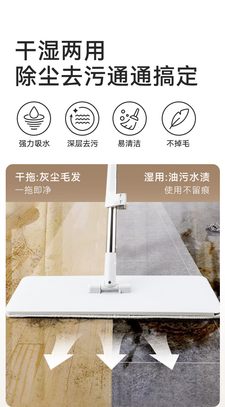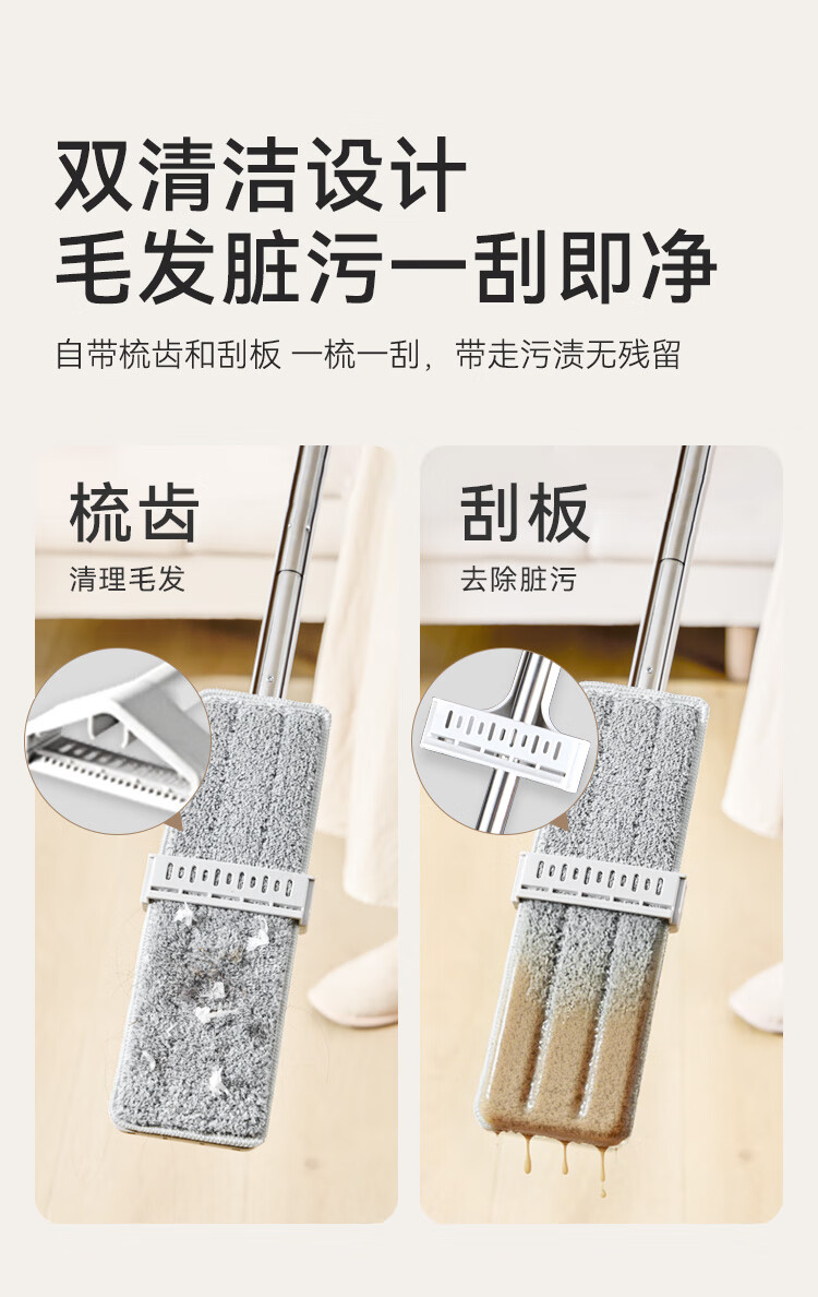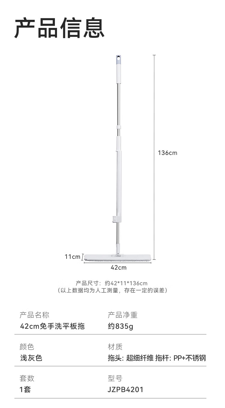 京东京造免手洗平板拖把42cm大号 家用拖地神器一拖净无水印墩布 含拖布*2