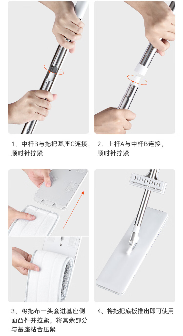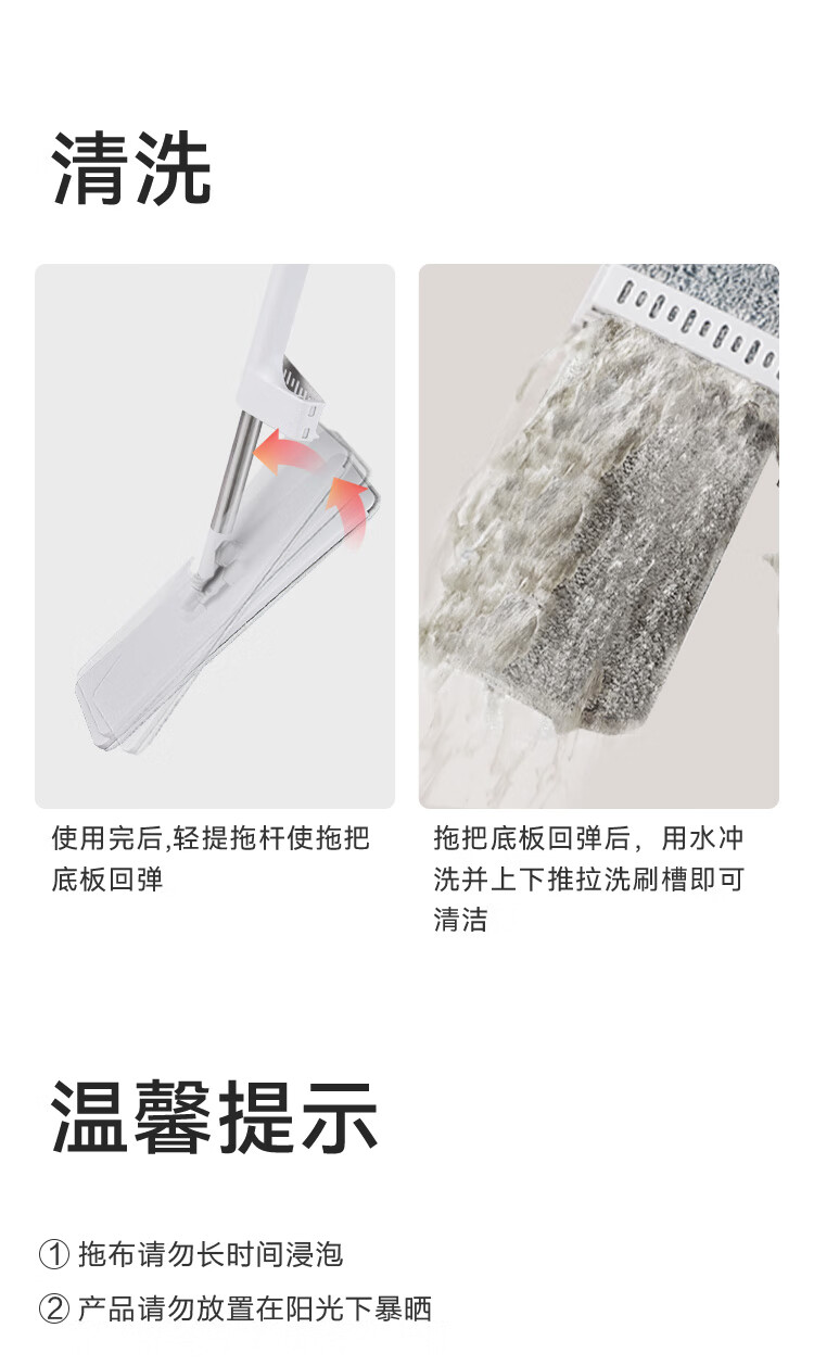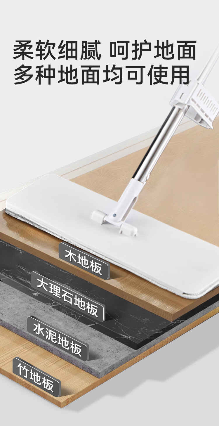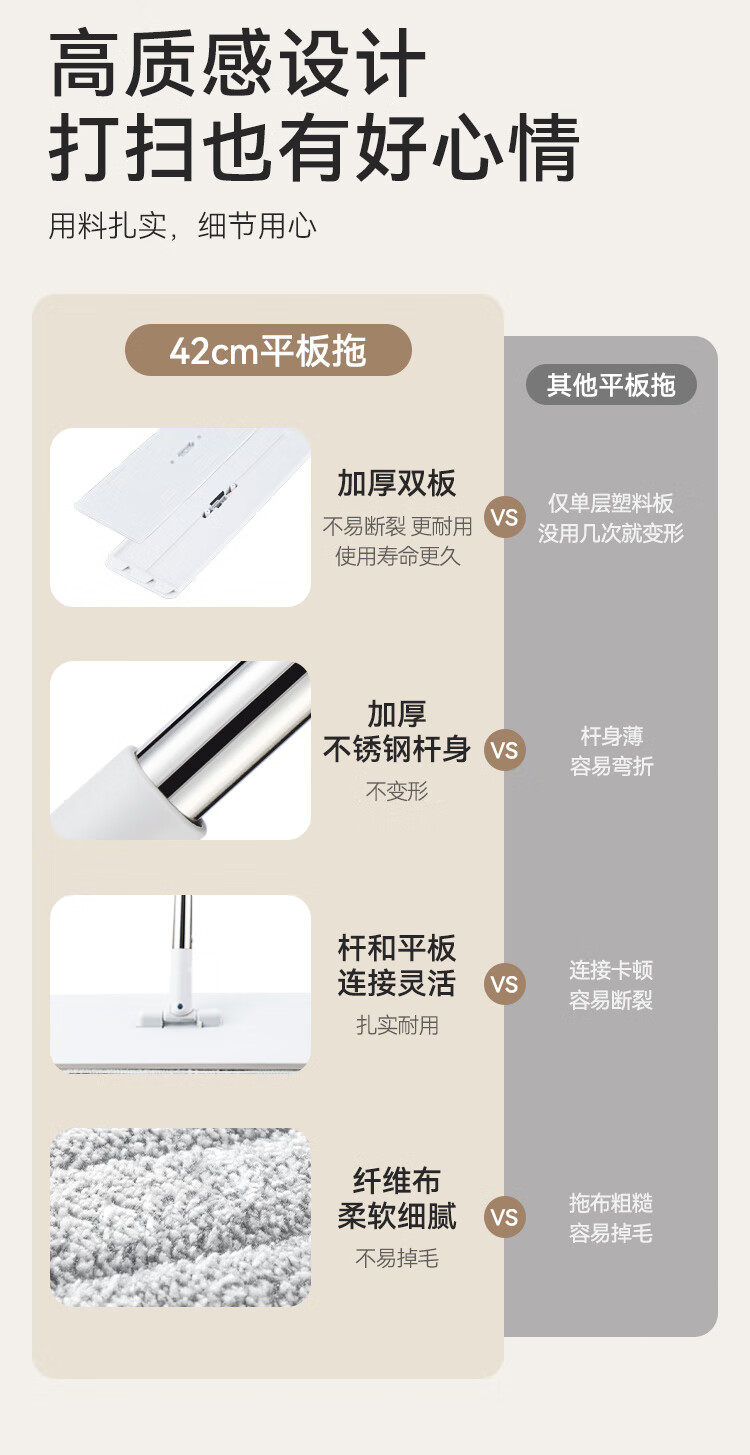 京东京造免手洗平板拖把42cm大号 家用拖地神器一拖净无水印墩布 含拖布*2