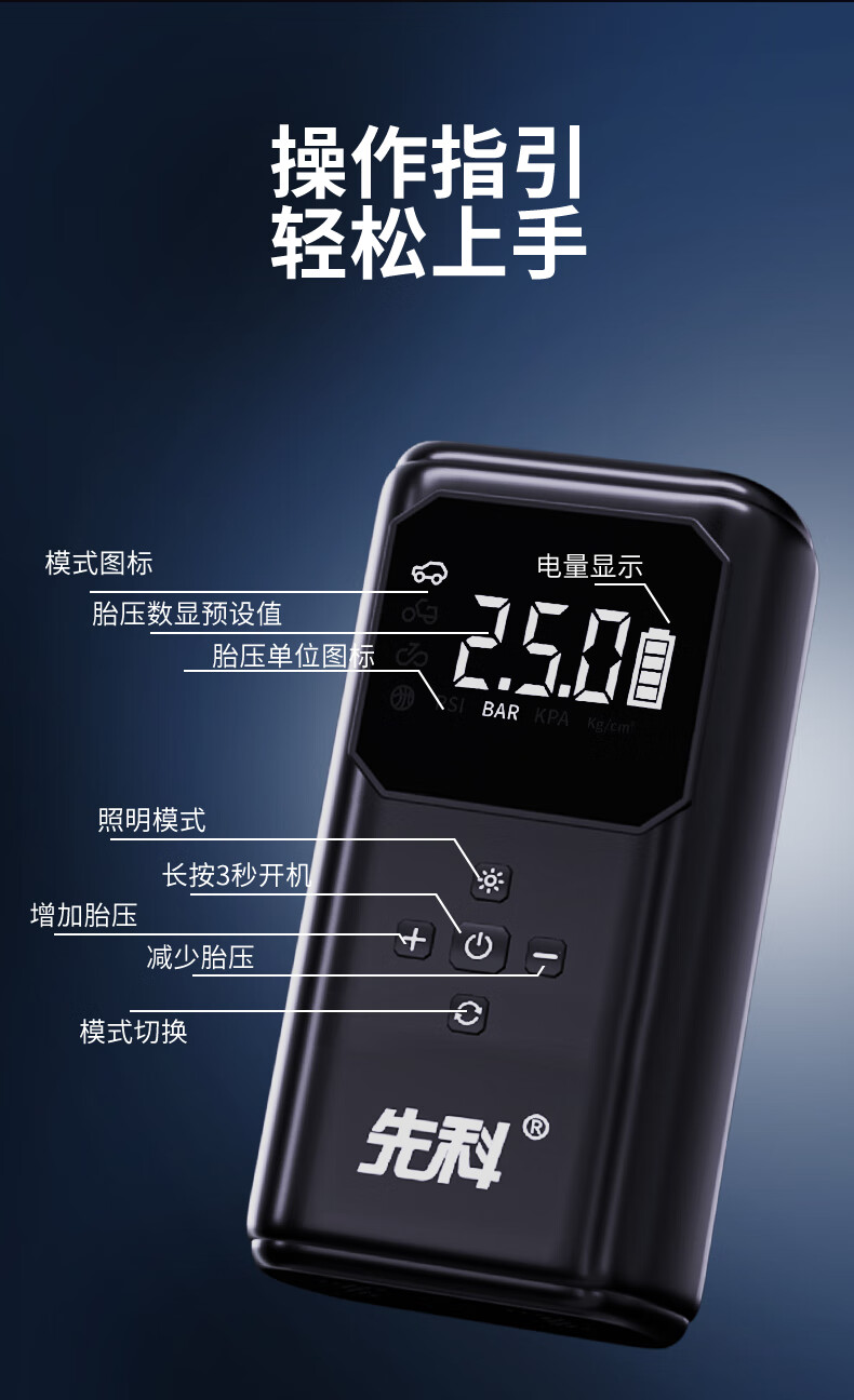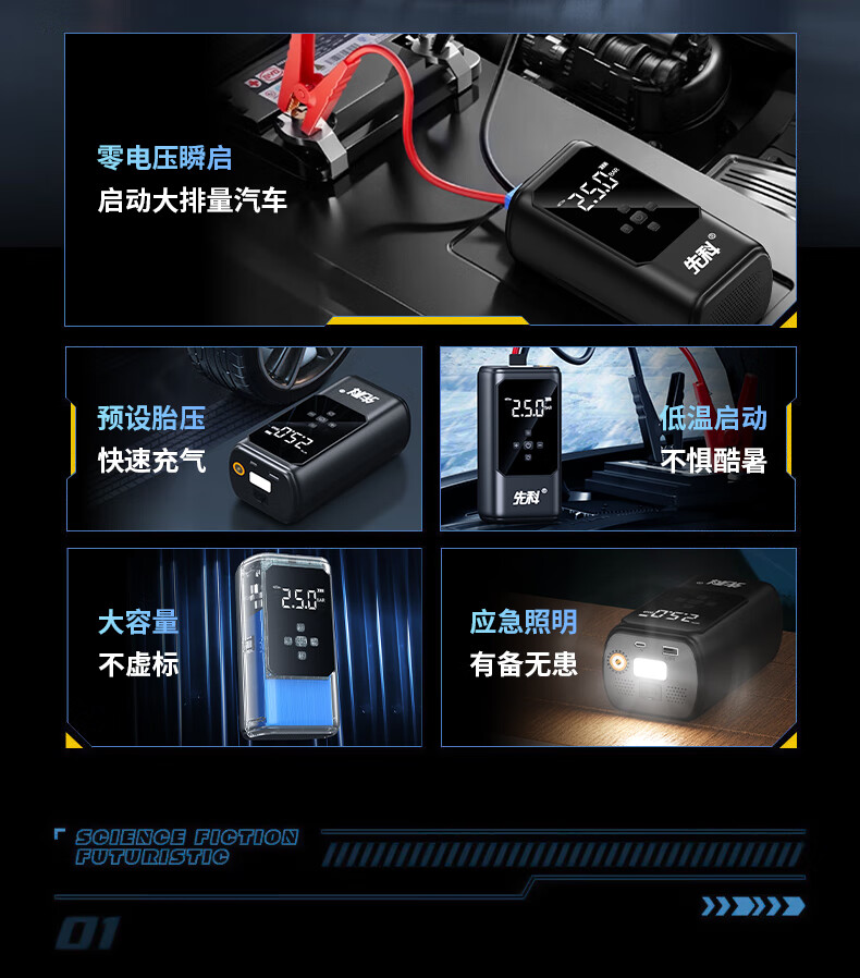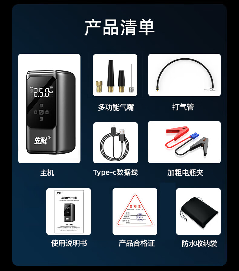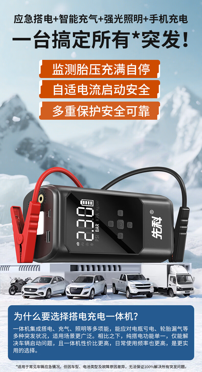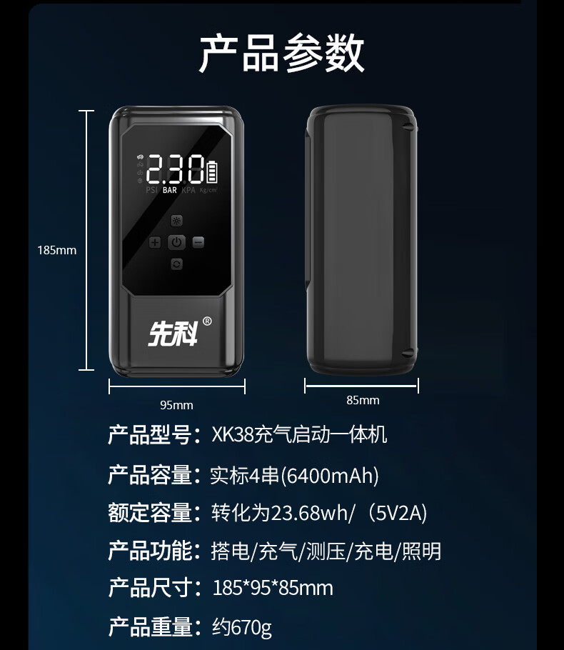 先科【3C认证】XK38汽车应急启动电源充气启动一体机户外电源便携电源搭电宝车载充气泵搭电打火神器