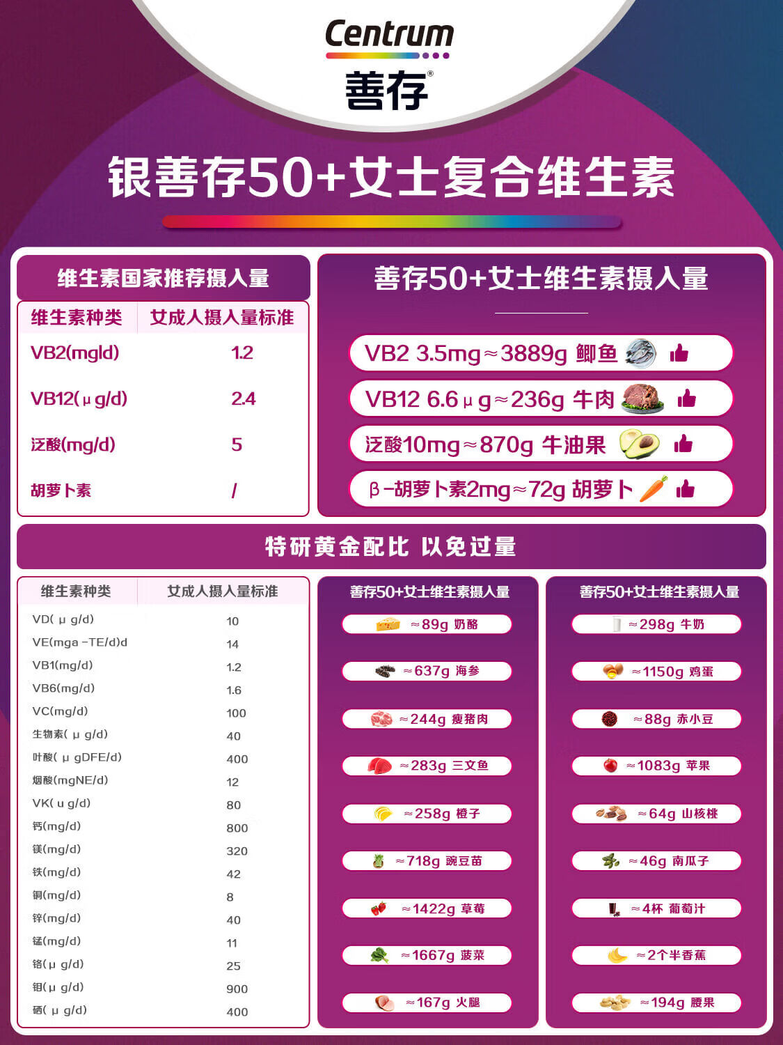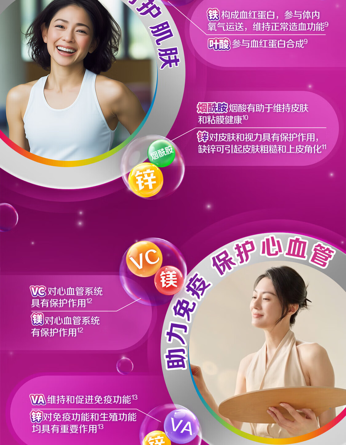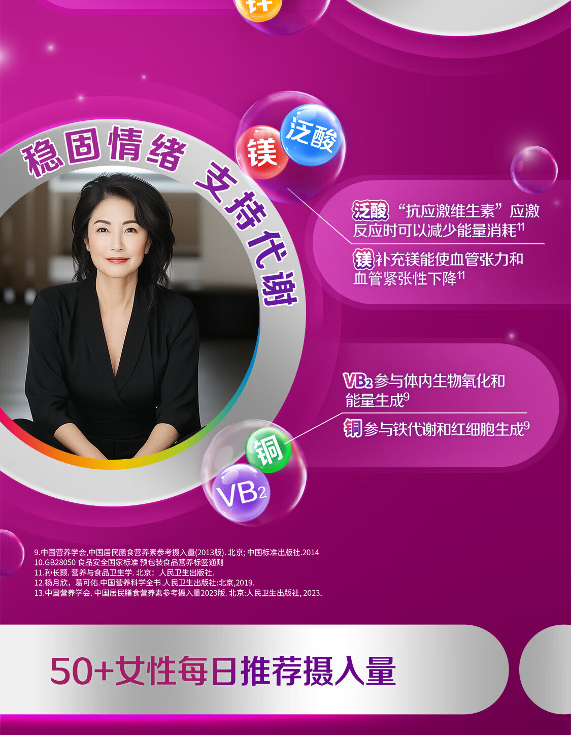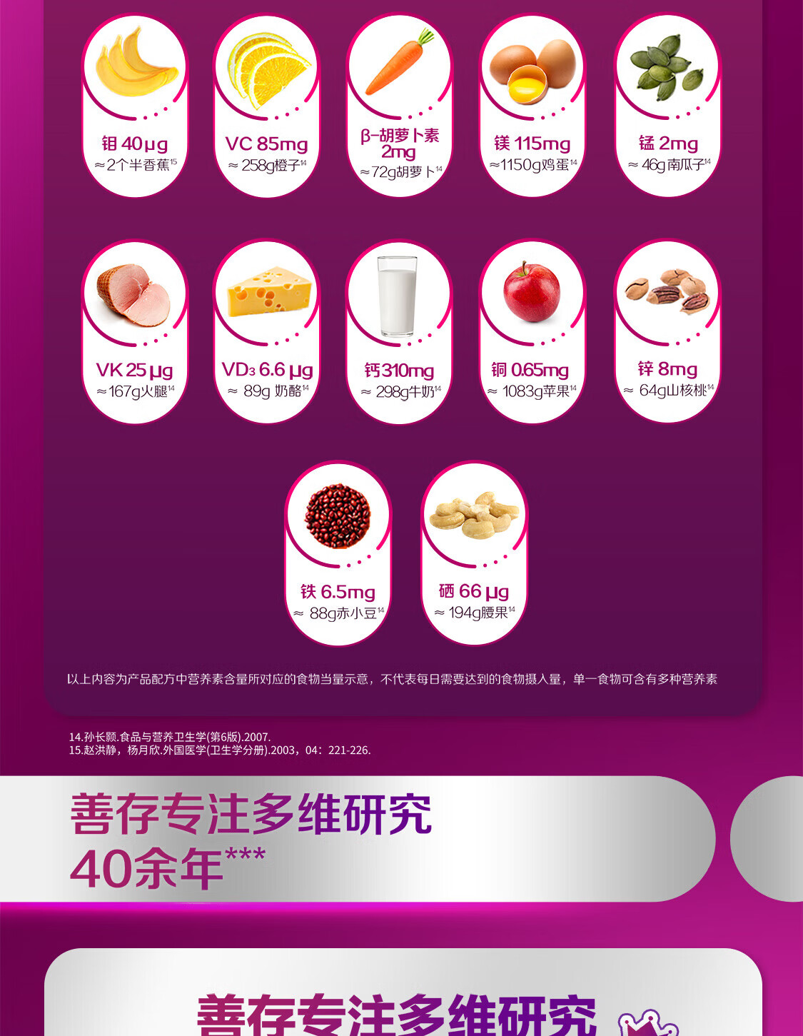 善存中老年女士复合维生素 B族VD3EC钙镁铁锌烟酰胺气血 银善存160粒