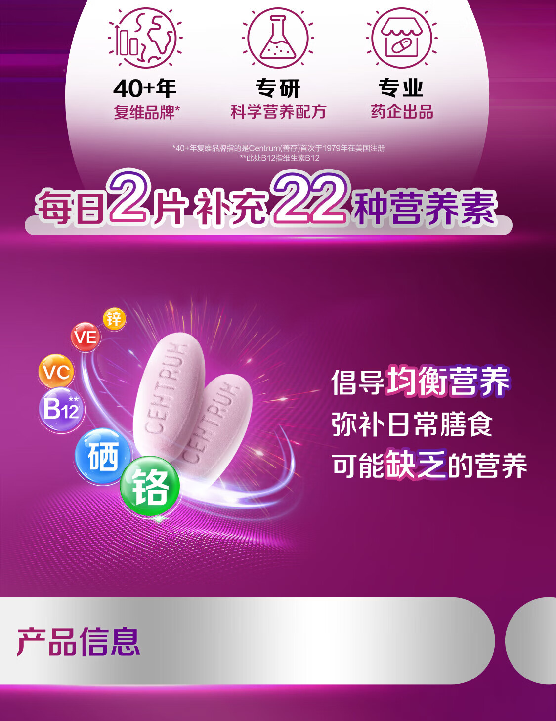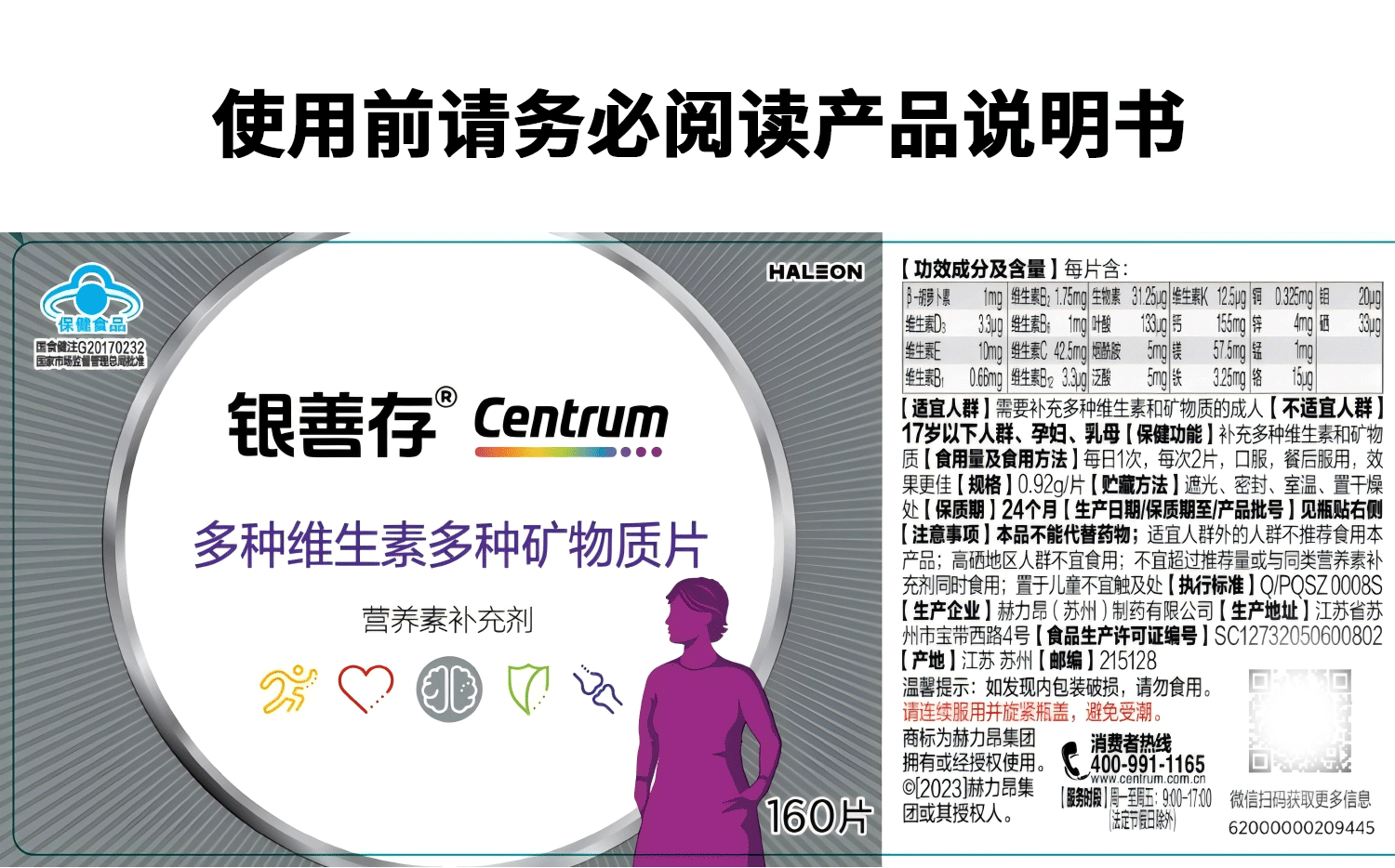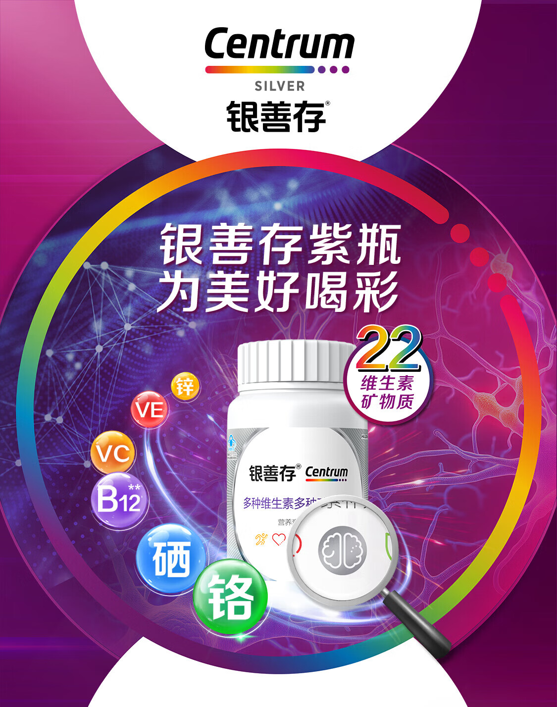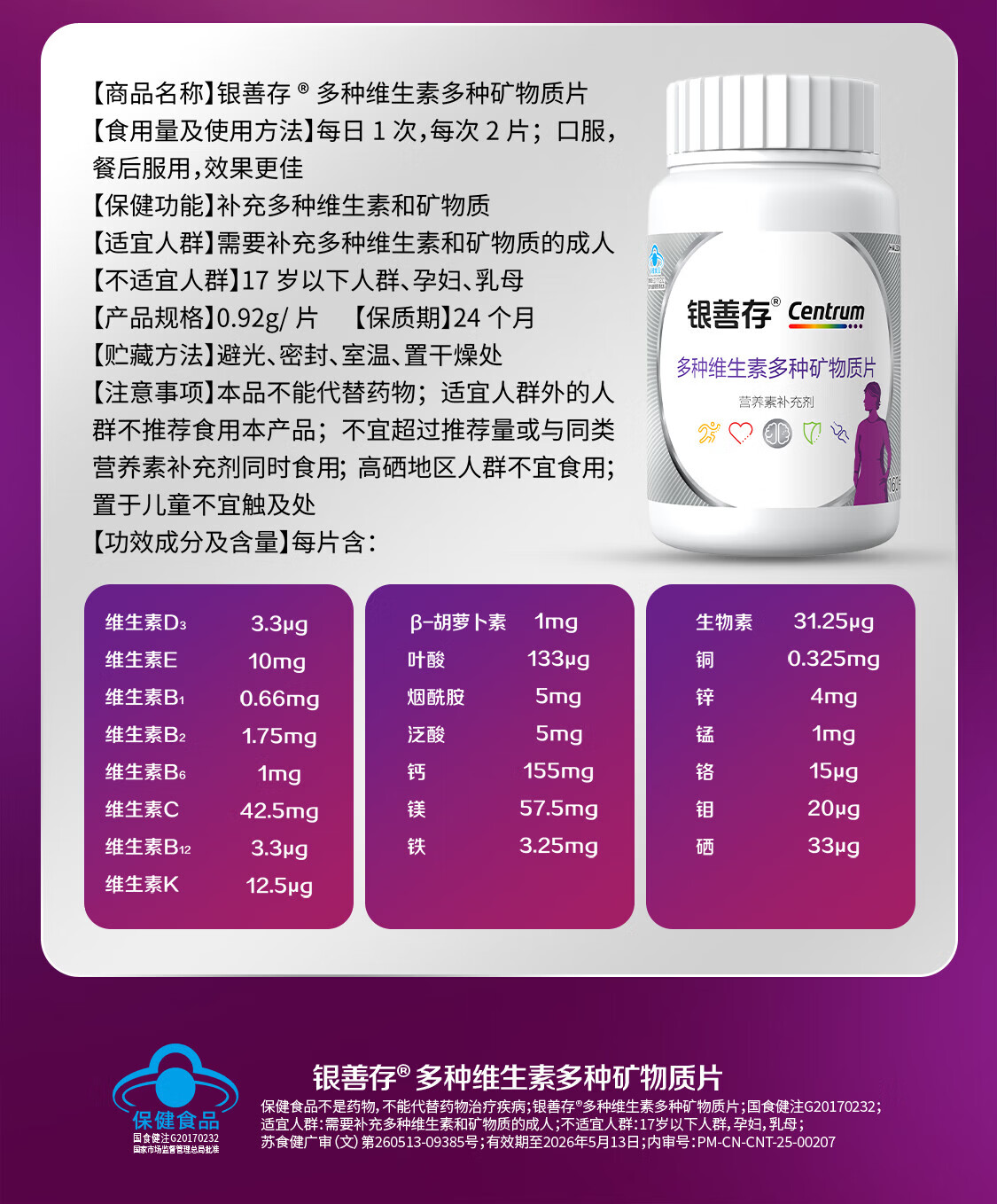 善存中老年女士复合维生素 B族VD3EC钙镁铁锌烟酰胺气血 银善存160粒