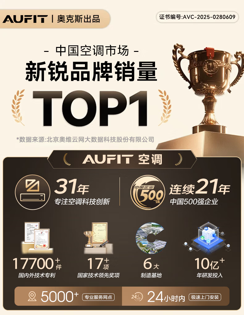 AUFIT空调奥克斯出品大2匹大3匹空调新一级能效空调变频冷暖空调节能抑菌智能清洁柜机节能省电 3匹 柜机一级能效 wifi智控