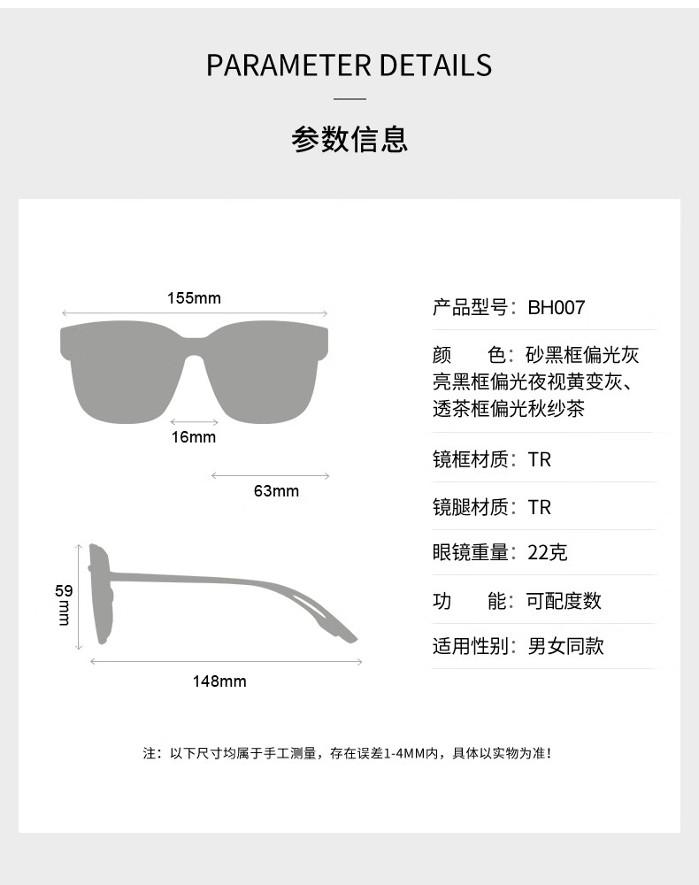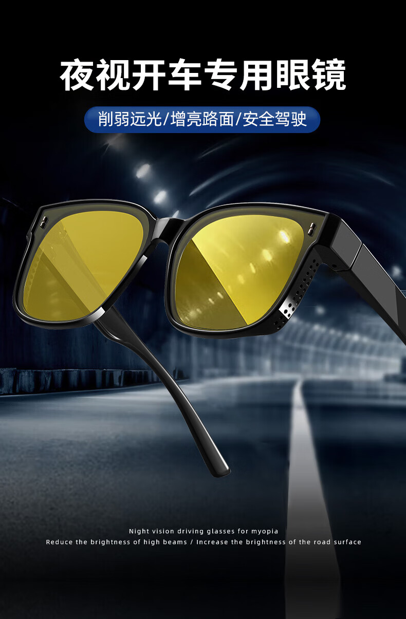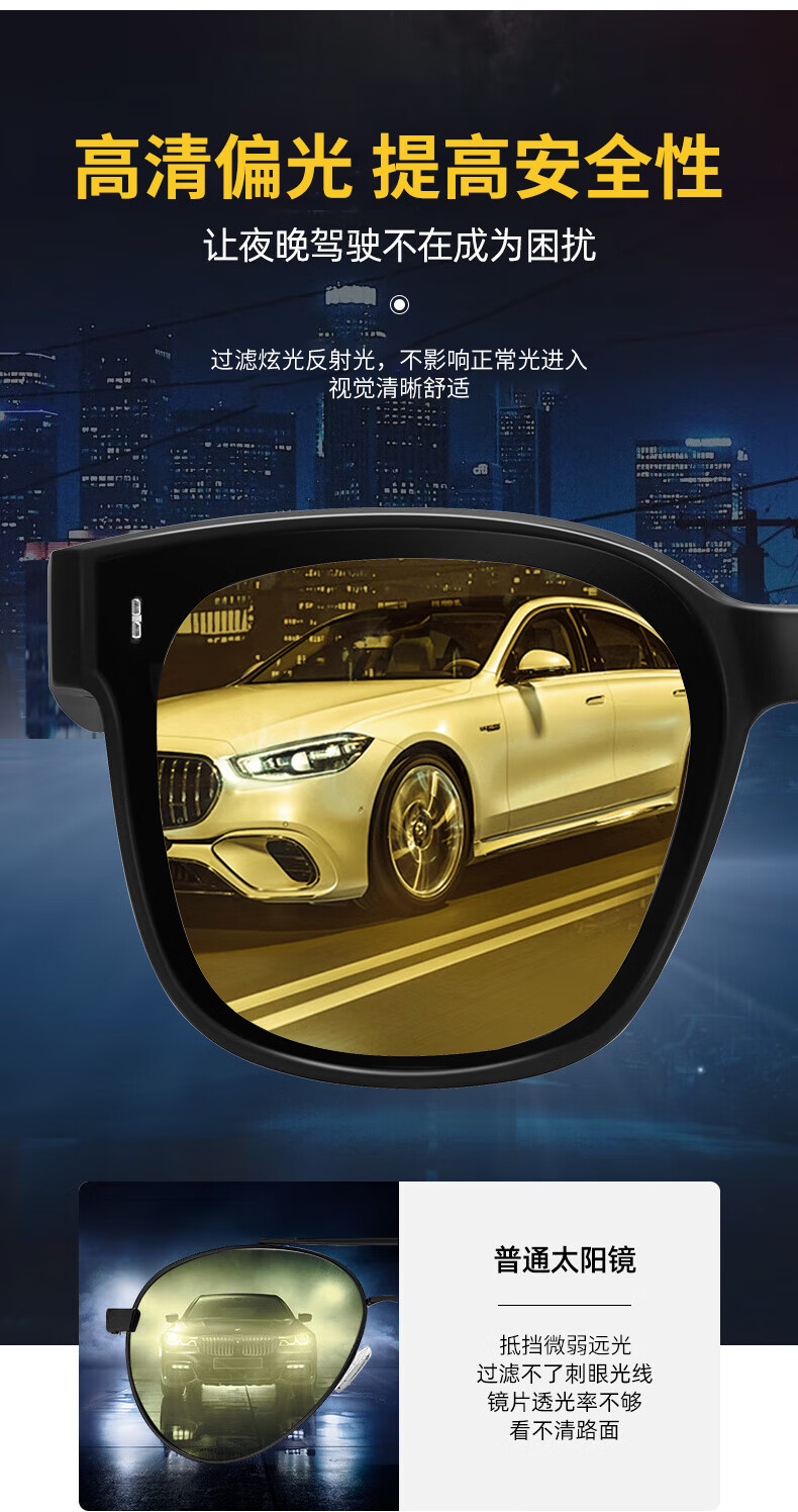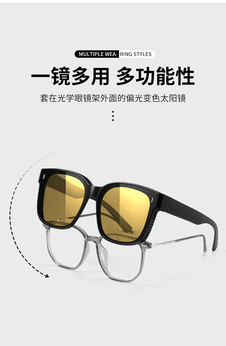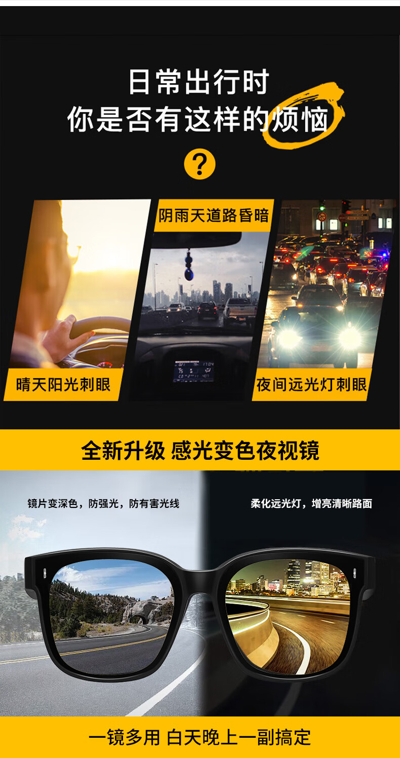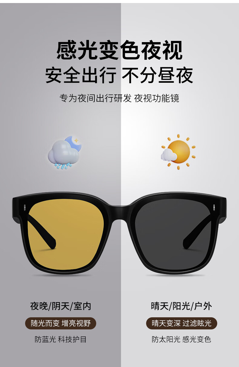 colore.in夜视眼镜开车专用男墨镜套近视眼镜日夜两用变色太阳镜驾驶防远光 黑框偏光灰