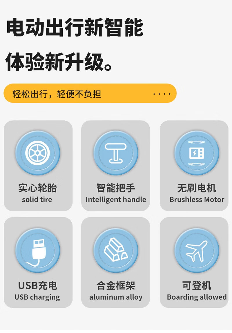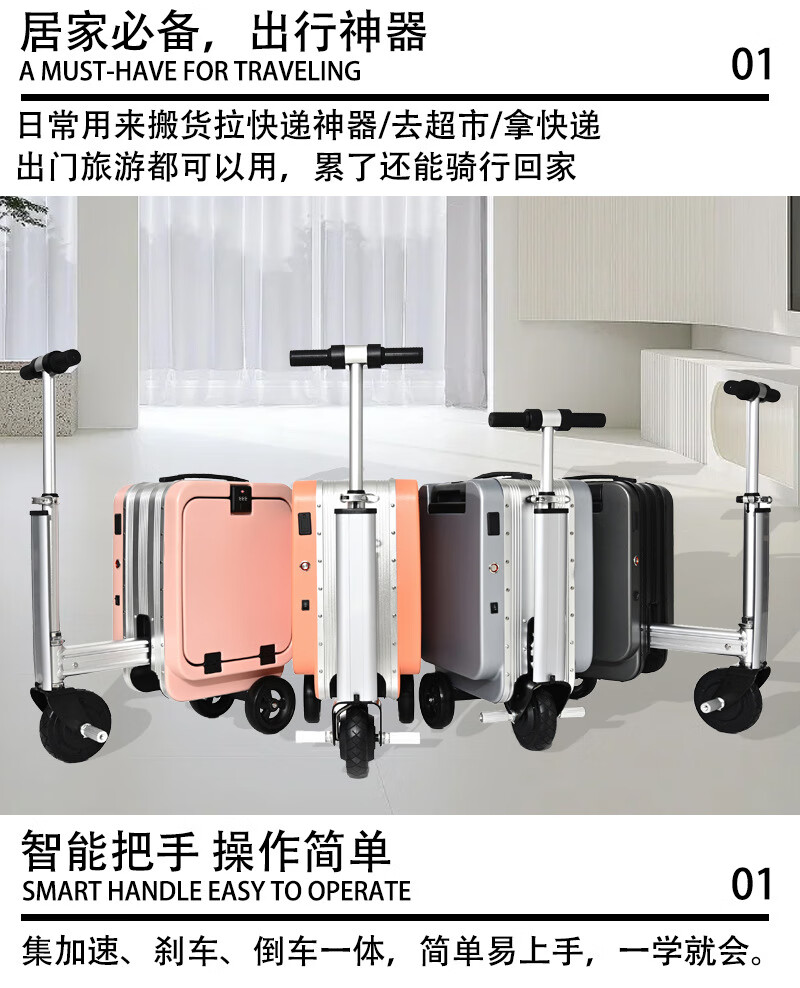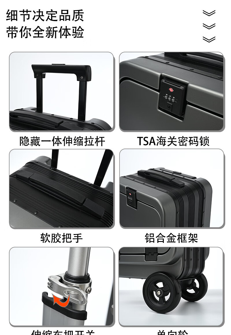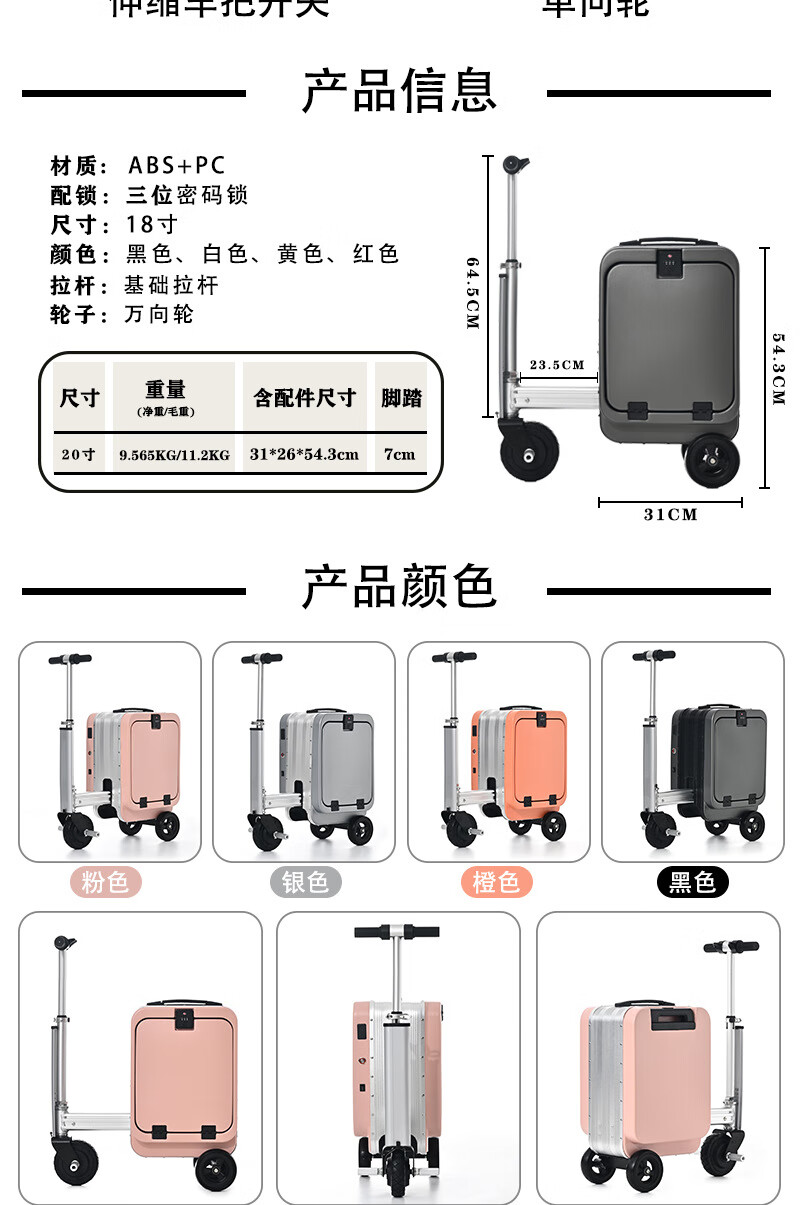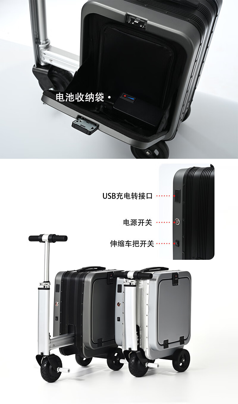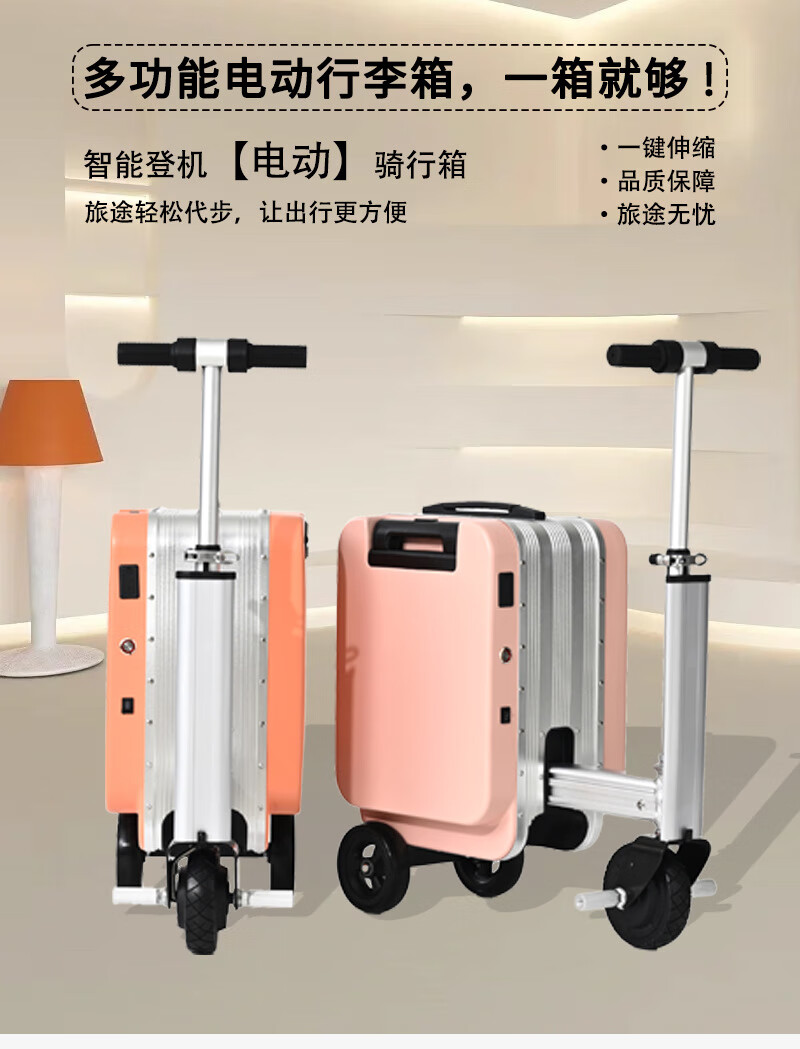 旅大侠电动骑行行李箱旅行箱骑行代步20寸登机拉杆箱前开盖海关锁密码箱 沐汐橙【智能伸缩*电动倒车】 20英寸 【带1个电池】续航15公里