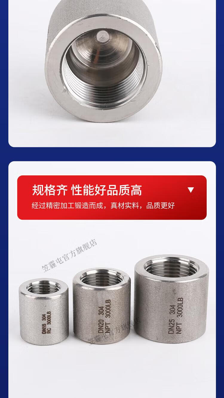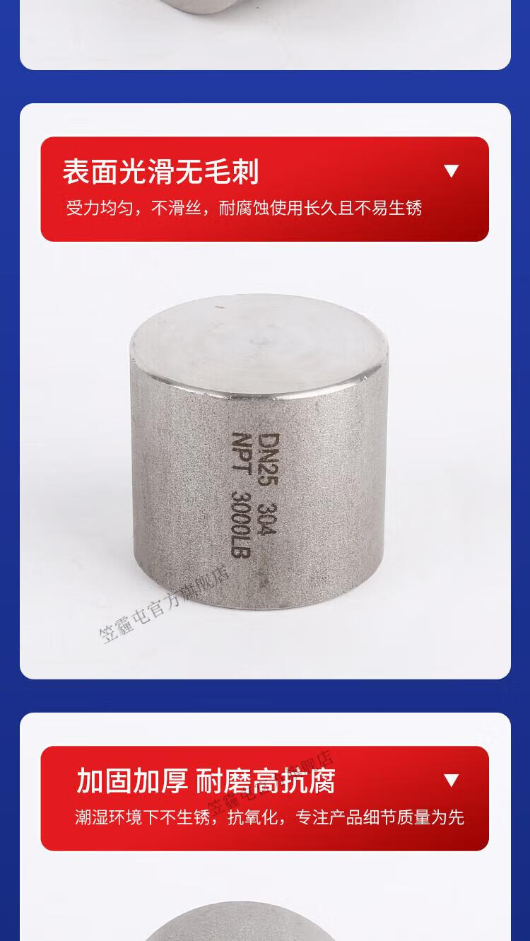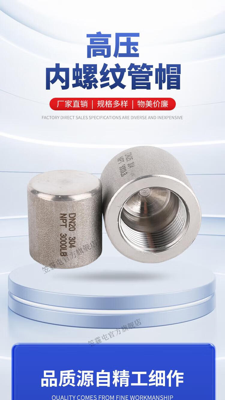 笠霾屯304/316L不锈钢高压内丝管帽NPT/RC 3000LB加厚堵头2/3/6分1/2寸 4寸 DN100 316L(NPT螺纹)