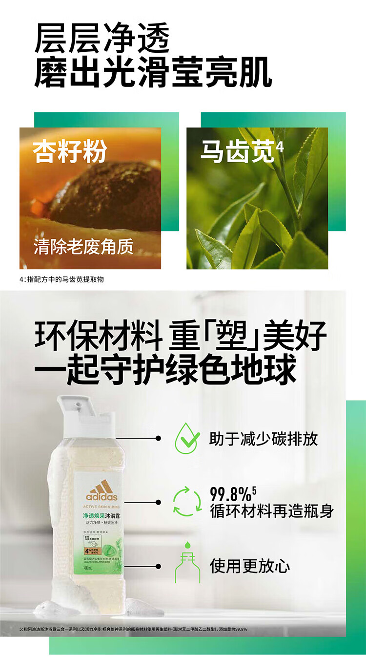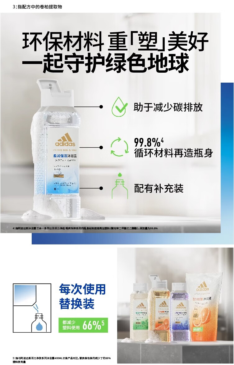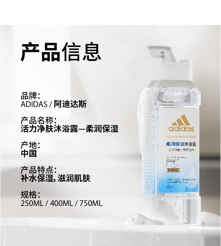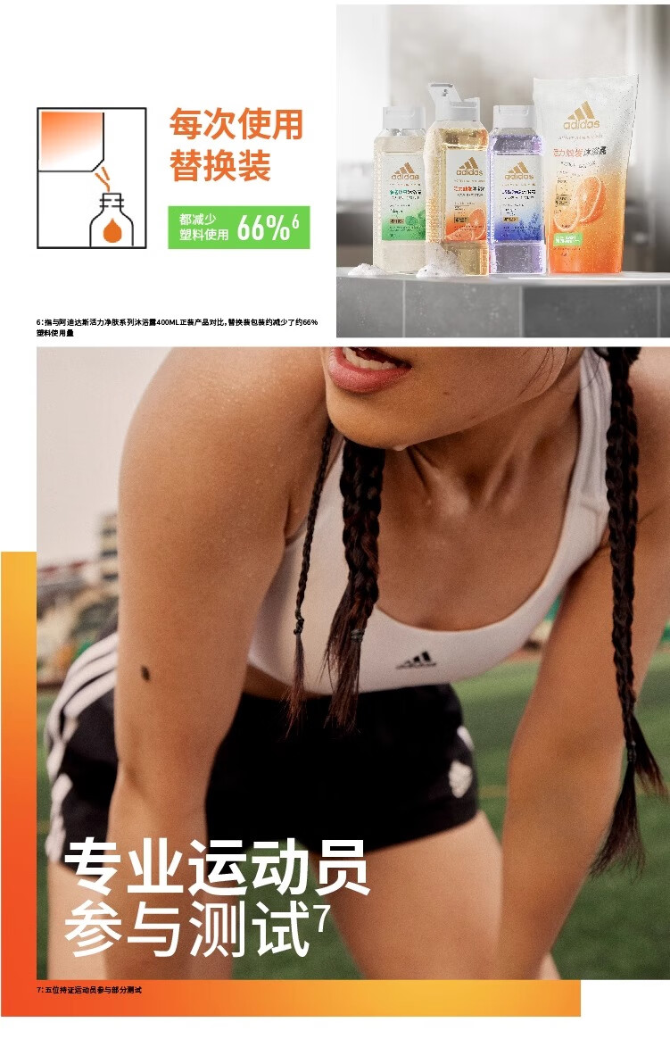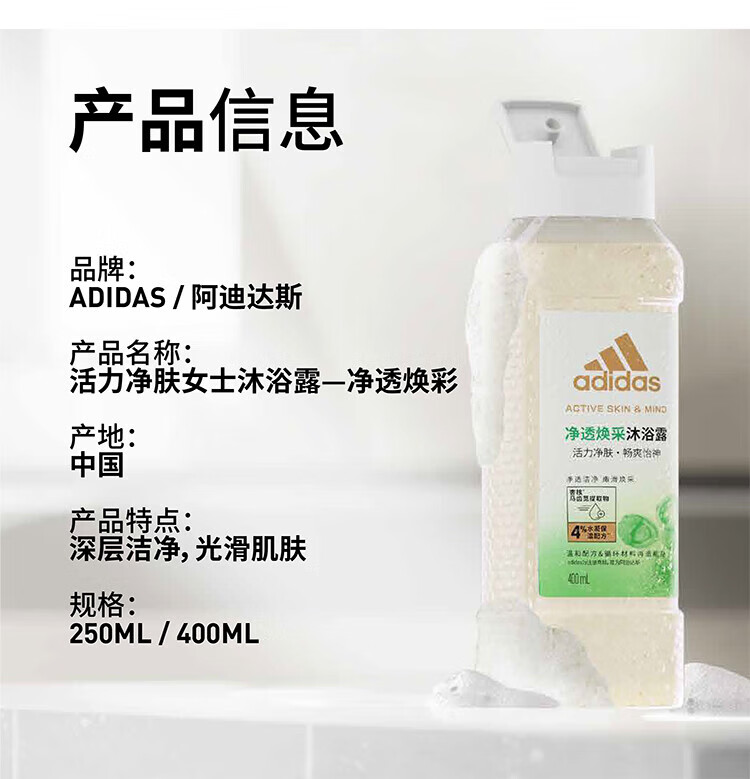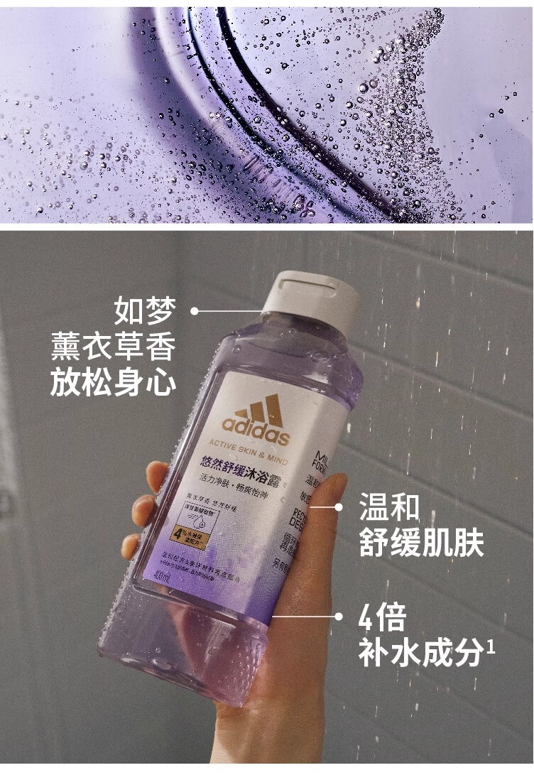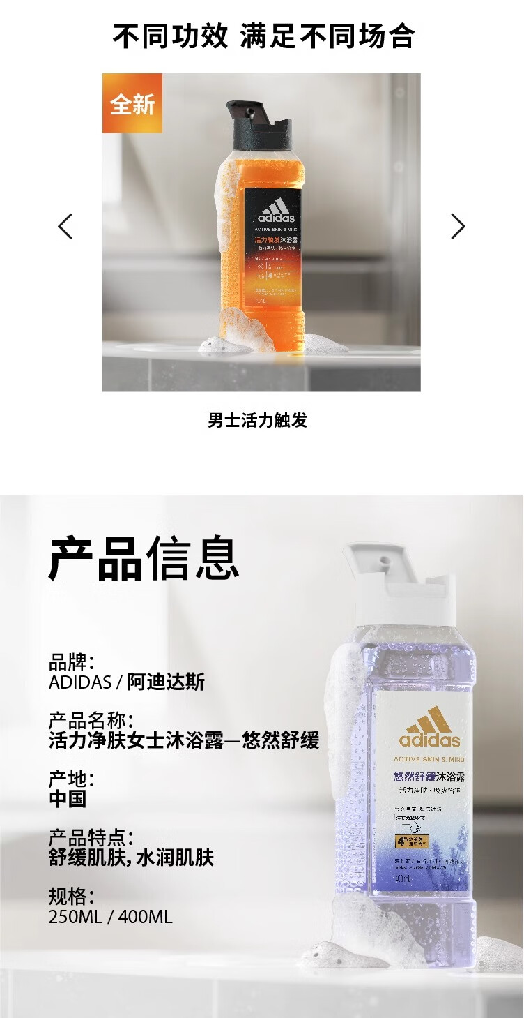 阿迪达斯女士香氛沐浴露温和清洁敏感肌适用植萃配方持久留香 活力触发250ml+悠然舒缓250ml