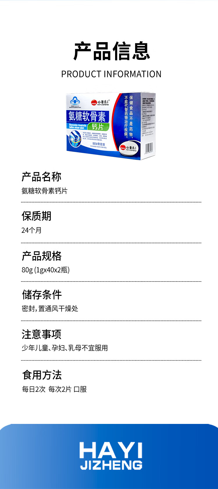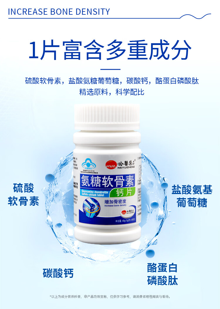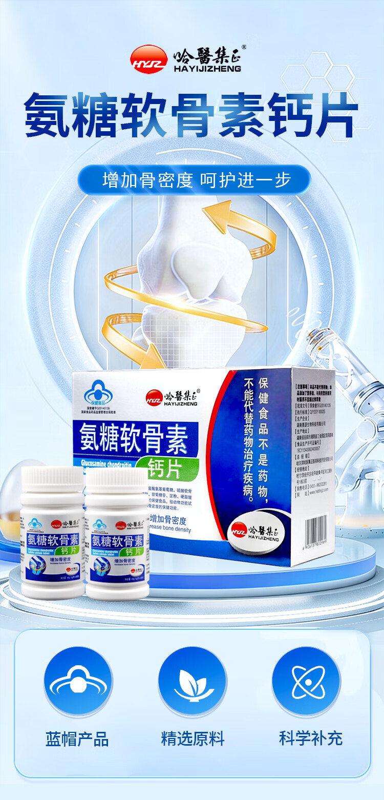 哈醫集正【到手2瓶】氨糖软骨素钙片 盐酸氨基葡萄糖 中老年增加骨密度 【周期养护 增加骨密度】 1g*80盒