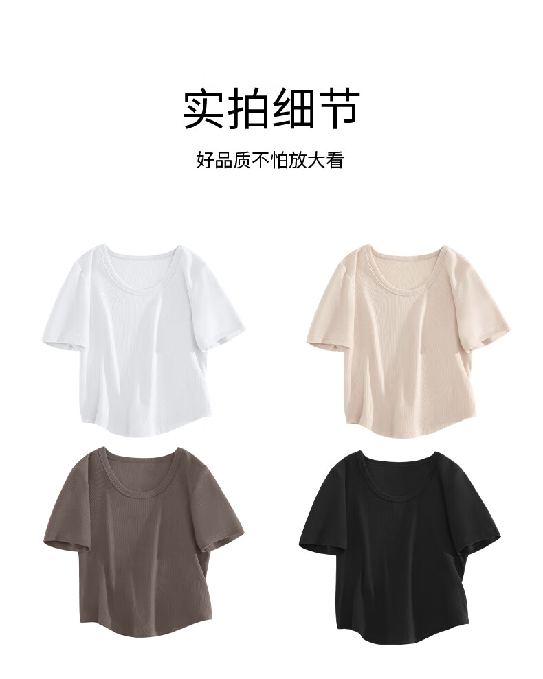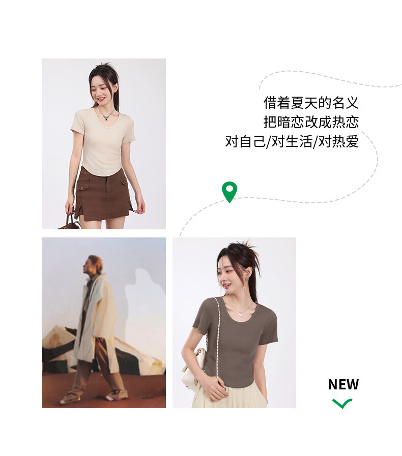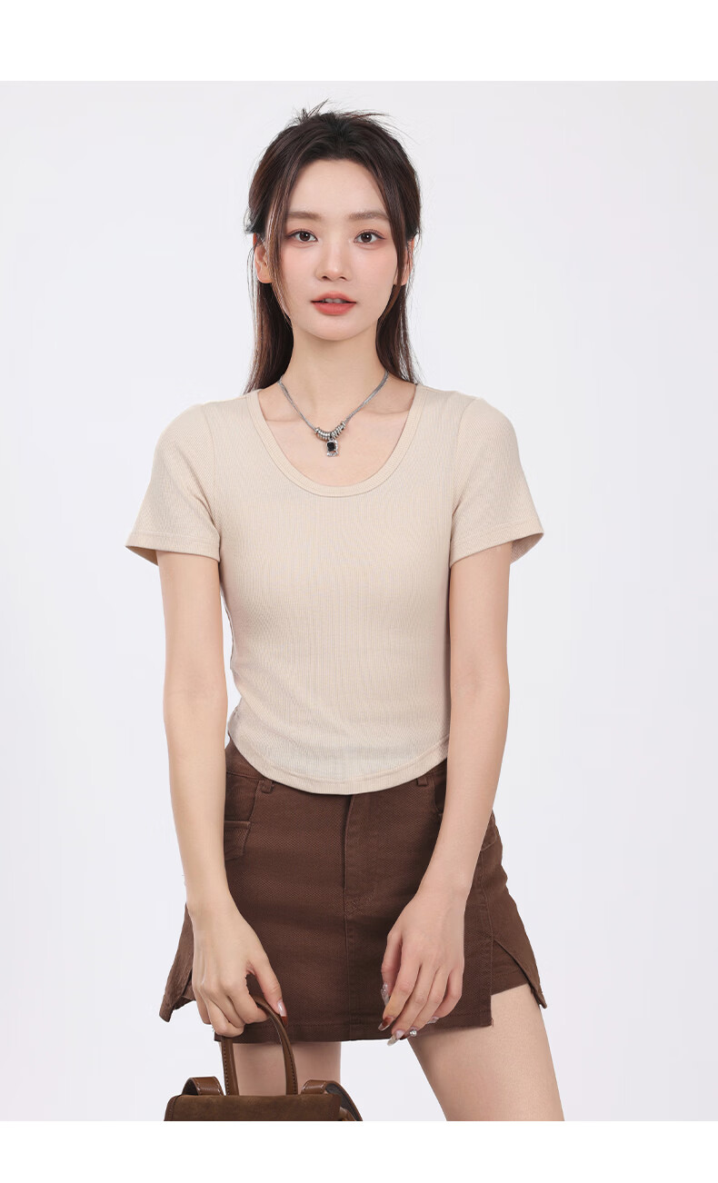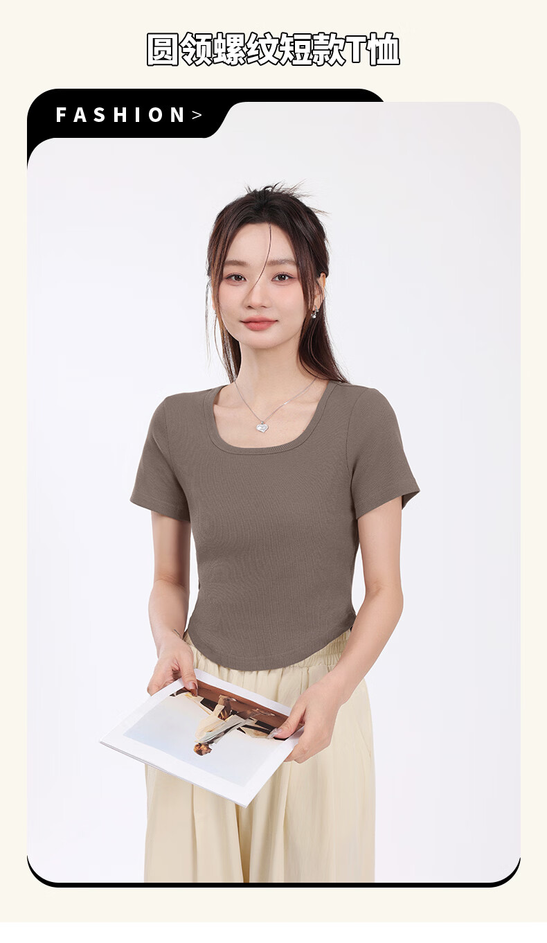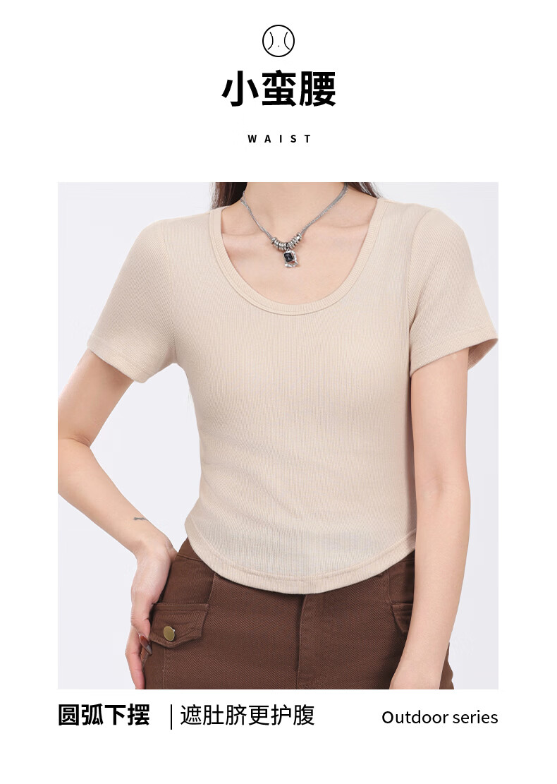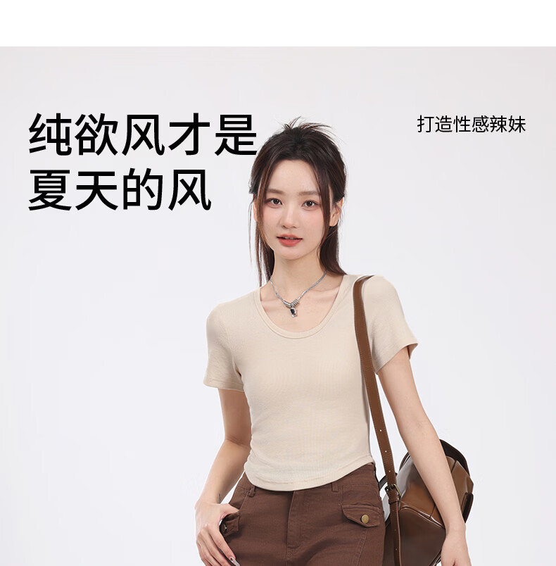 班尼路(Baleno)S&K圆领罗纹短款短袖T恤女2026年夏季女装新款紧密细致纯欲风上衣 浅卡其#纯色 S