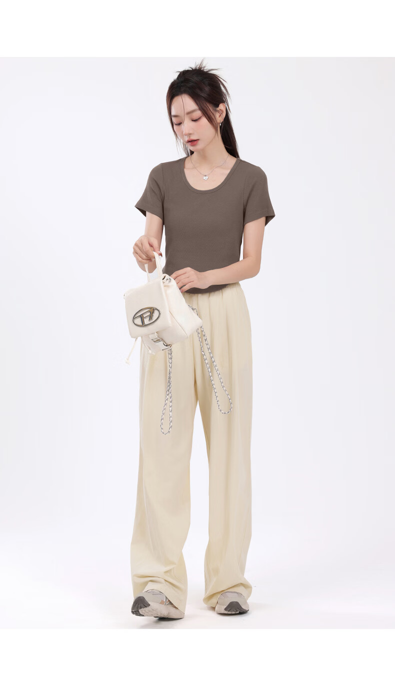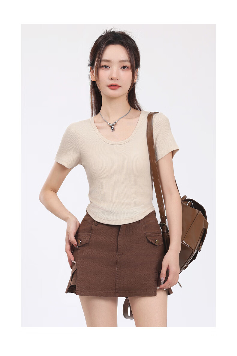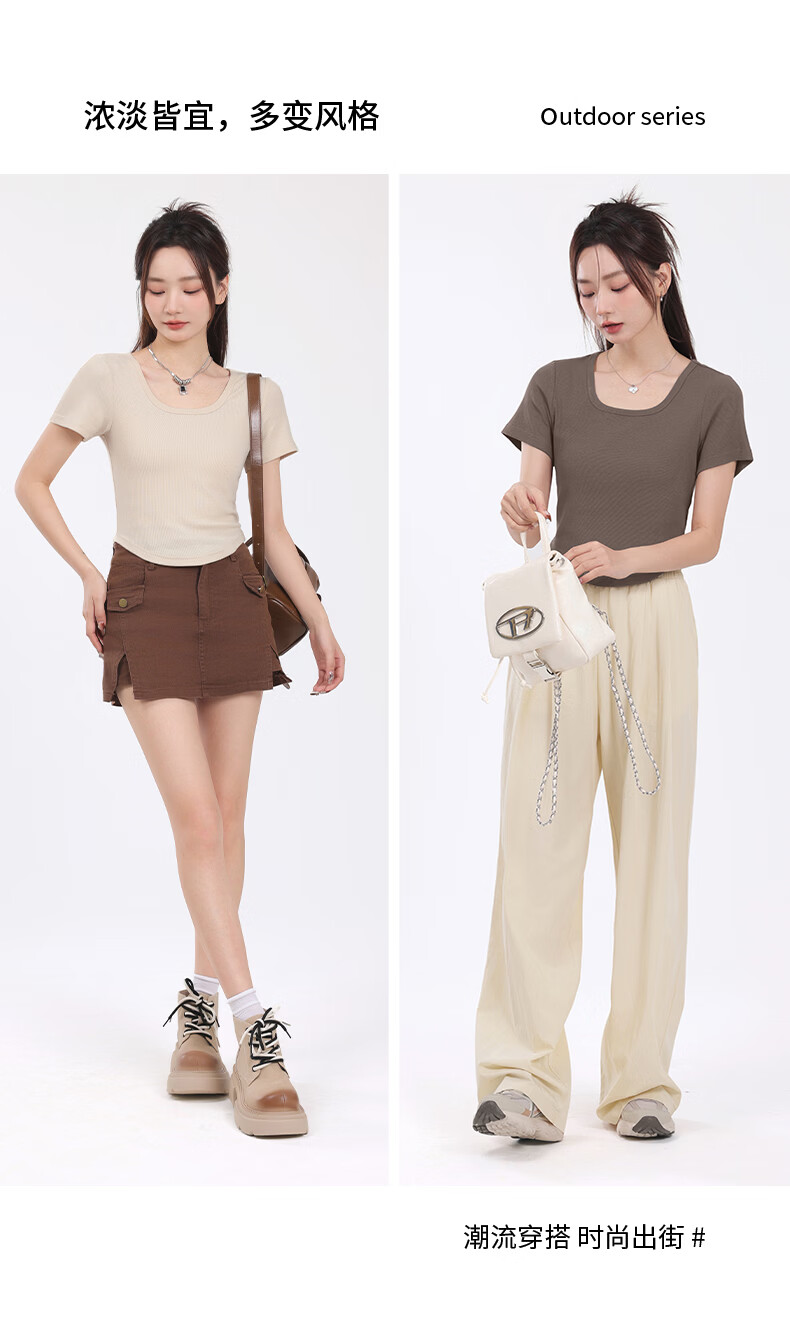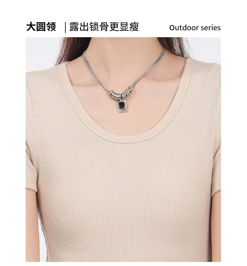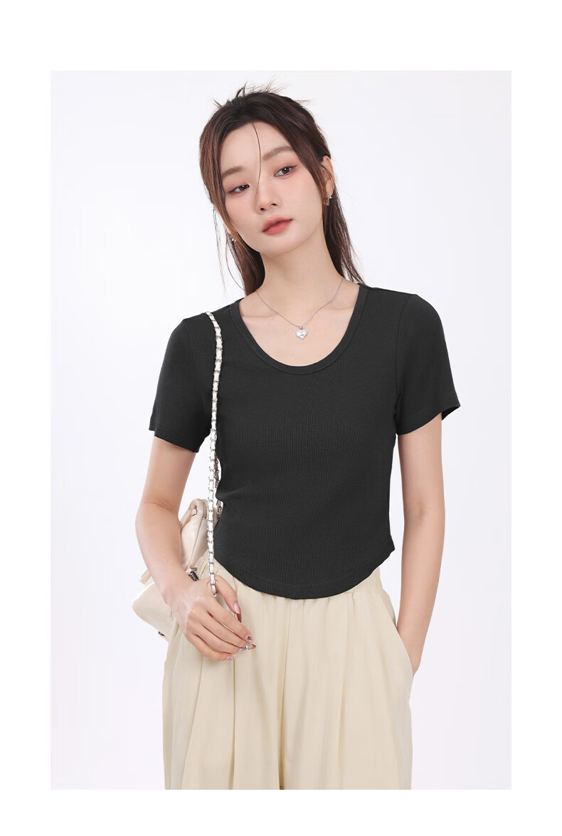 班尼路(Baleno)S&K圆领罗纹短款短袖T恤女2026年夏季女装新款紧密细致纯欲风上衣 浅卡其#纯色 S