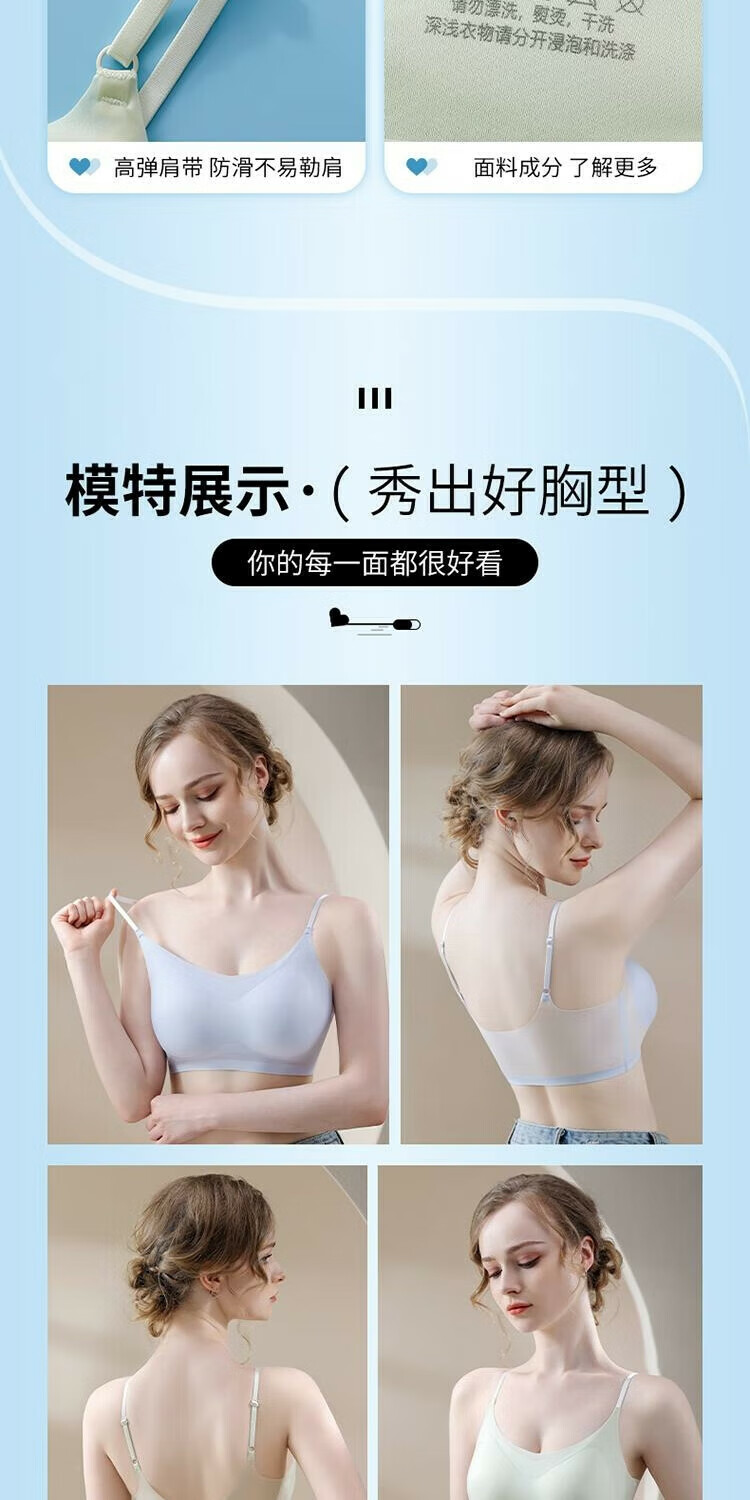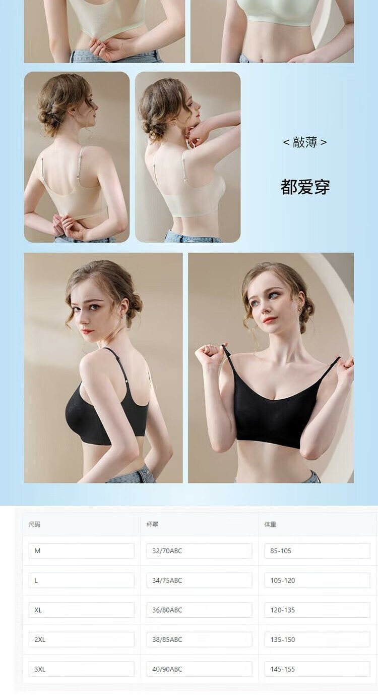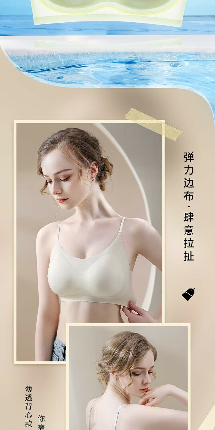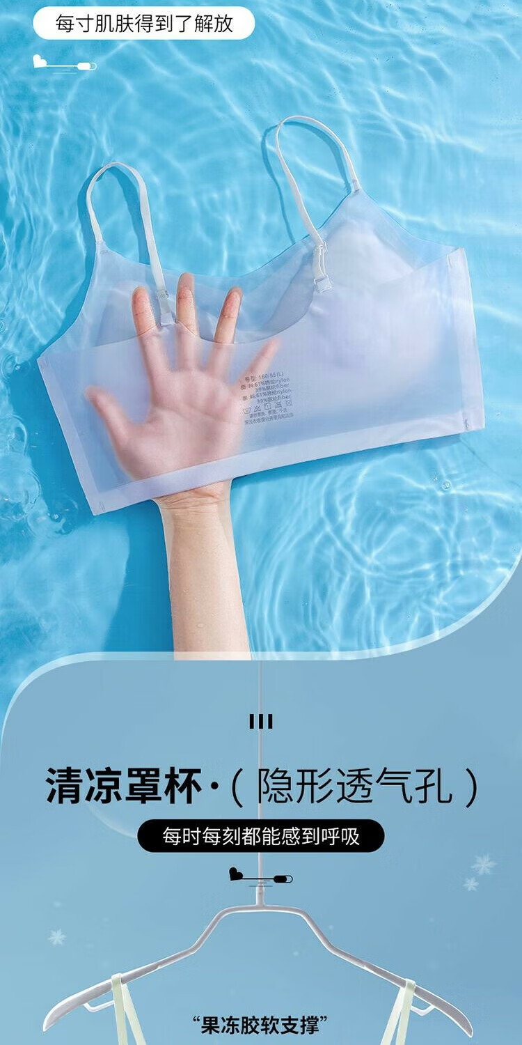 宜而爽聚拢美背夏季运动风抹胸透气女士及胸无钢圈冰丝舒适内衣文胸 黑色 L 34/75ABC