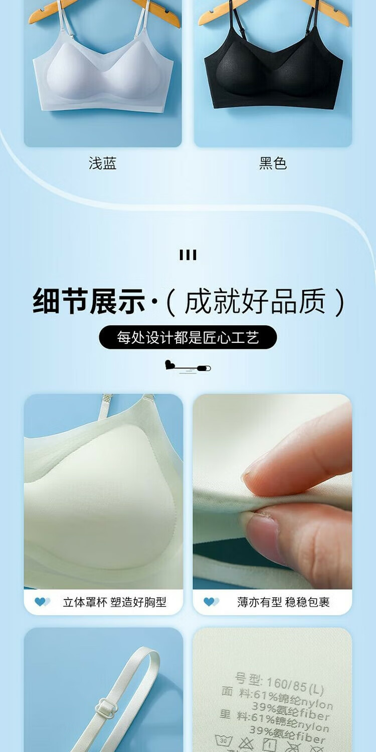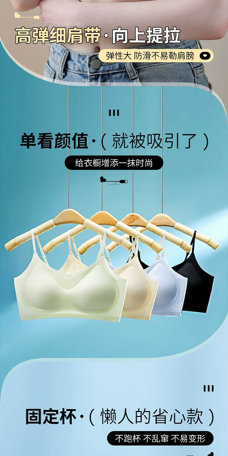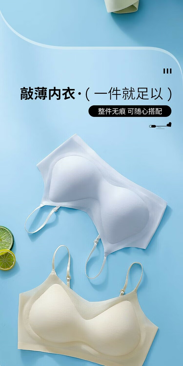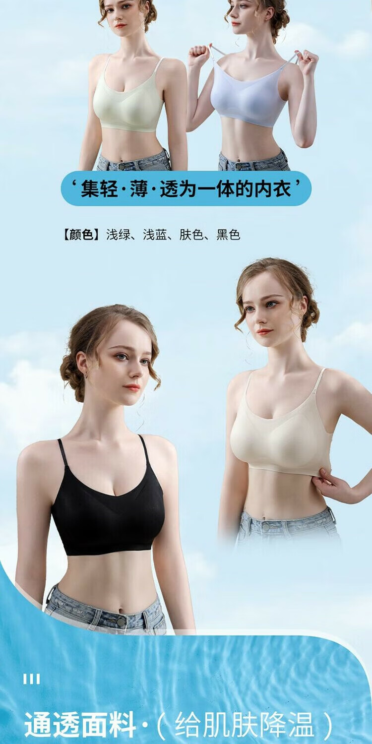 宜而爽聚拢美背夏季运动风抹胸透气女士及胸无钢圈冰丝舒适内衣文胸 黑色 L 34/75ABC