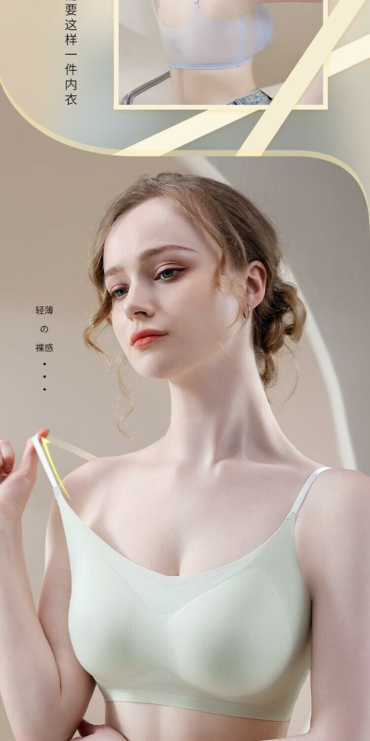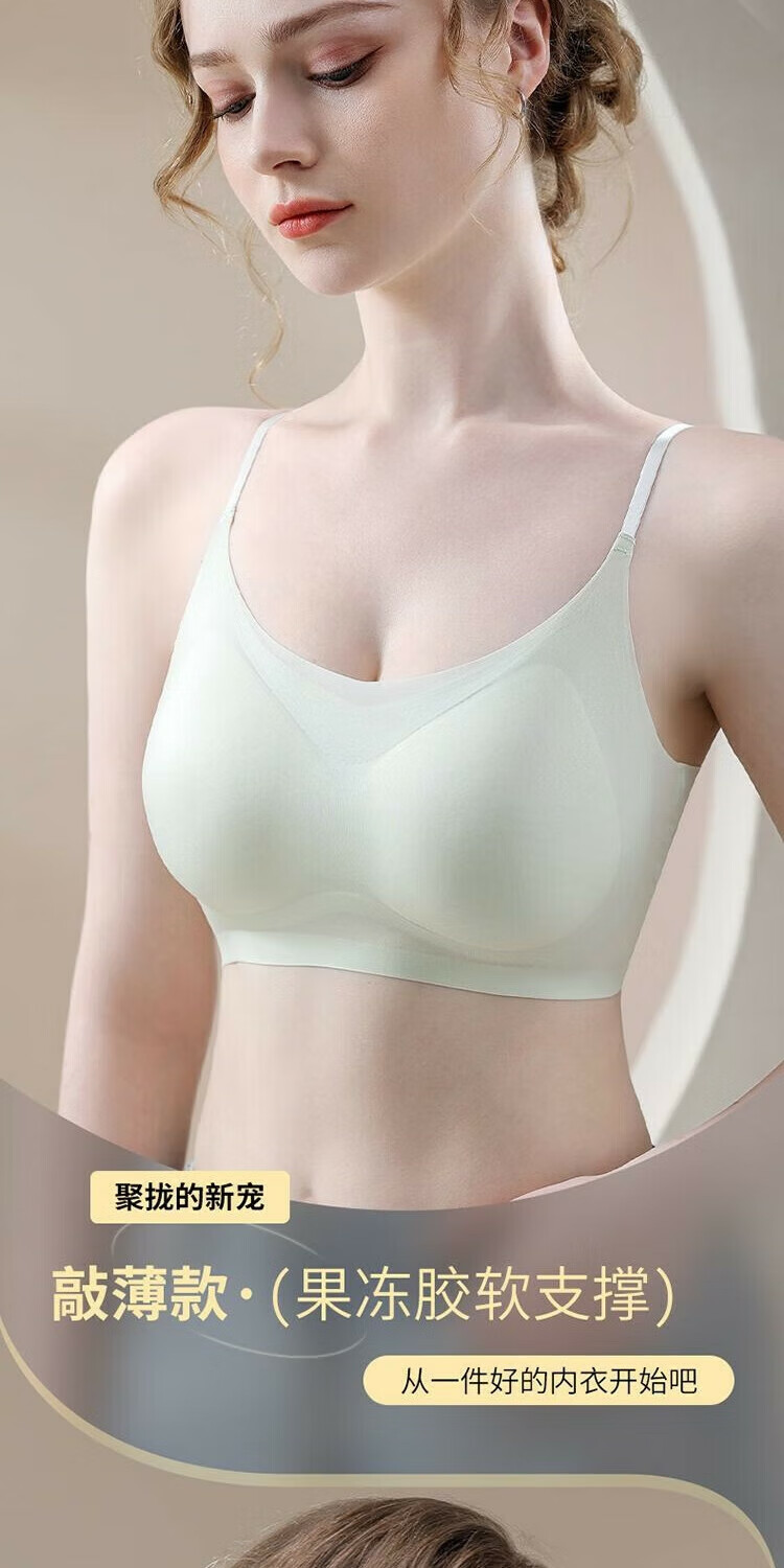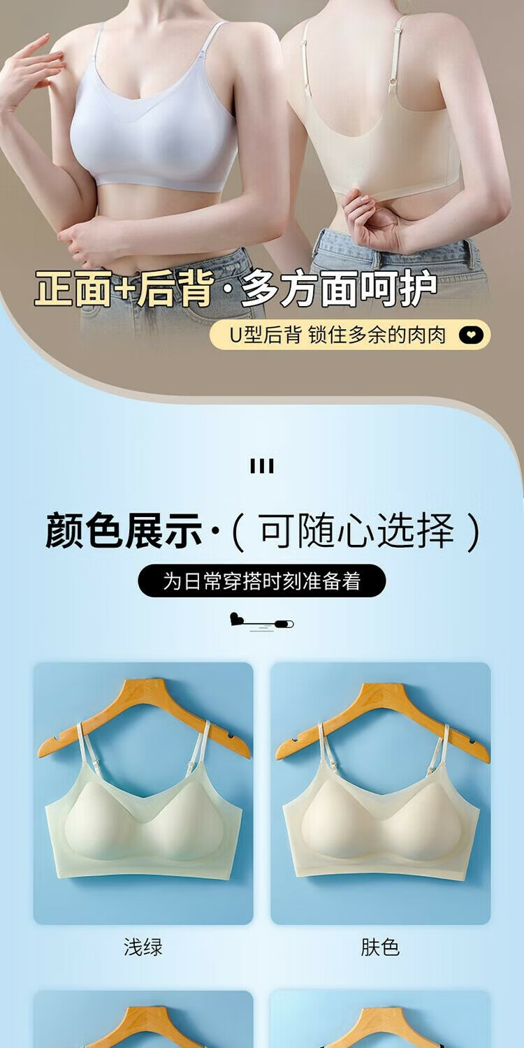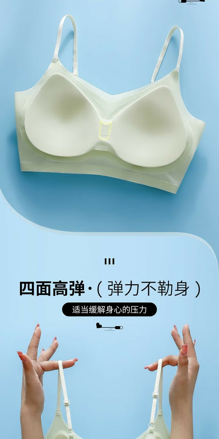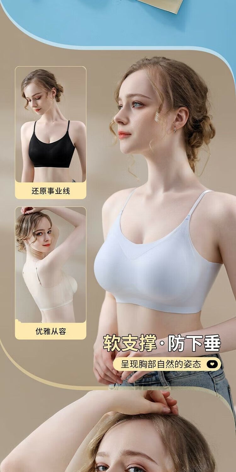 无痕一片式蕾丝内衣女上托防下垂收副乳无钢圈背心式睡眠文胸 肤色 L【110-130斤】