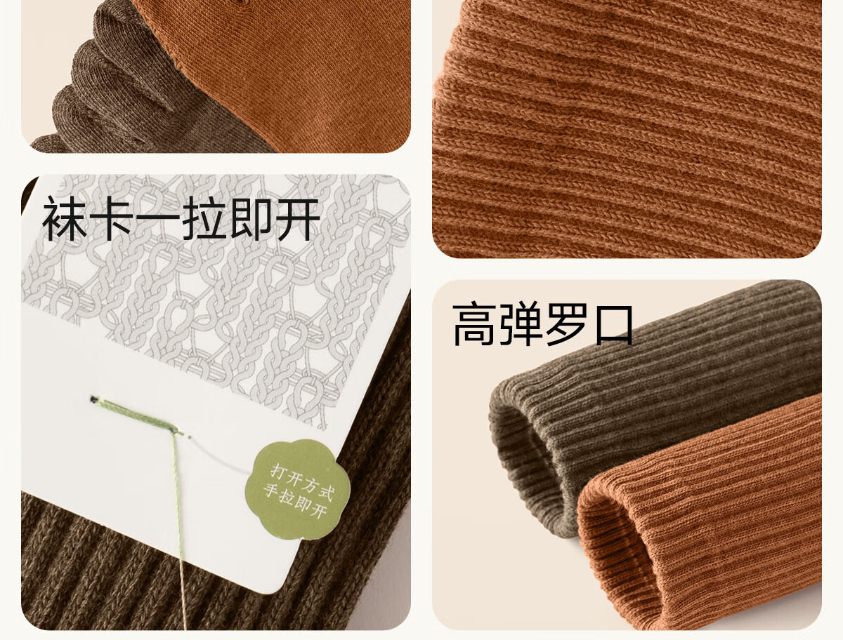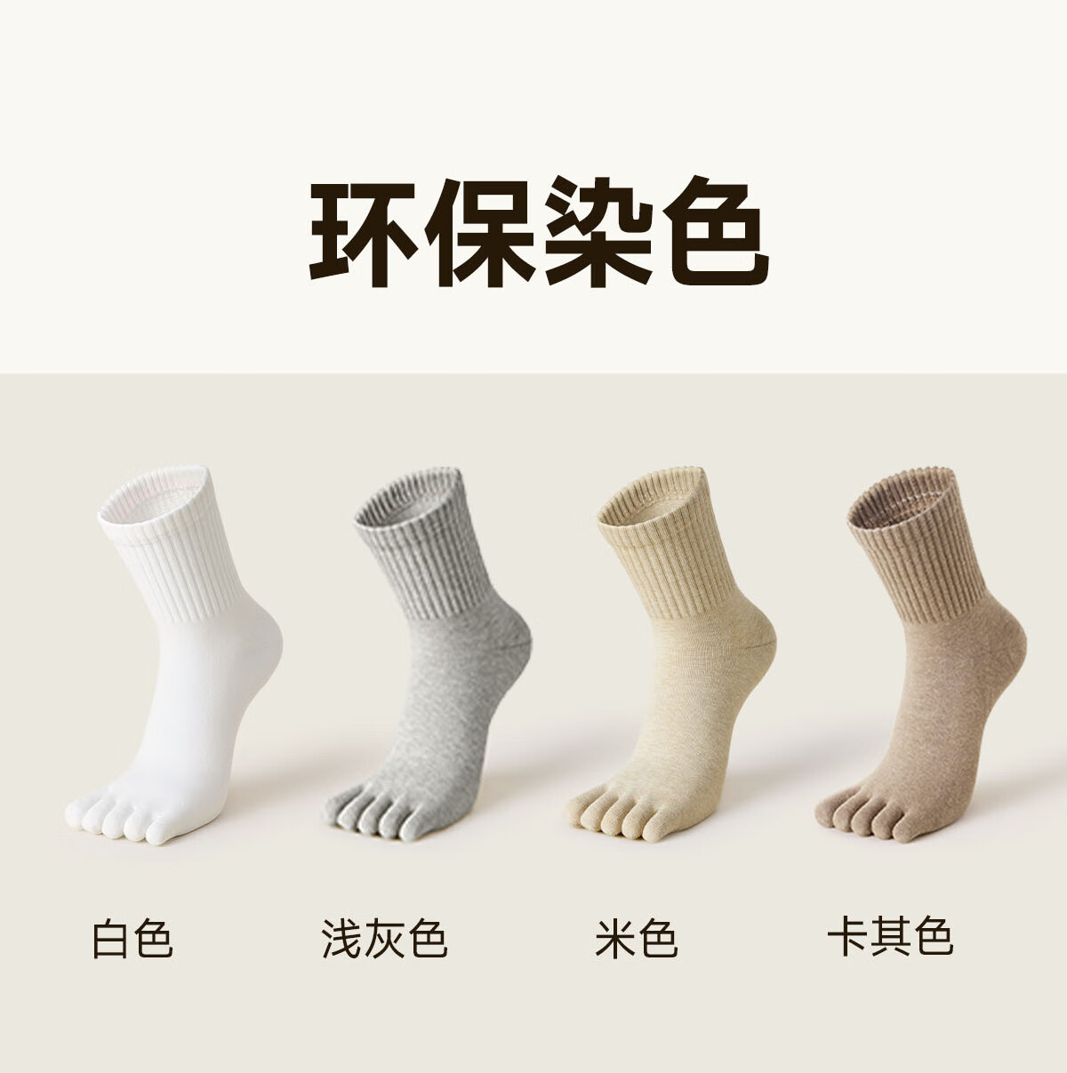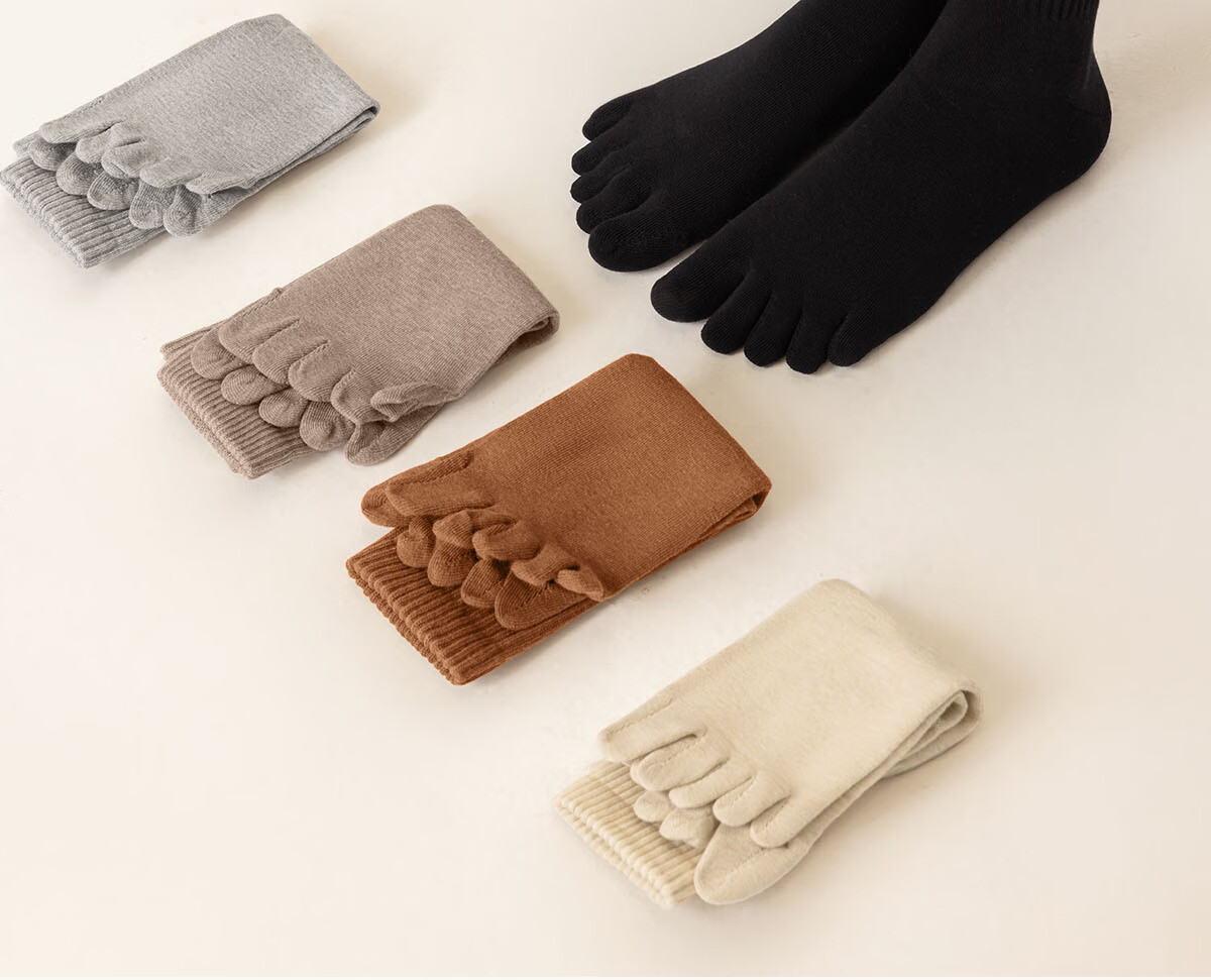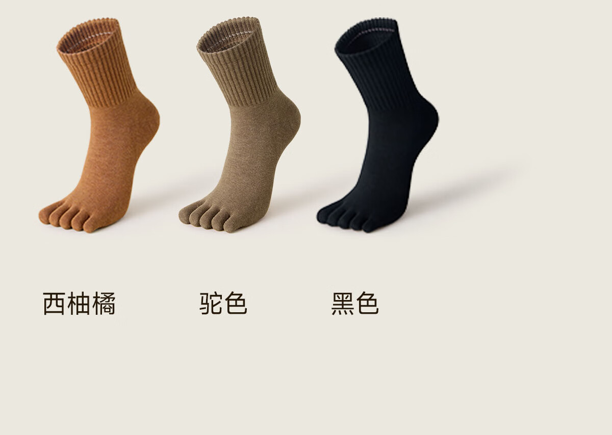 棉竹屋袜子女秋冬款五指袜吸汗抗菌防臭中筒袜抗菌纯棉舒适防臭分趾女袜 米色+脏橘+驼色+黑色 4双 均码 【吸汗防臭/纯棉抗菌】 35-39码