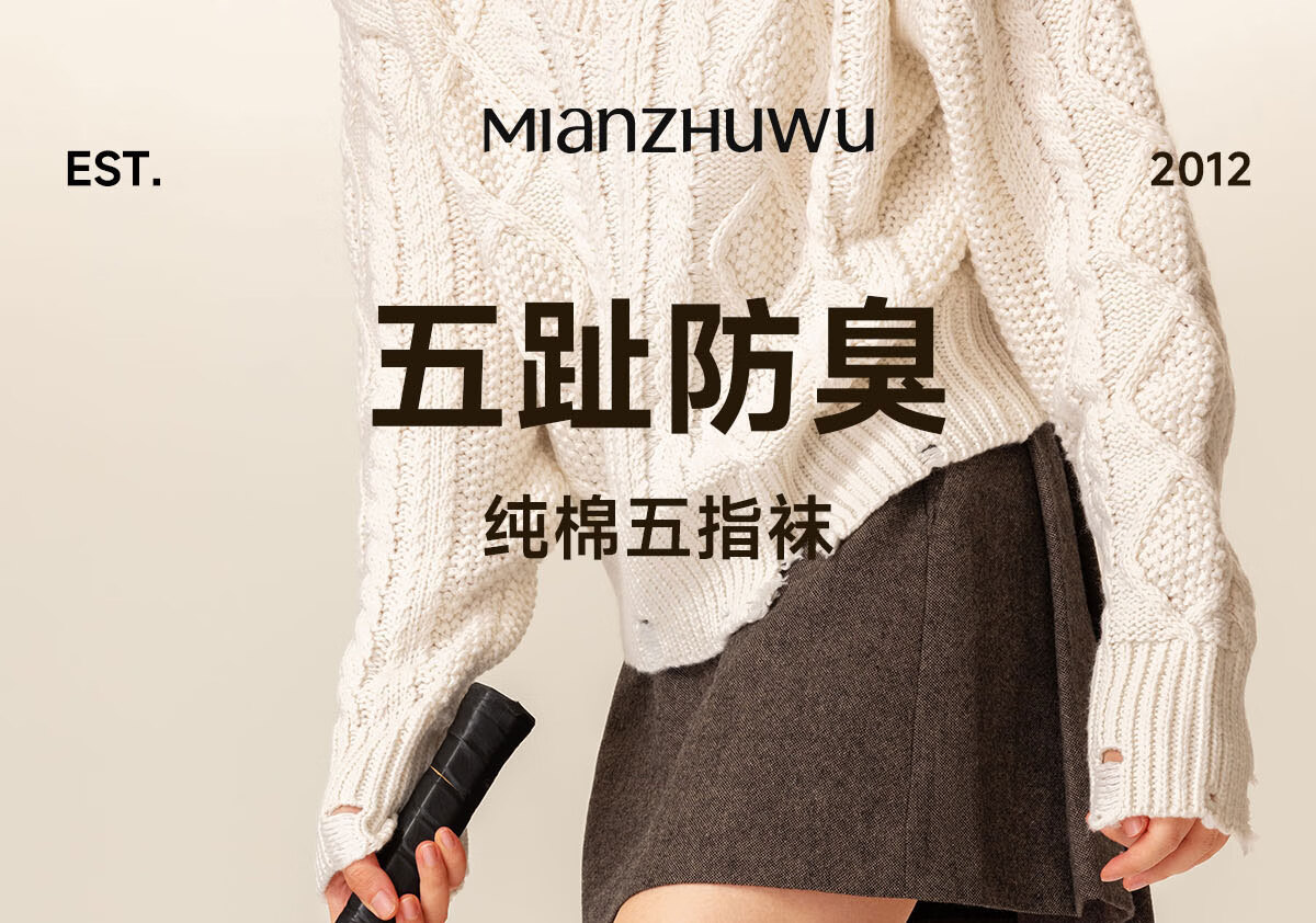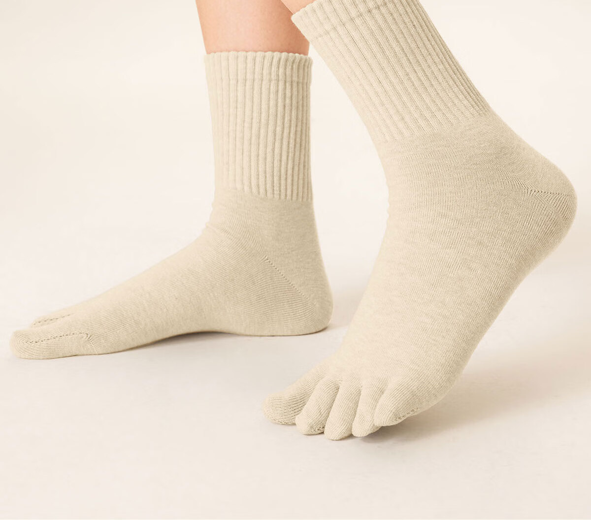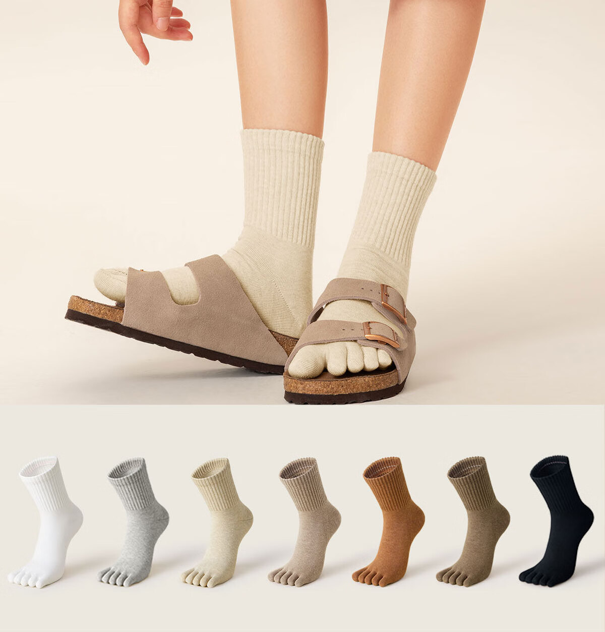 棉竹屋袜子女秋冬款五指袜吸汗抗菌防臭中筒袜抗菌纯棉舒适防臭分趾女袜 米色+脏橘+驼色+黑色 4双 均码 【吸汗防臭/纯棉抗菌】 35-39码