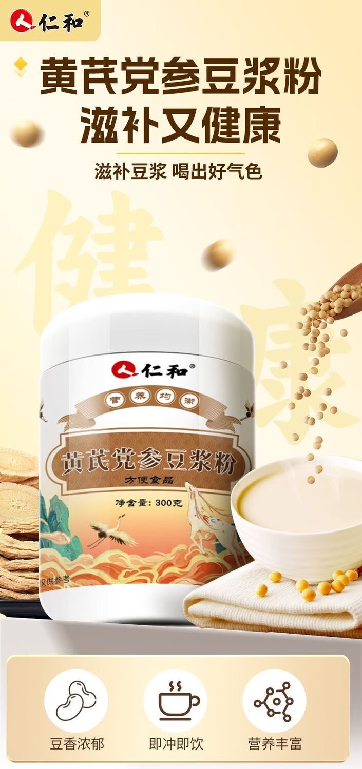 仁和黄芪党参豆浆粉罐装礼袋装早餐冲调营养品送礼营养粉速溶冲饮 2罐装【礼袋装】