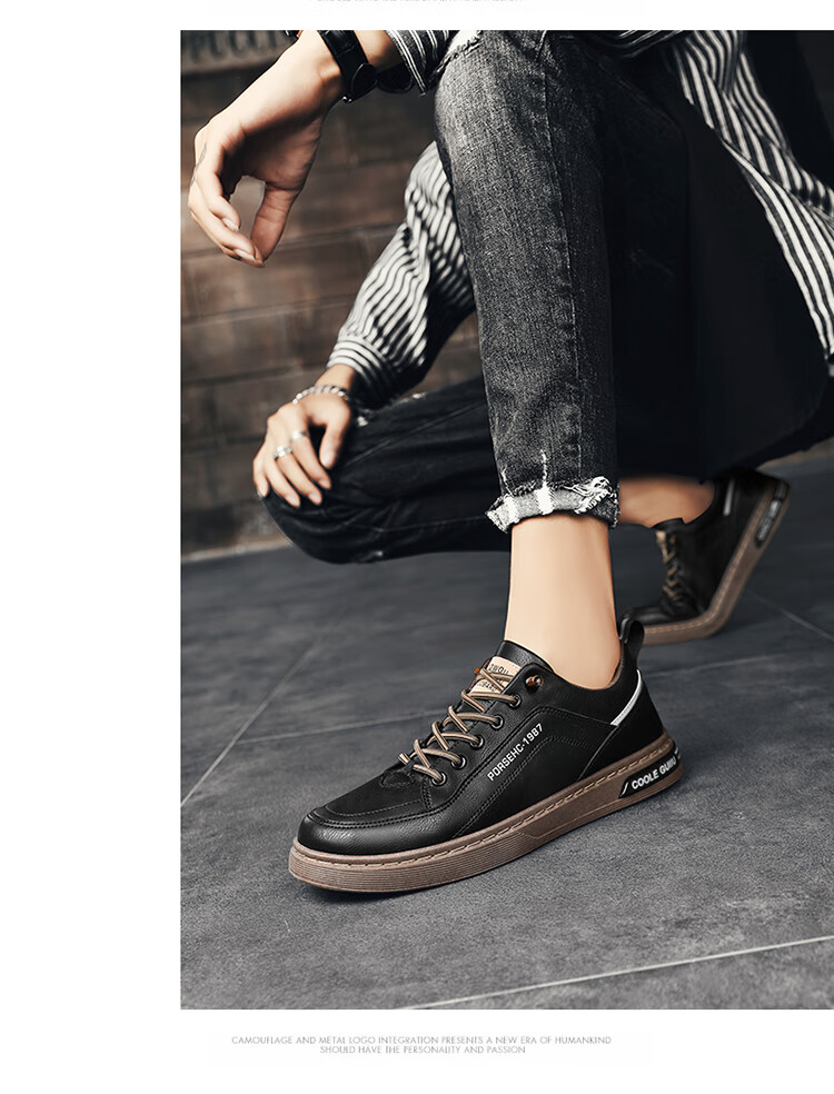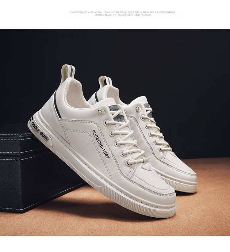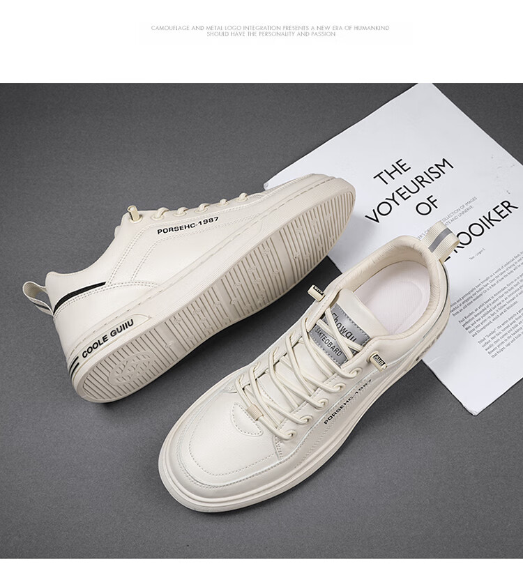 西域骆驼(VANCAMEL)男鞋子男2025秋冬季休闲鞋男士潮流板鞋男时尚商务软底运动小白鞋 【官方正品 品质保证】米色配色 44
