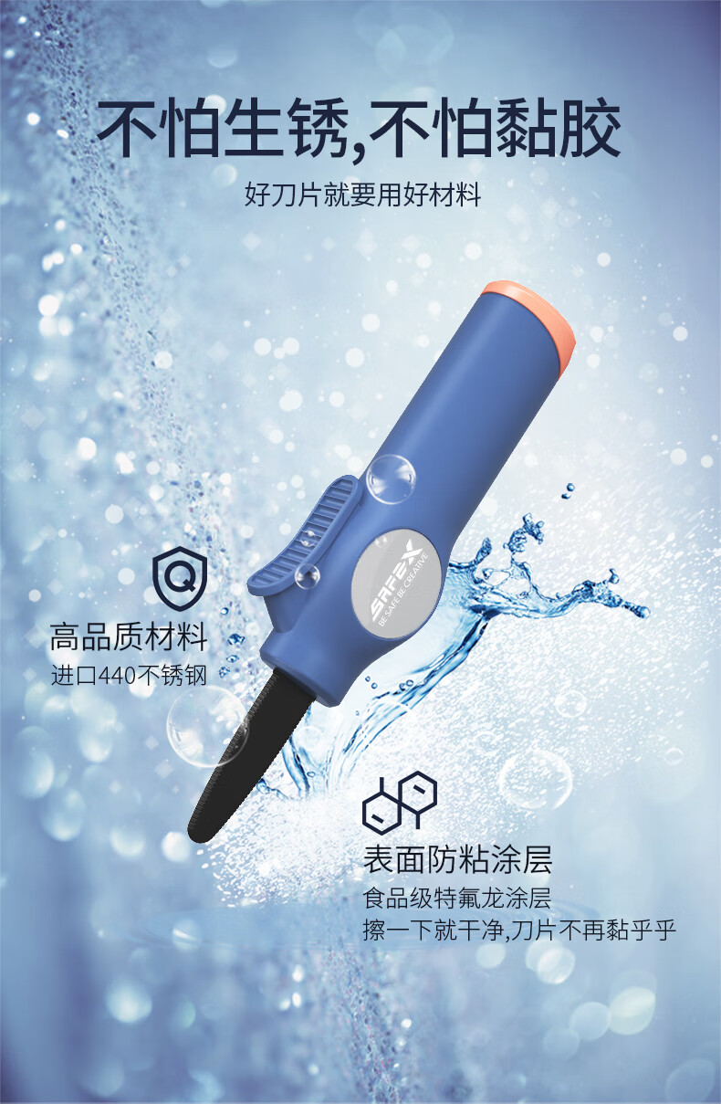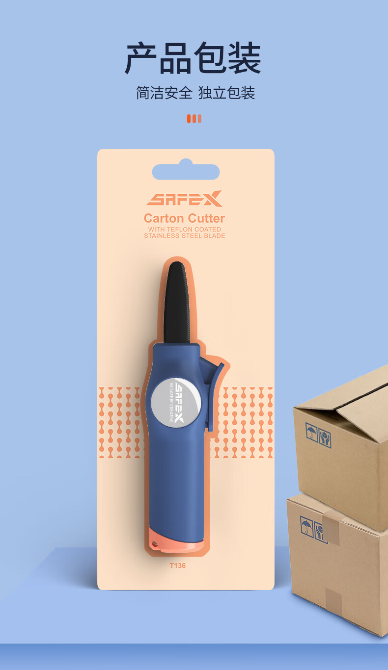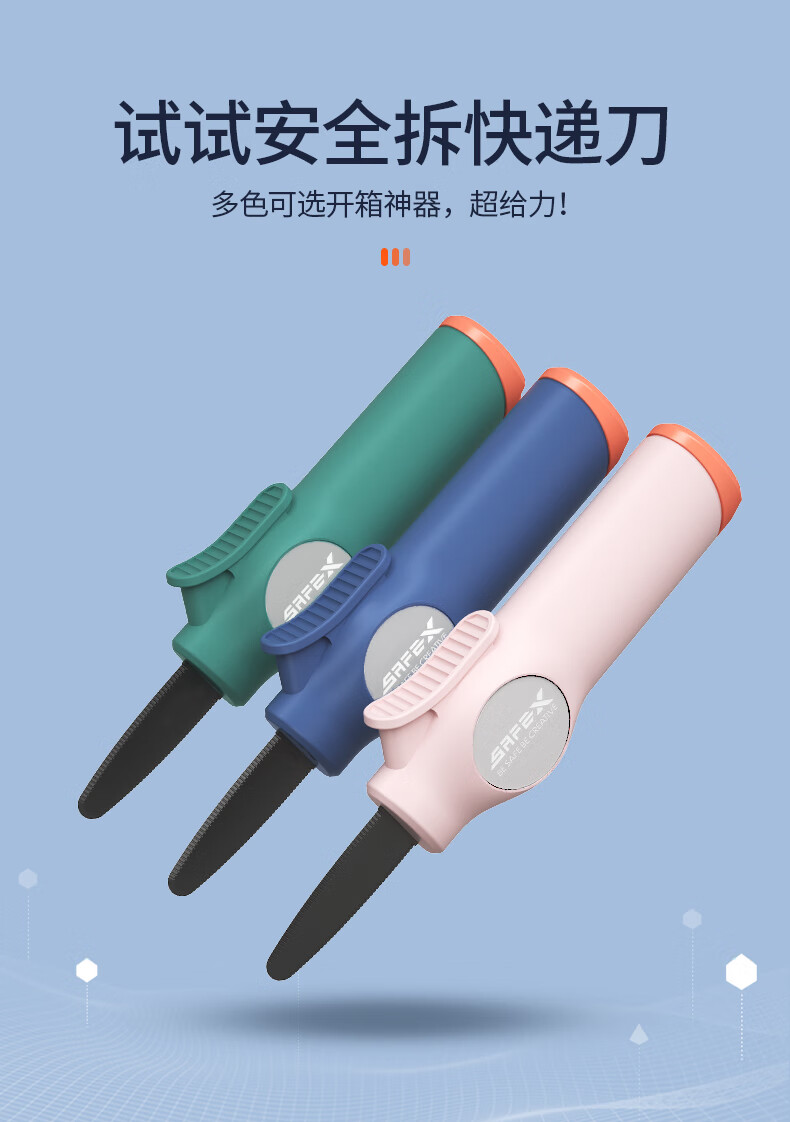 SAFEX重型不锈钢开箱刀可挂绳收纳固定刀片快递刀纸板切割拆快递包裹专用刀安全耐用特氟龙美工刀高颜值 T136-樱花粉-短刀刃