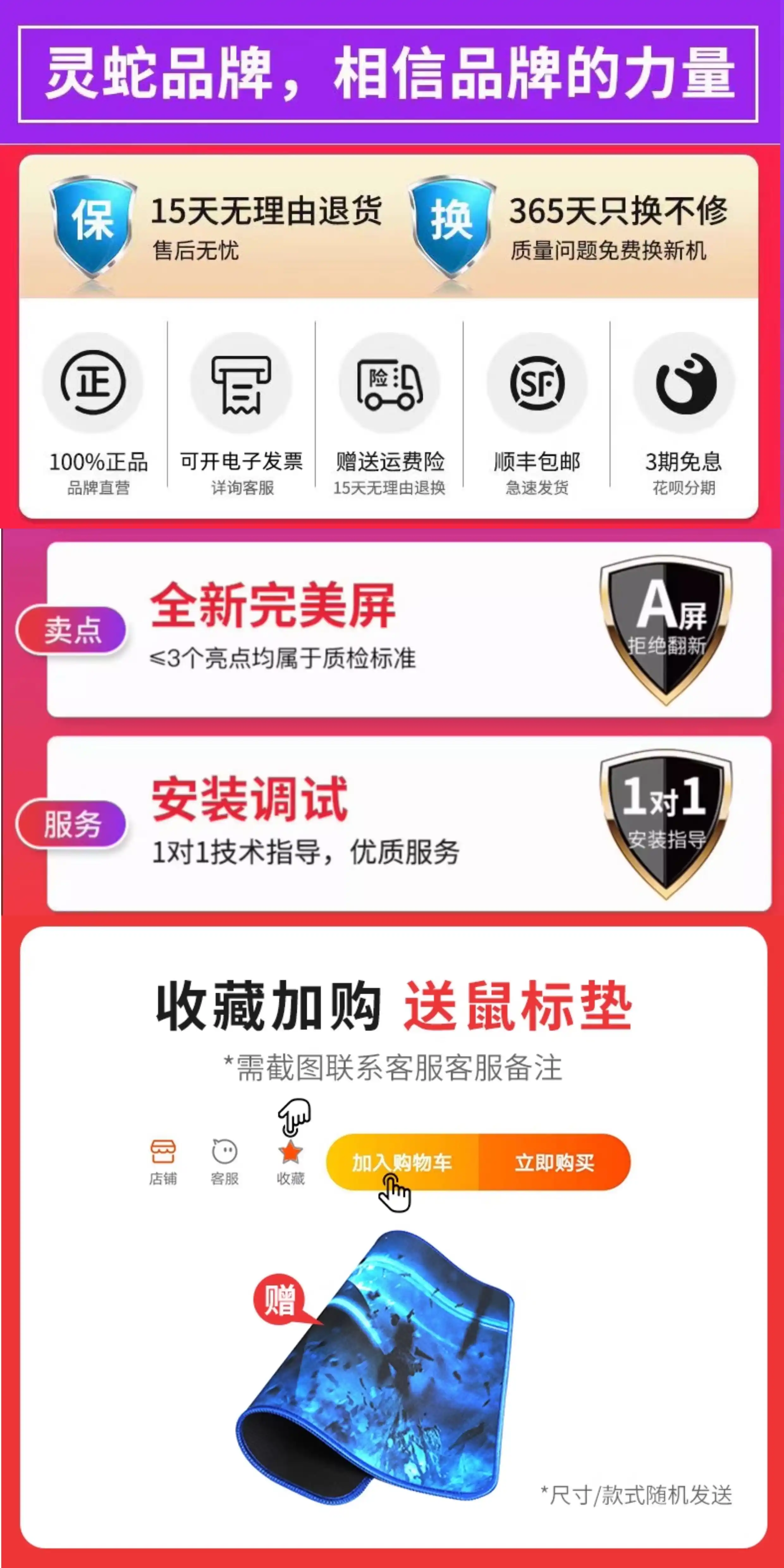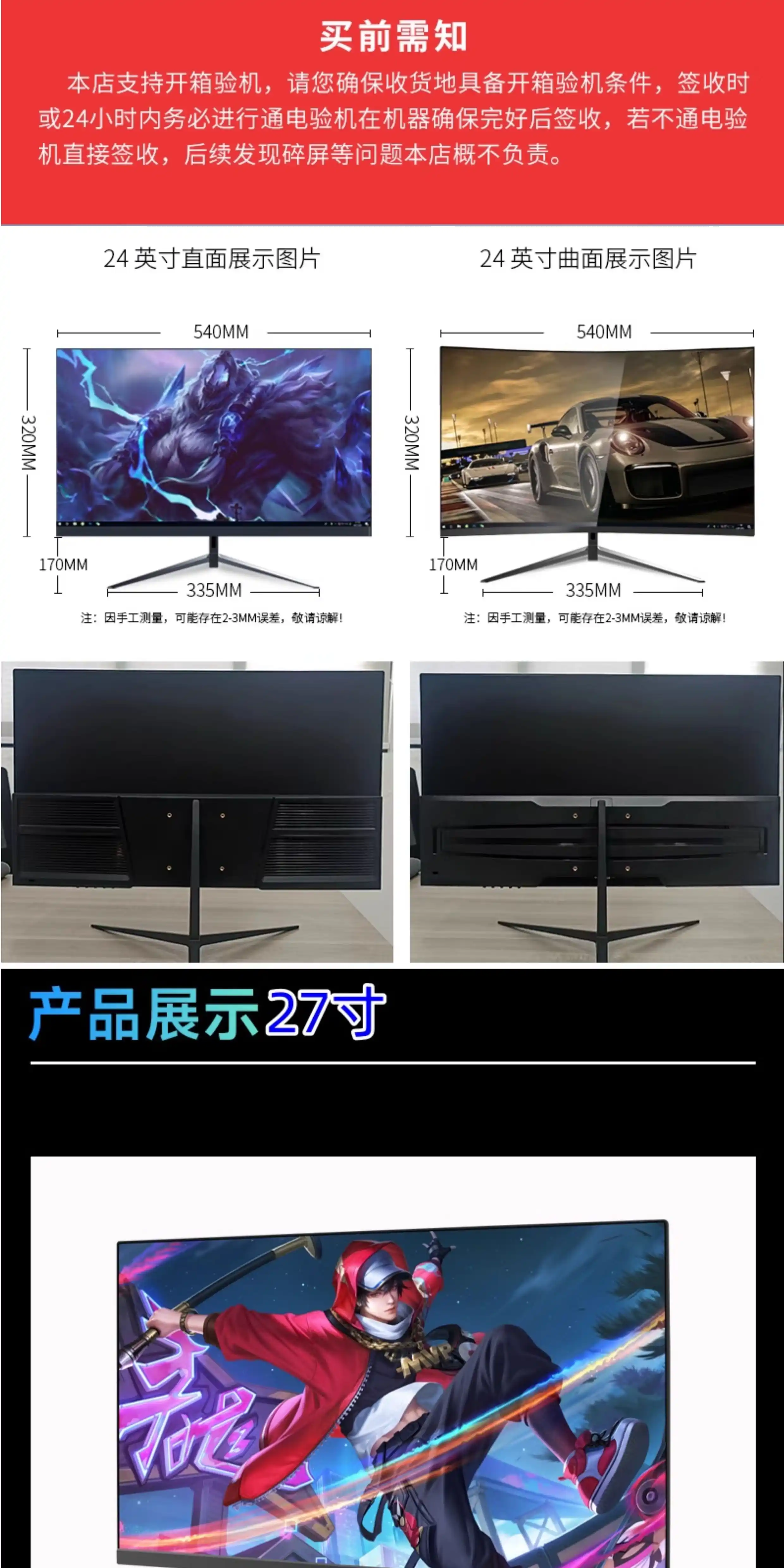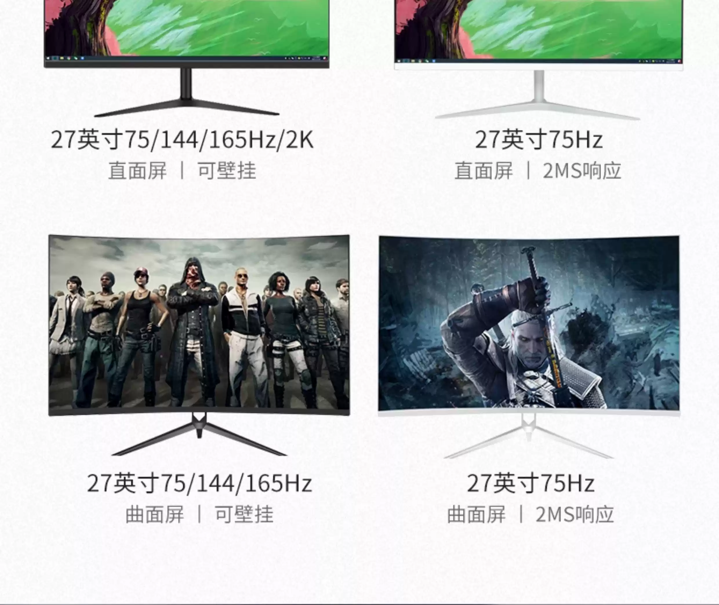 灵蛇显示器27英寸曲面2k144h高清超薄24电竞无边框32台式电脑屏幕ips 24英寸直面1无边+100h白 官方标配