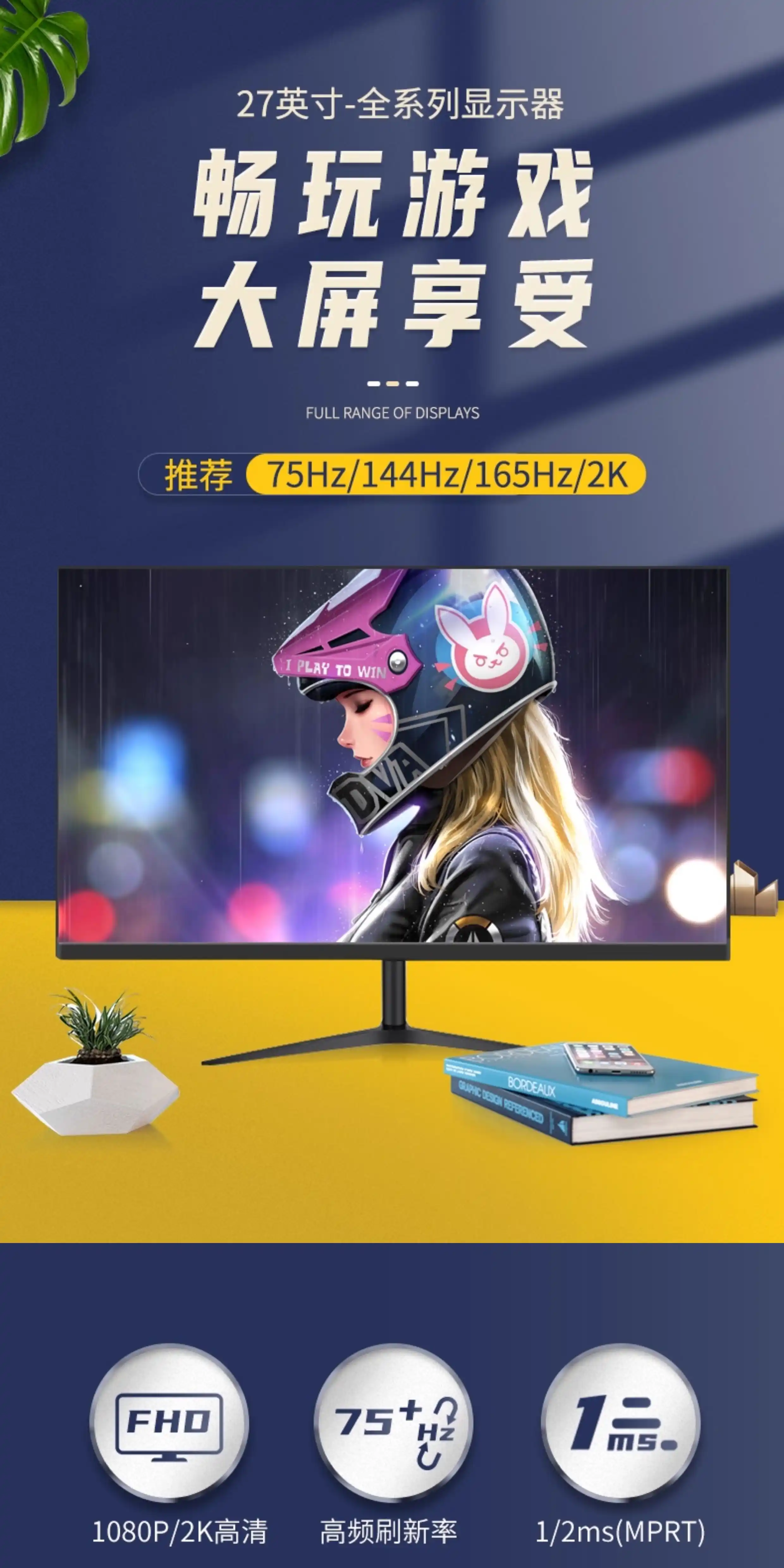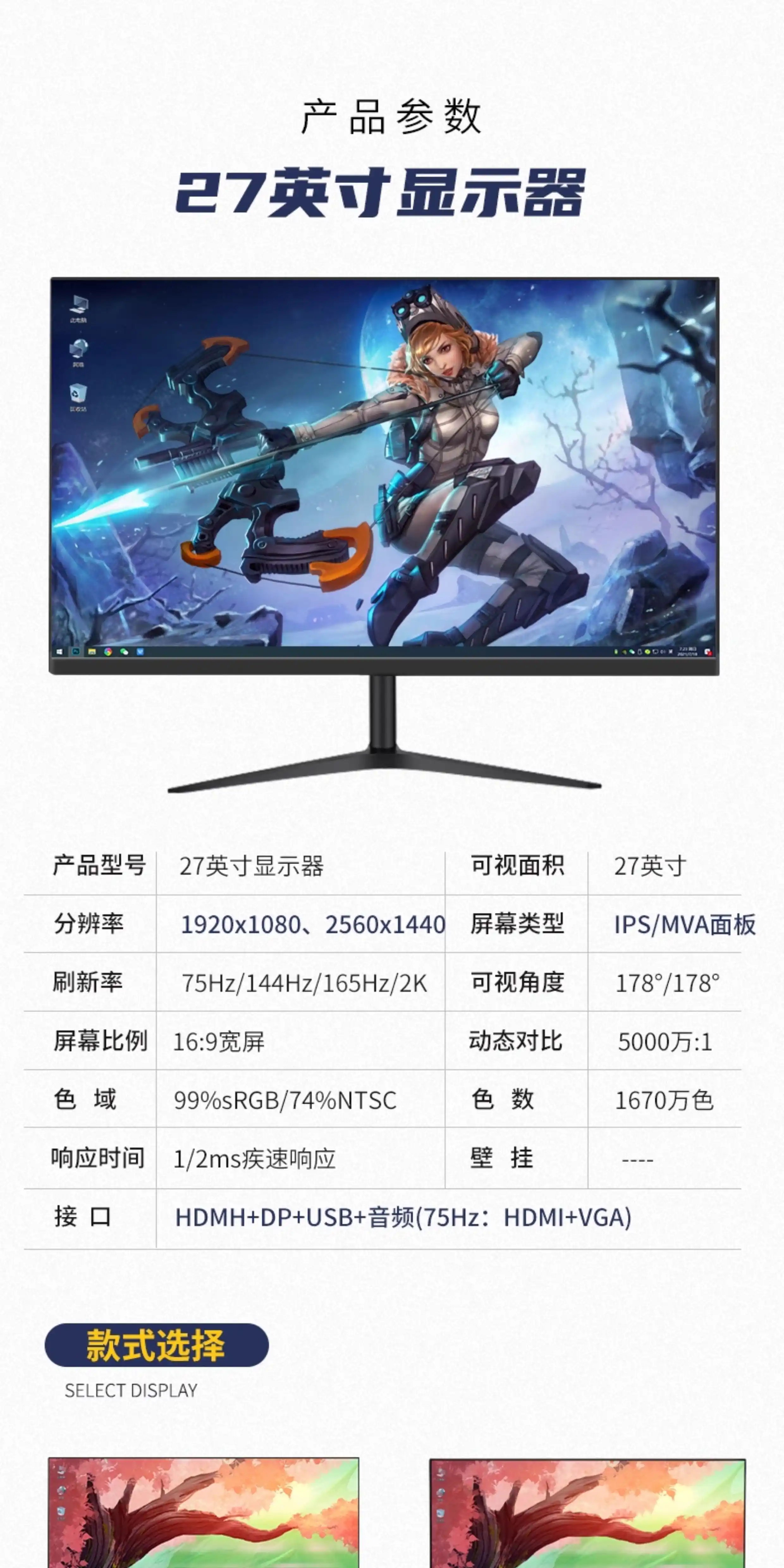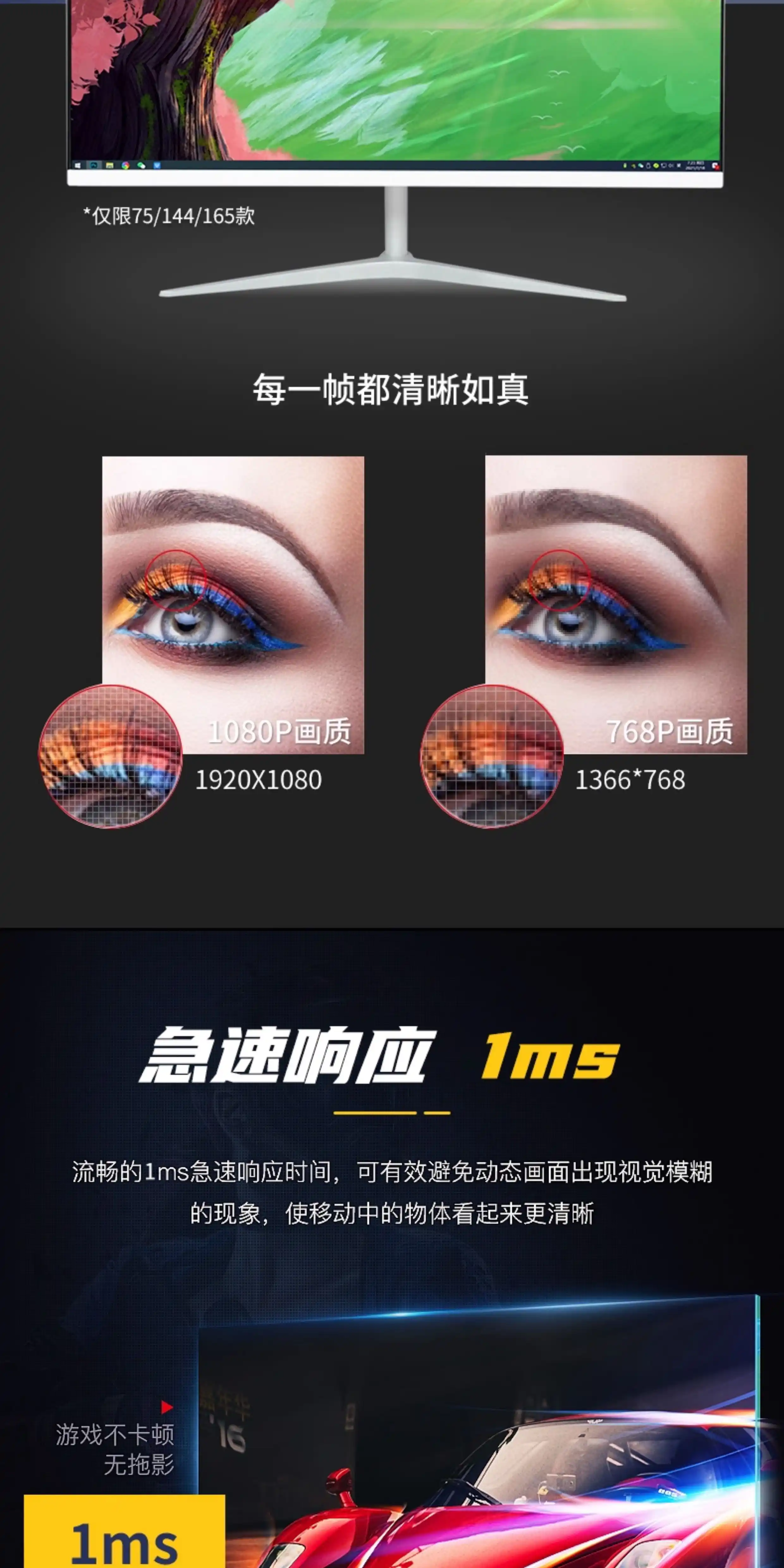灵蛇显示器27英寸曲面2k144h高清超薄24电竞无边框32台式电脑屏幕ips 24英寸直面1无边+100h白 官方标配