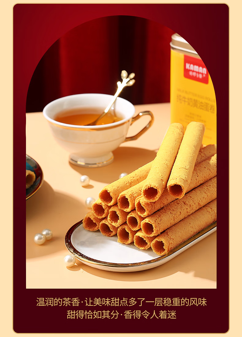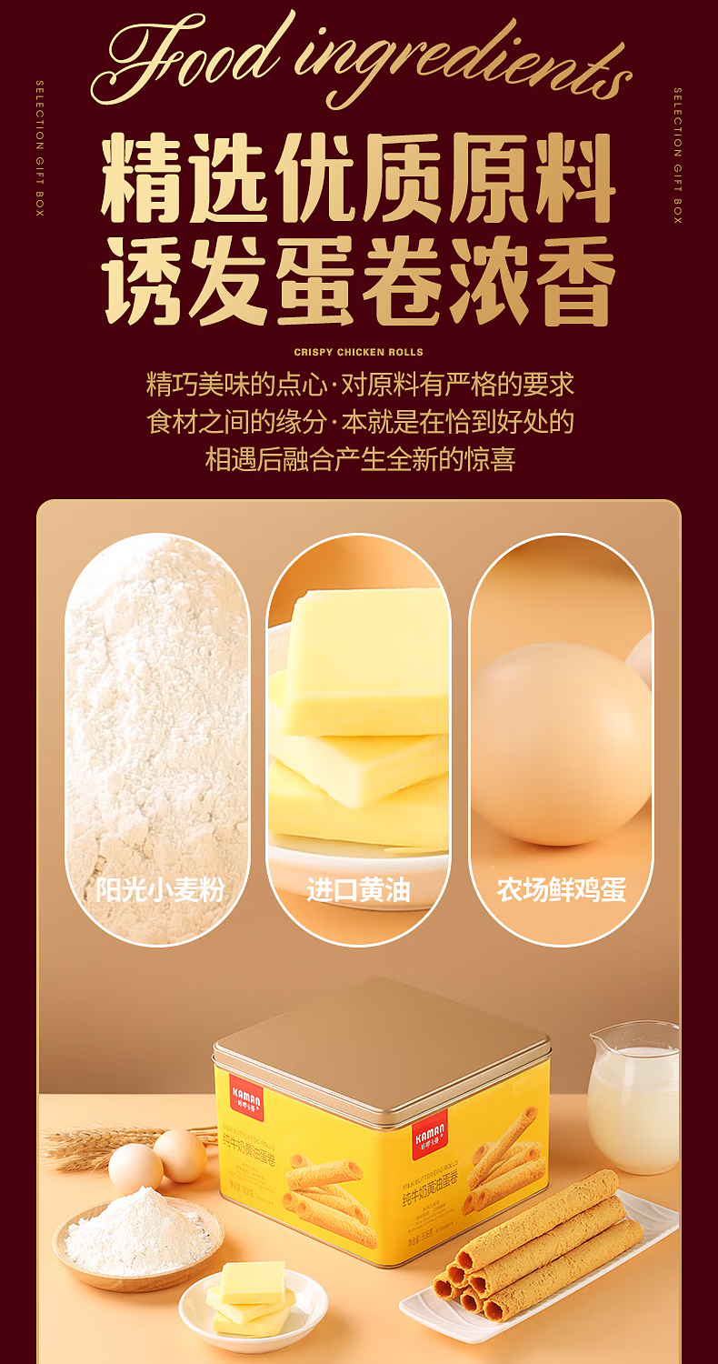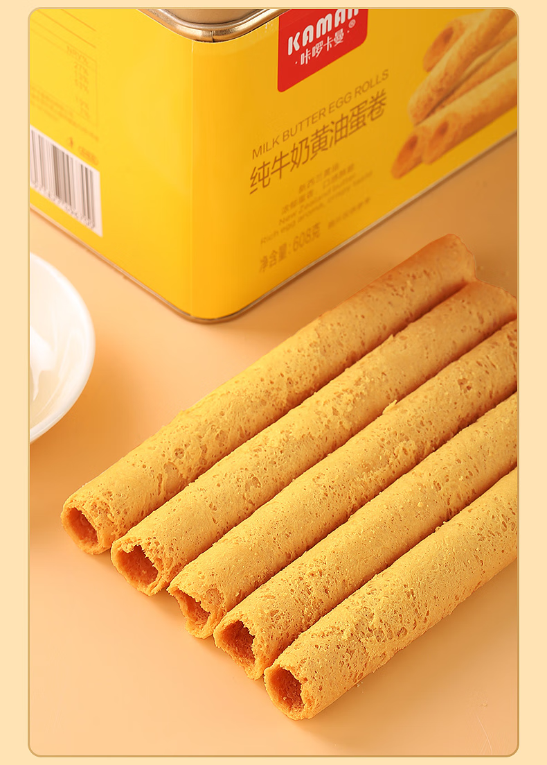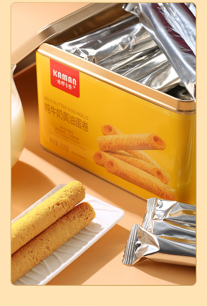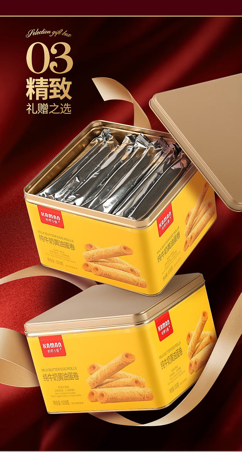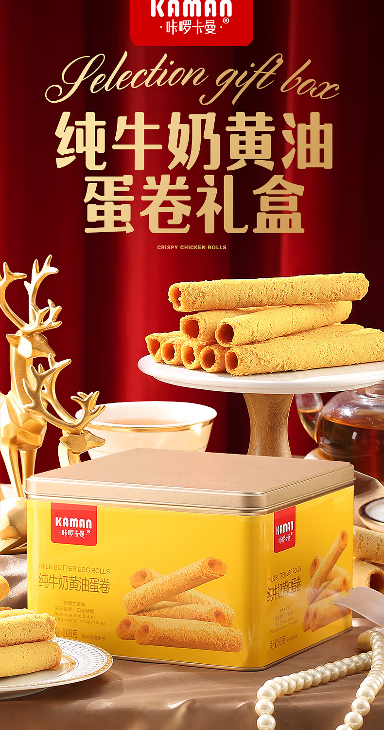 咔啰卡曼咔啰卡曼 纯牛奶黄油蛋卷 零食饼干糕点送礼特产方形铁盒装 608g纯牛奶黄油味*2箱