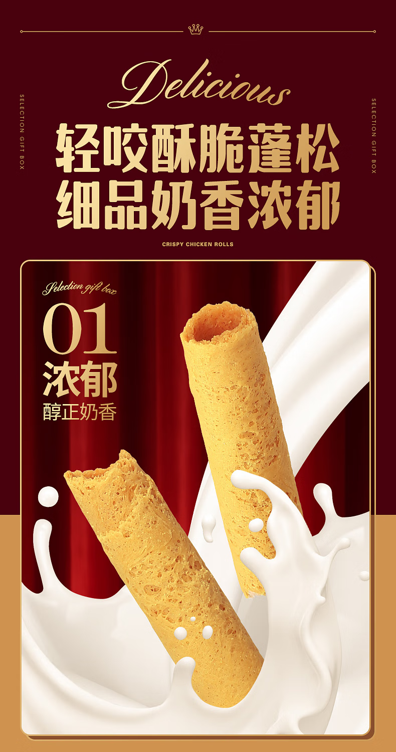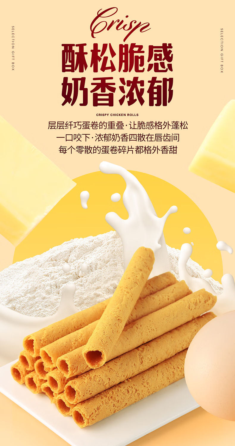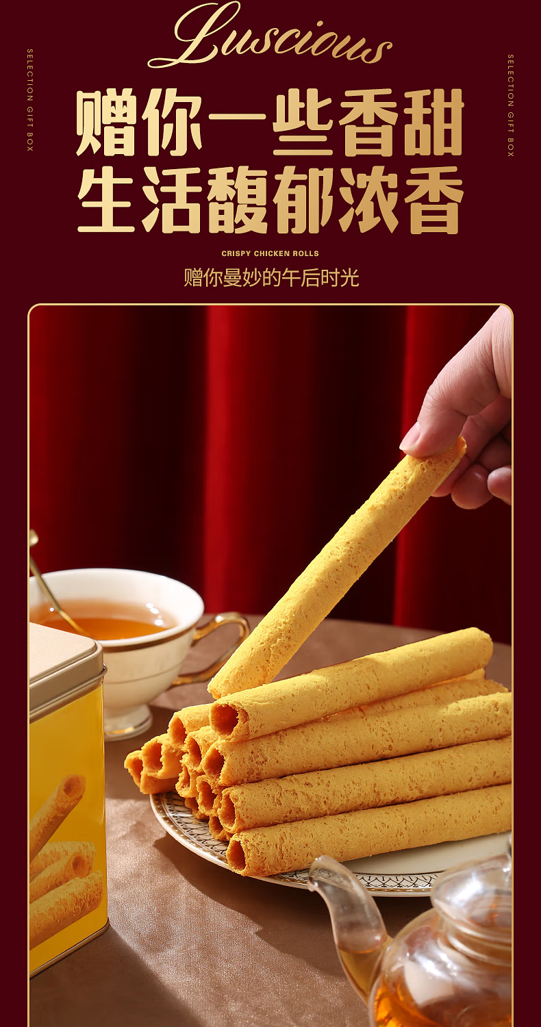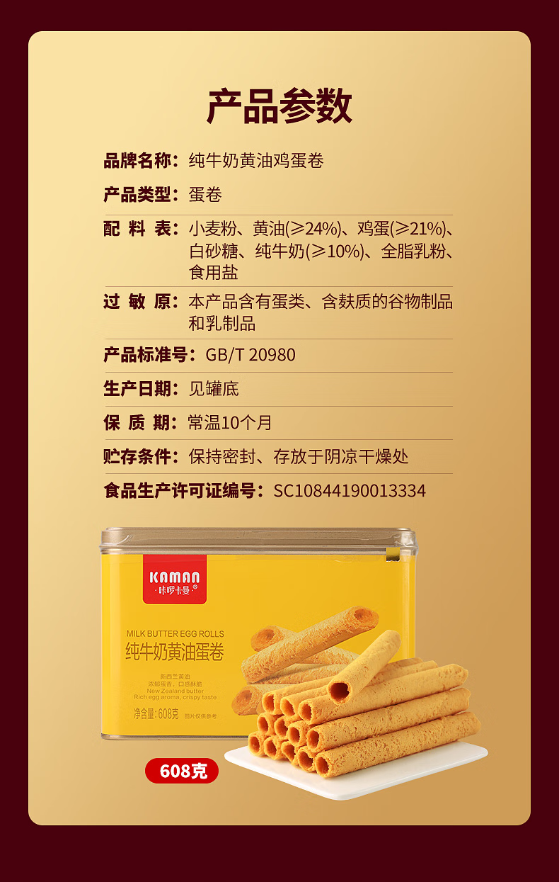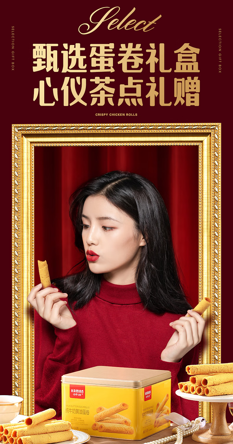 咔啰卡曼咔啰卡曼 纯牛奶黄油蛋卷 零食饼干糕点送礼特产方形铁盒装 608g纯牛奶黄油味*2箱