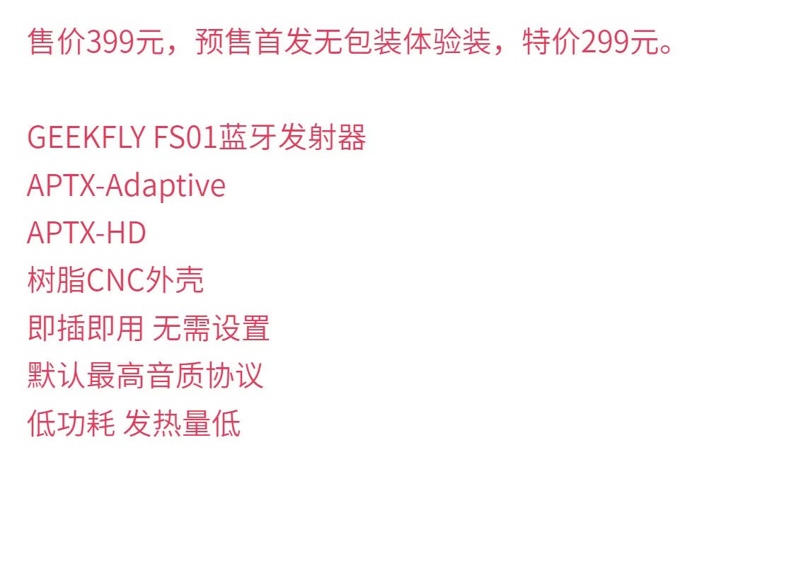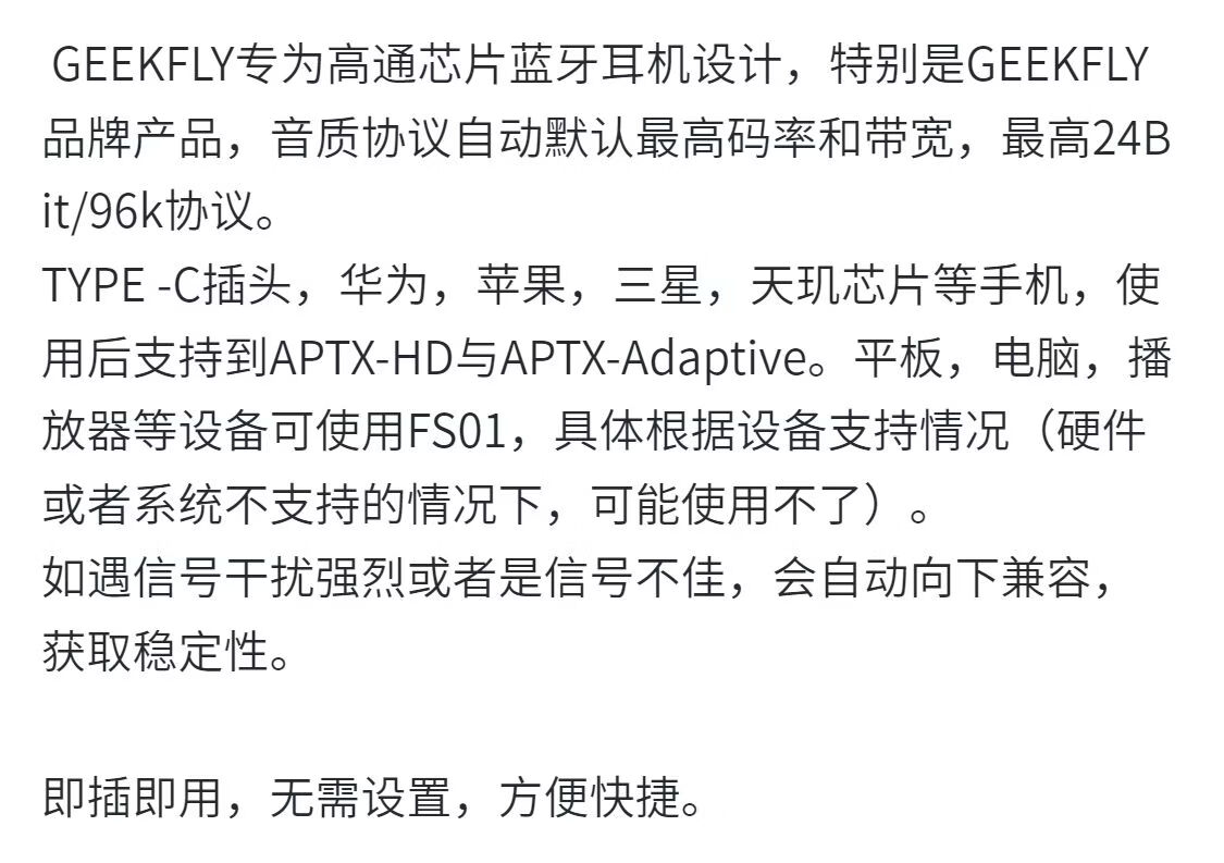 GEEKFLY新品GEEKFLY FS01蓝牙发射器手机平板电脑即插即用蓝牙5.4 黑金白混色