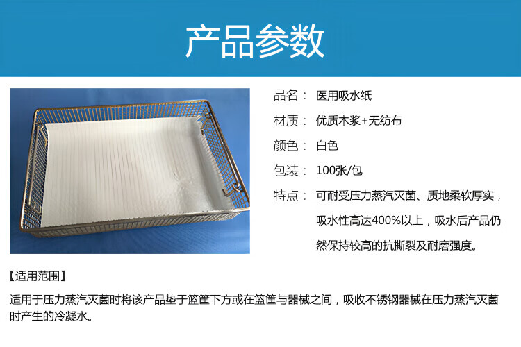 一次性使用吸水纸医用无纺布吸水巾医疗器械蒸汽灭菌耐高温垫纸 17*25cm 500张