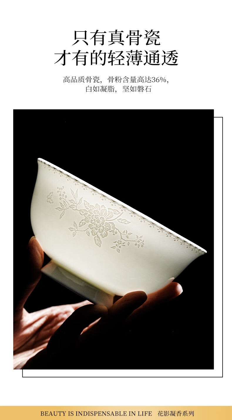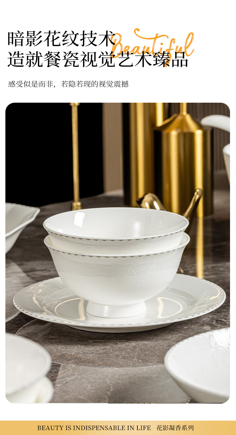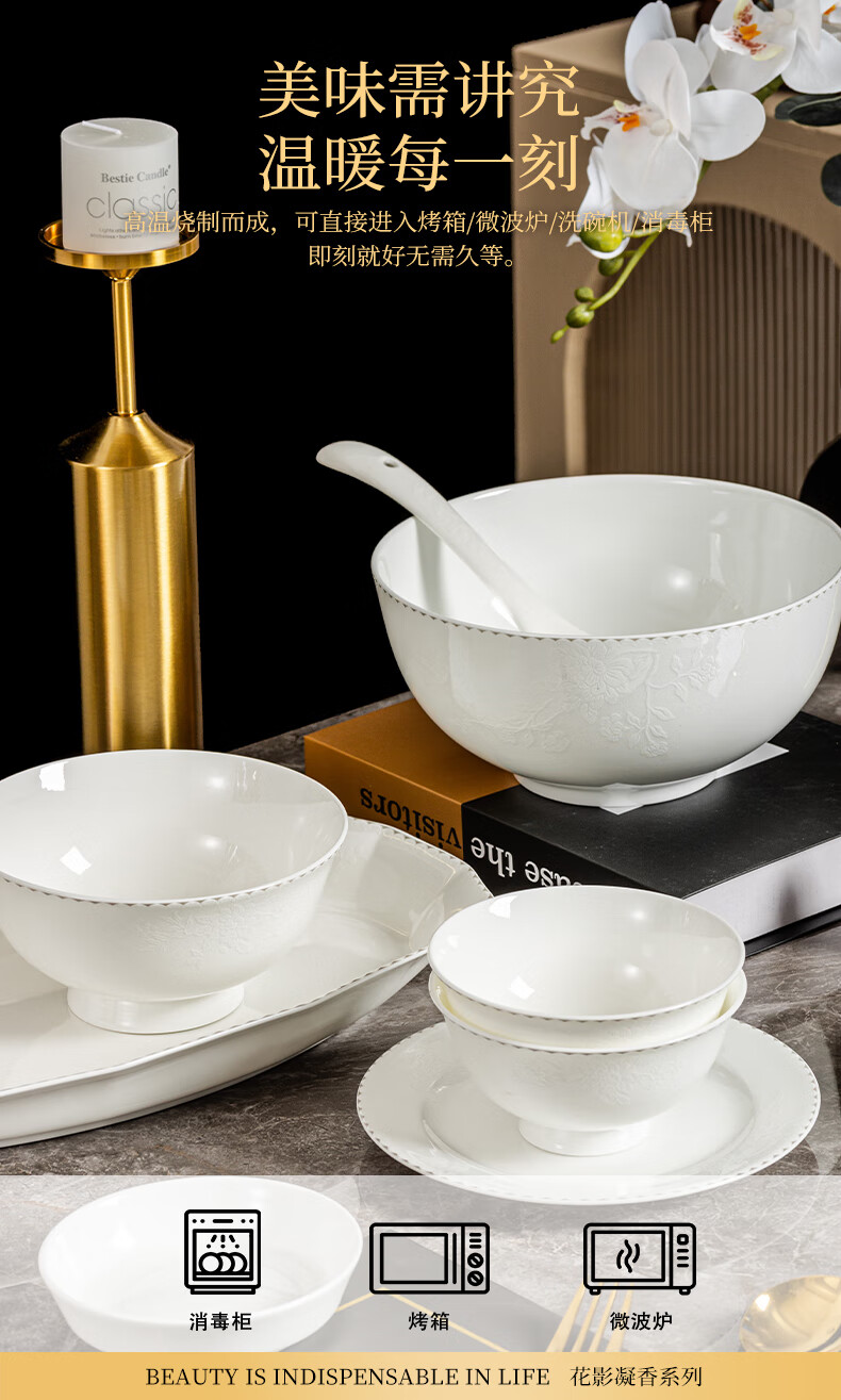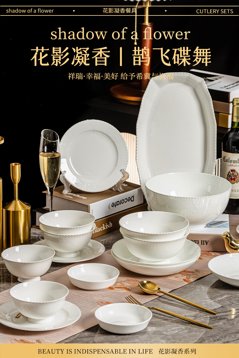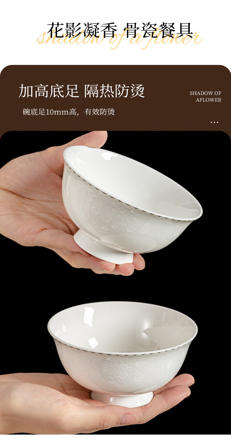 ARST雅誠德花影凝香碗碟骨瓷餐具套装家用高颜值抗菌碗盘碗筷 乔迁送礼礼盒 二人食10件套【高档骨瓷】