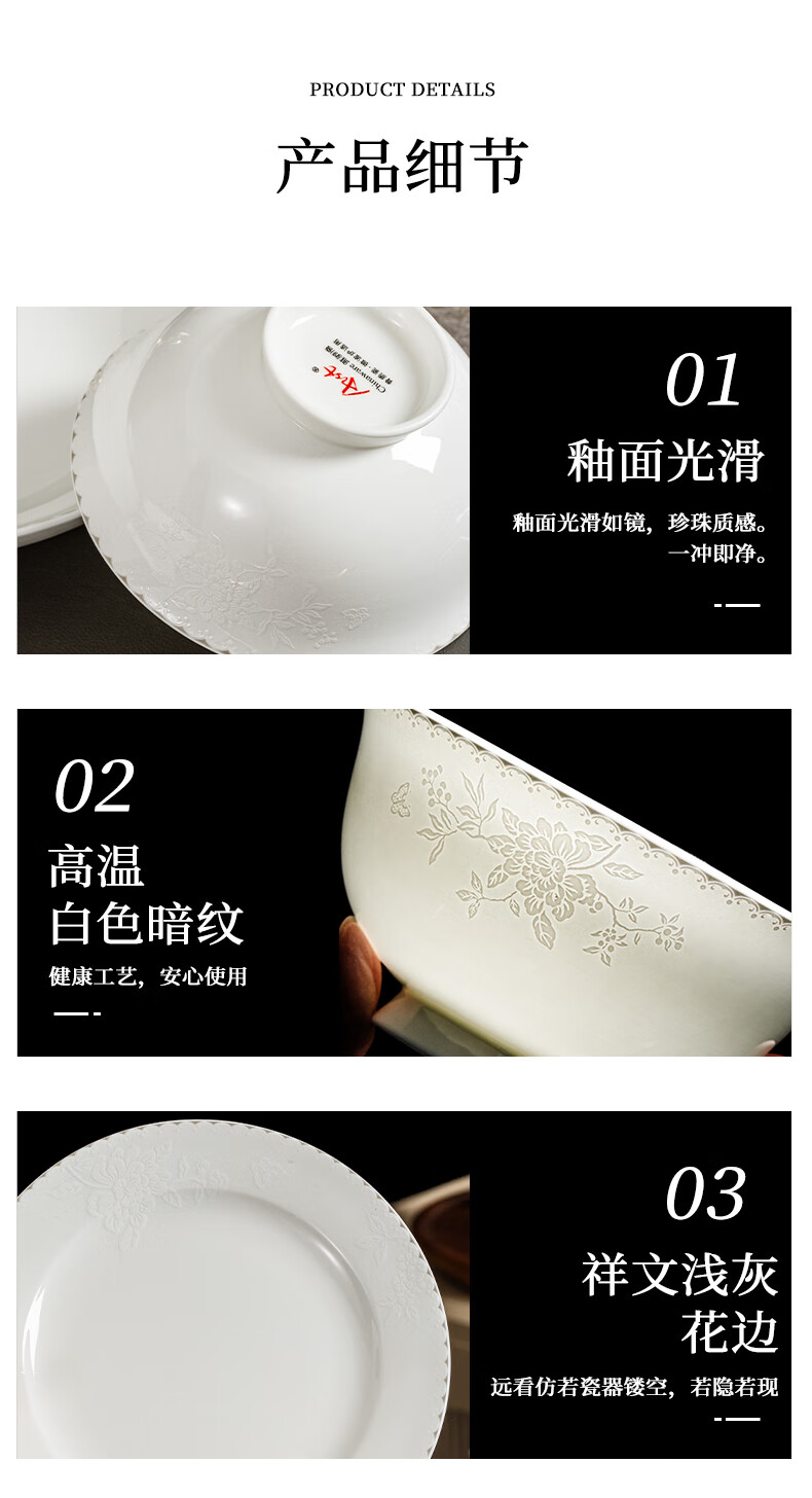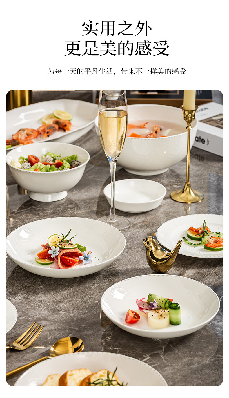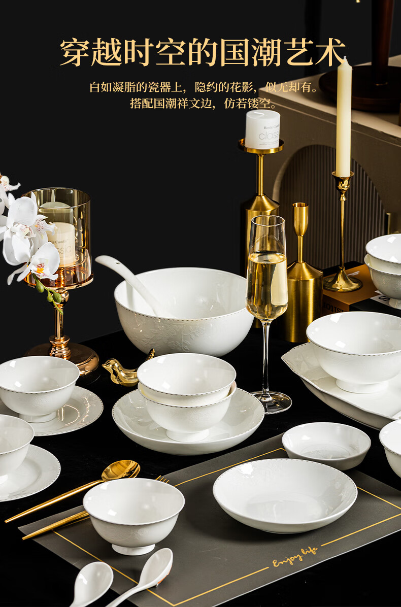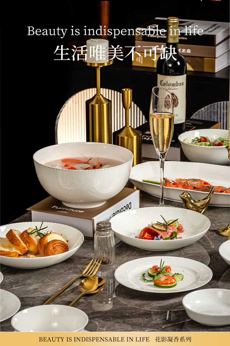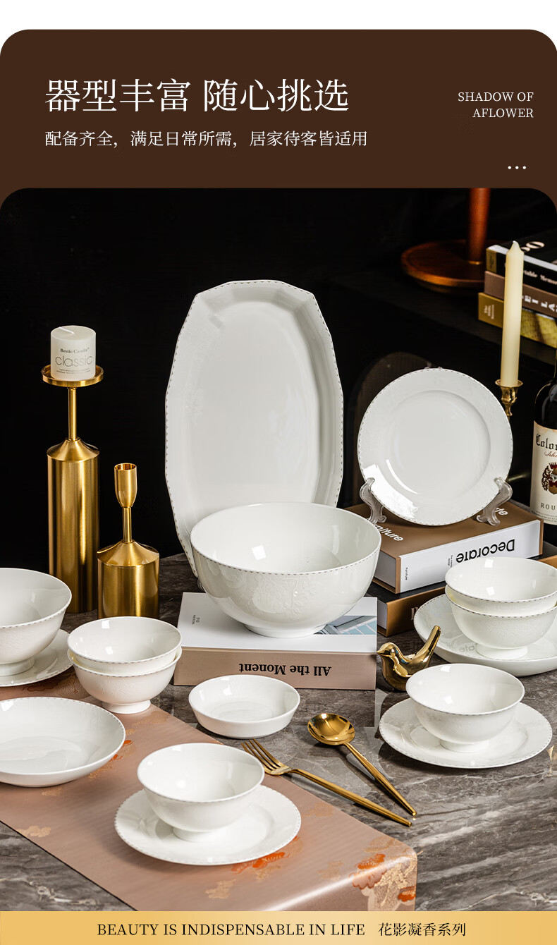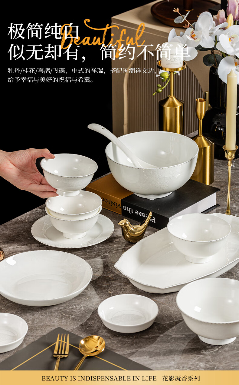 ARST雅誠德花影凝香碗碟骨瓷餐具套装家用高颜值抗菌碗盘碗筷 乔迁送礼礼盒 二人食10件套【高档骨瓷】