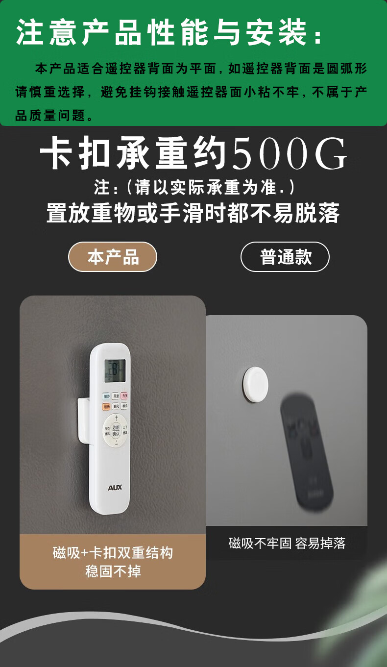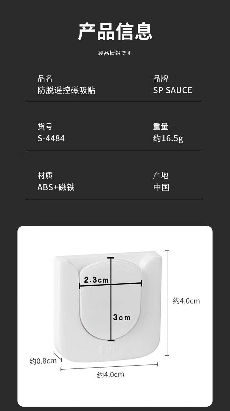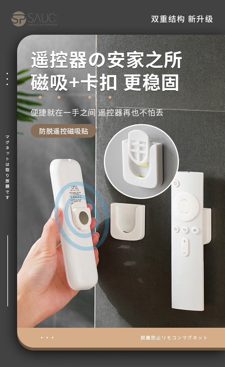 SP SAUCE免打孔磁吸遥控器收纳盒壁挂磁吸挂钩背胶贴磁吸磁贴 白色:1个装 收纳好物