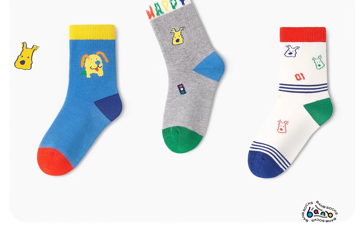 斑比儿童袜子秋冬季潮袜男大童春秋款无骨中筒袜BB24522 20-22码