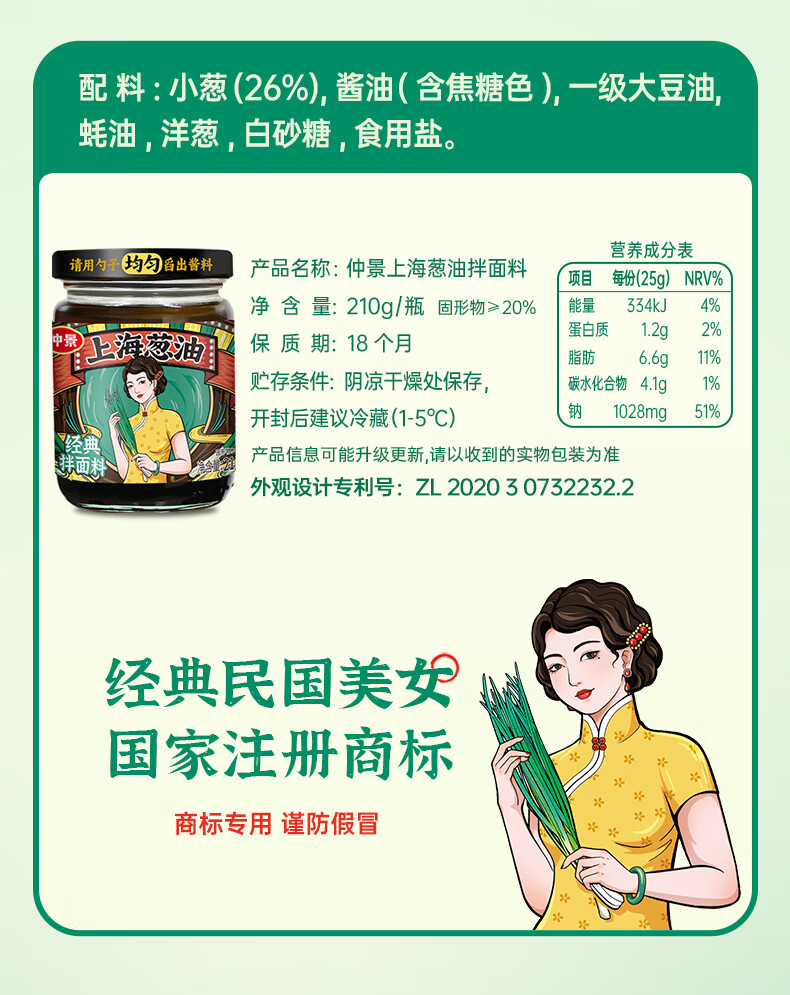 仲景上海葱油拌面酱料汁 老上海葱油拌粉馄饨葱油汁专用【配料干净】 【经典味】上海葱油210gx1瓶