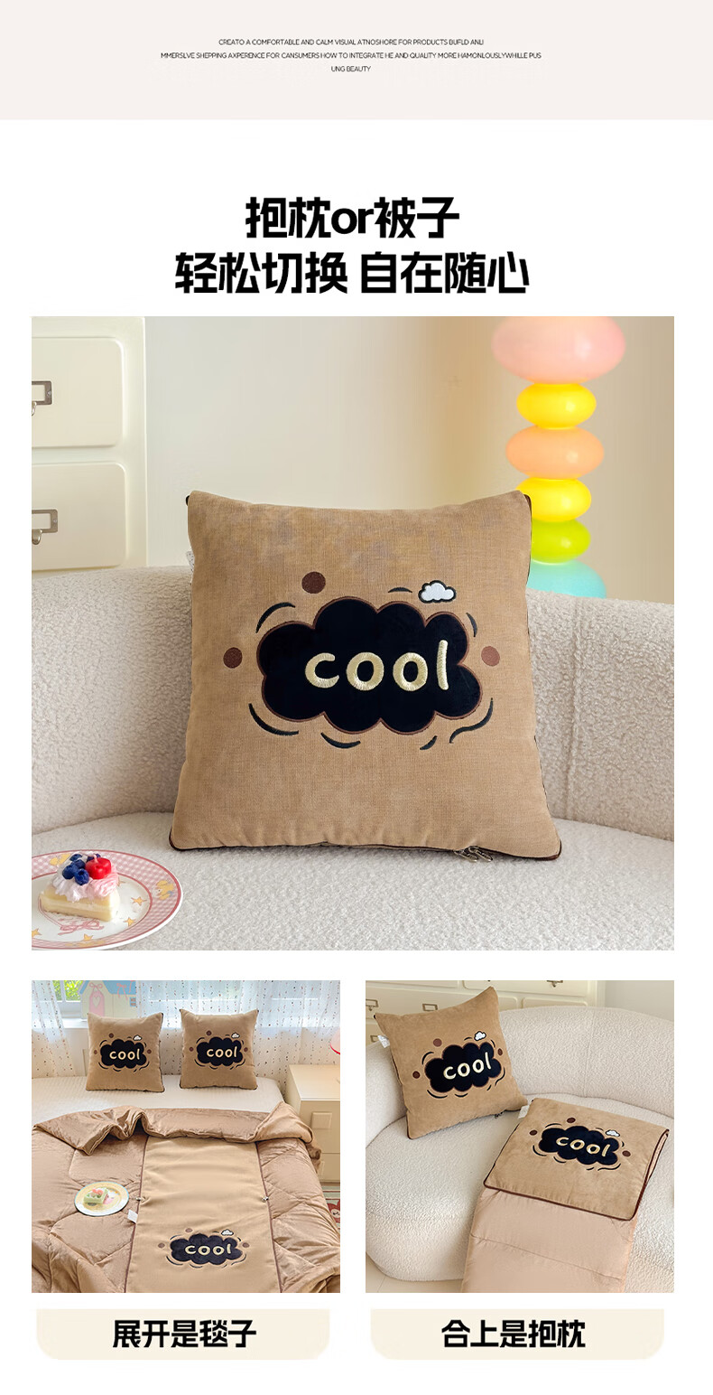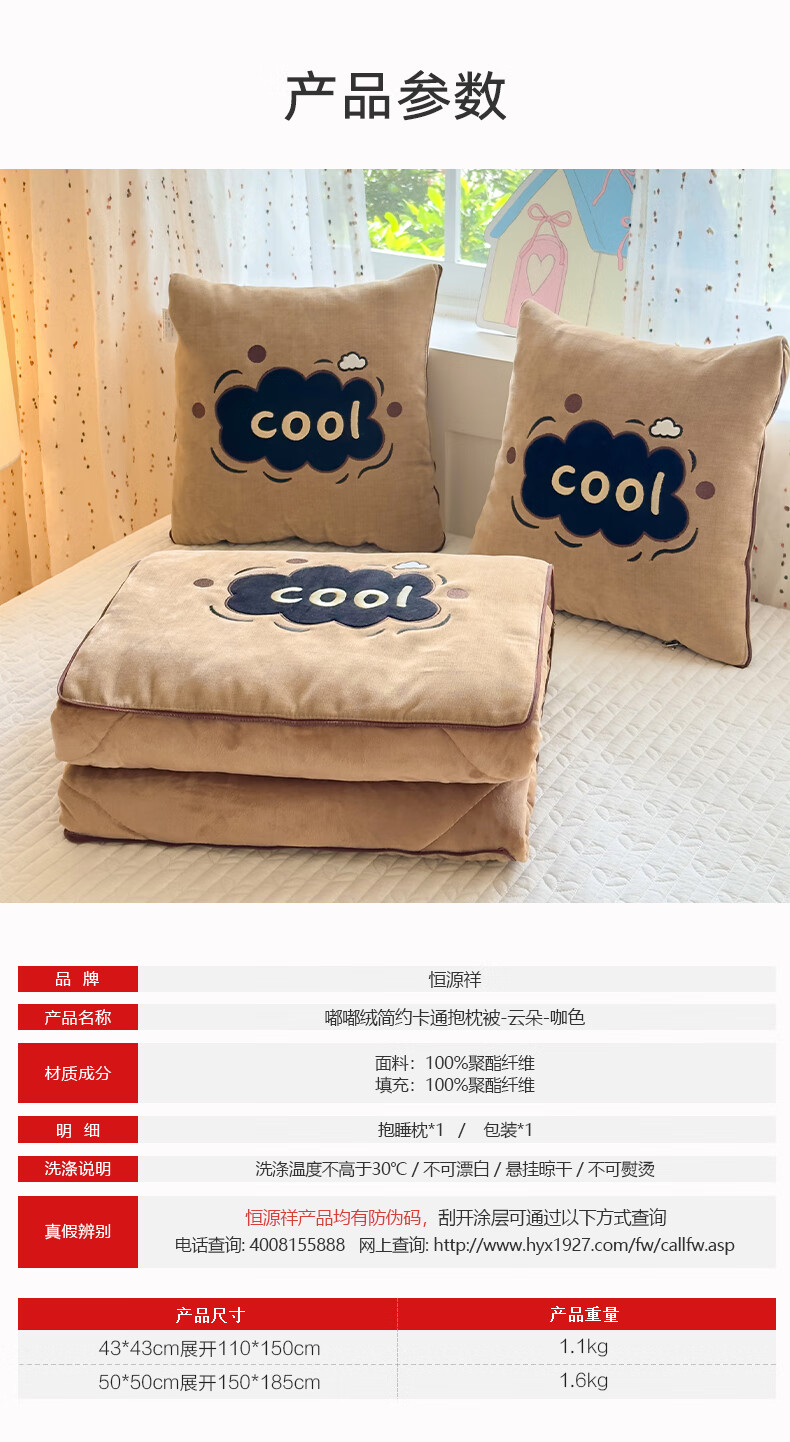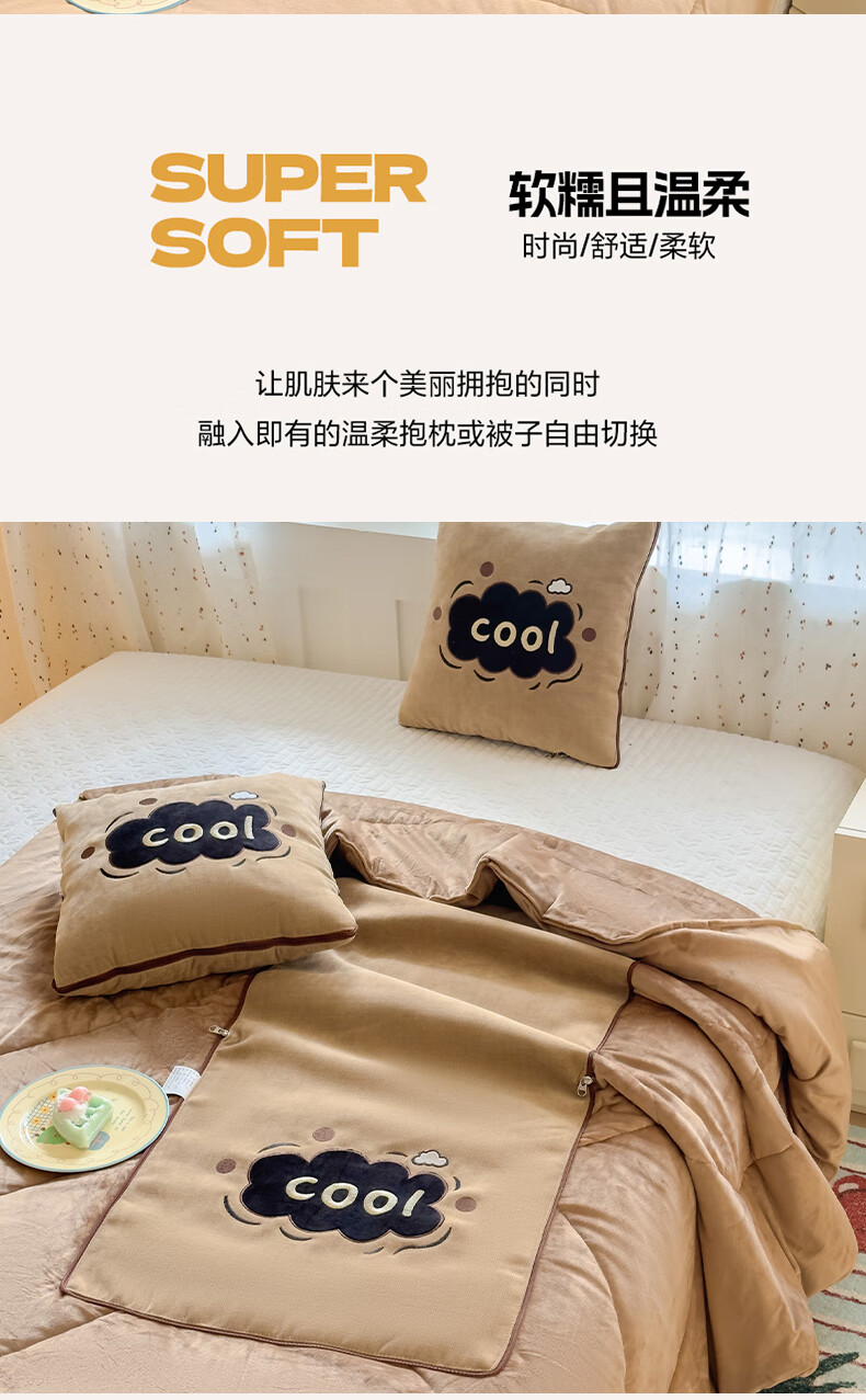 恒源祥抱枕被子枕头两用嘟嘟绒车载被子办公室午睡毯靠枕午休毯毛毯被子 云朵-粉色【嘟嘟绒卡通抱枕被】 43cm*43cm 【展开110*150cm】