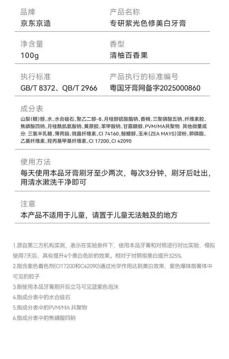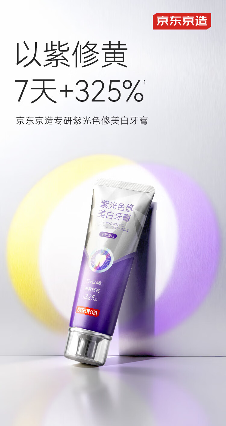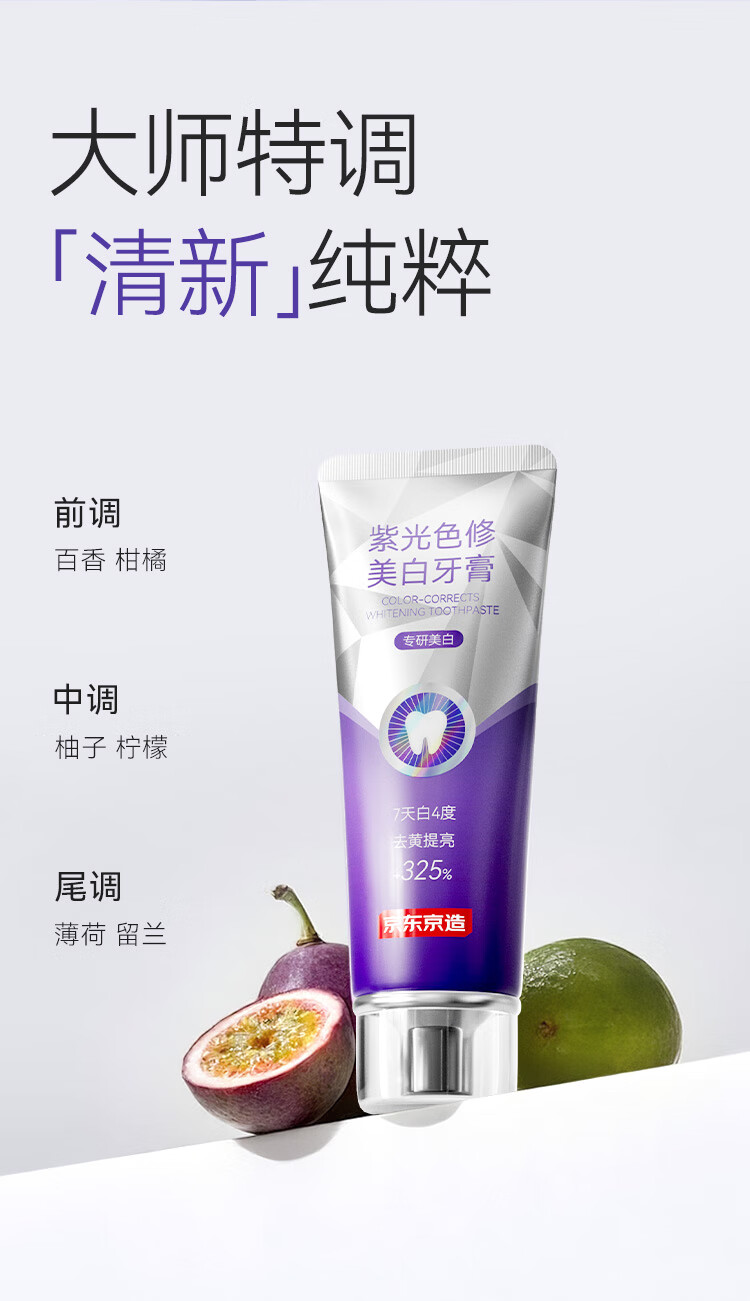 京东京造专研紫光色修美白牙膏100g去渍清新口气大师香氛去黄提亮