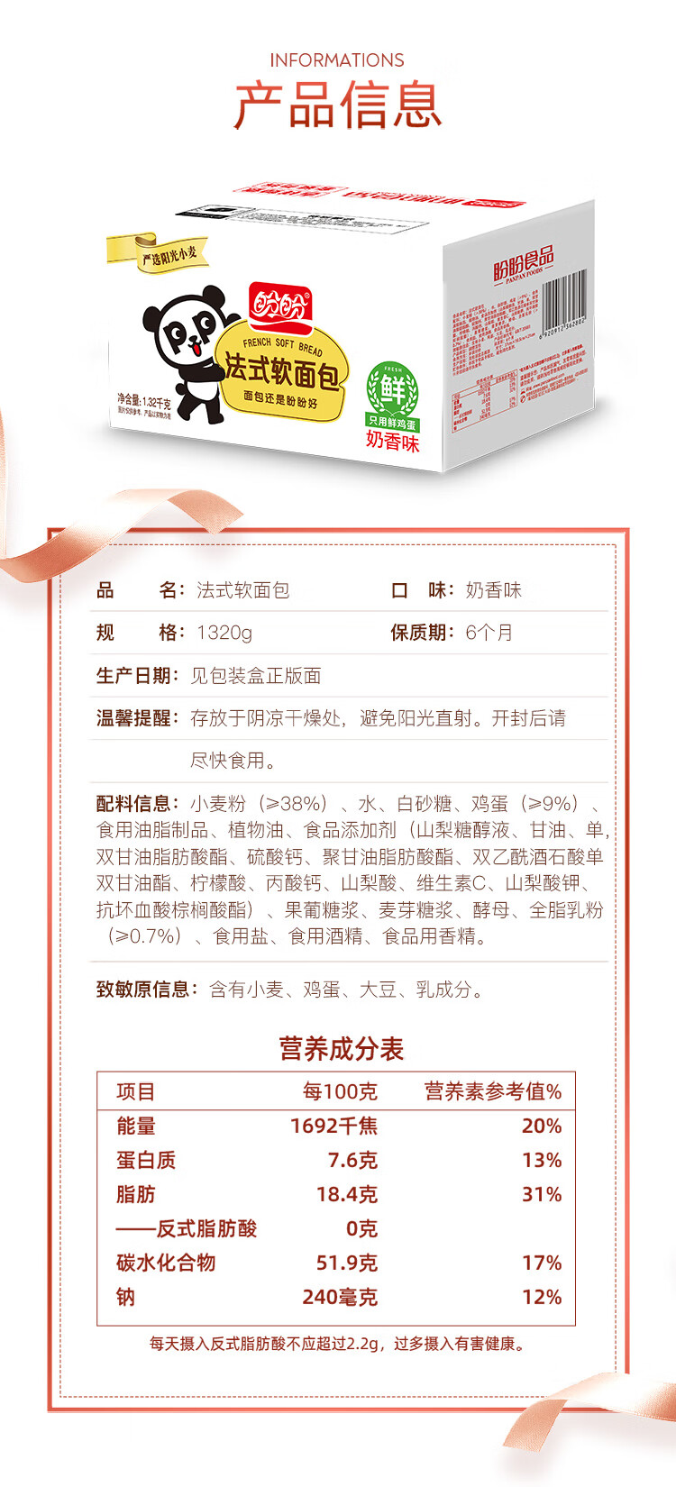 盼盼 法式软面包1320g 早餐面包办公室下午茶休闲零食点心奶香味