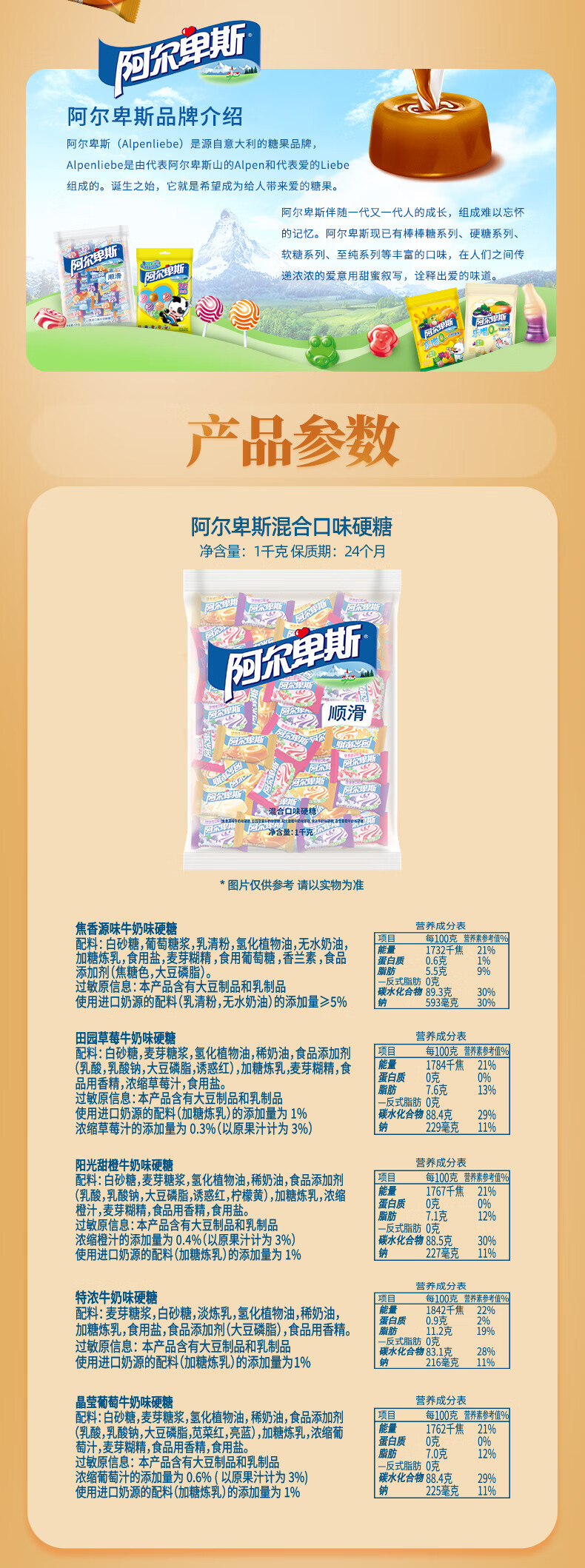 阿尔卑斯 硬糖混合口味1kg 【约260颗】休闲零食儿童水果糖果礼物 年货节