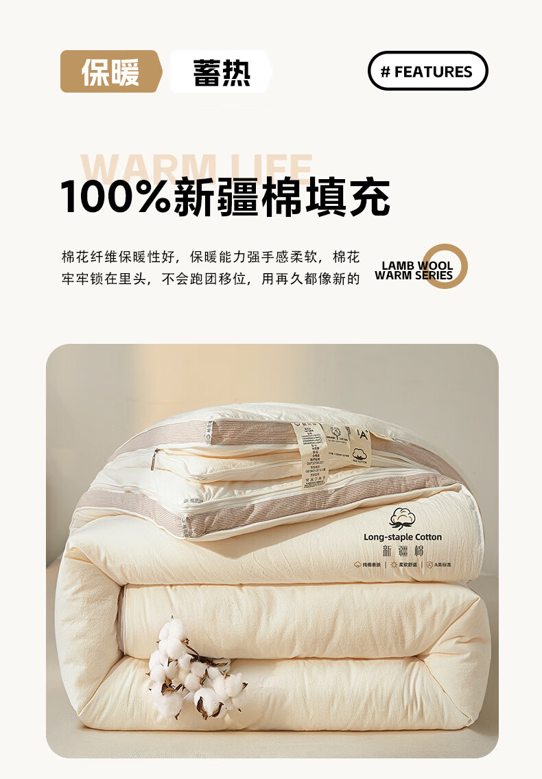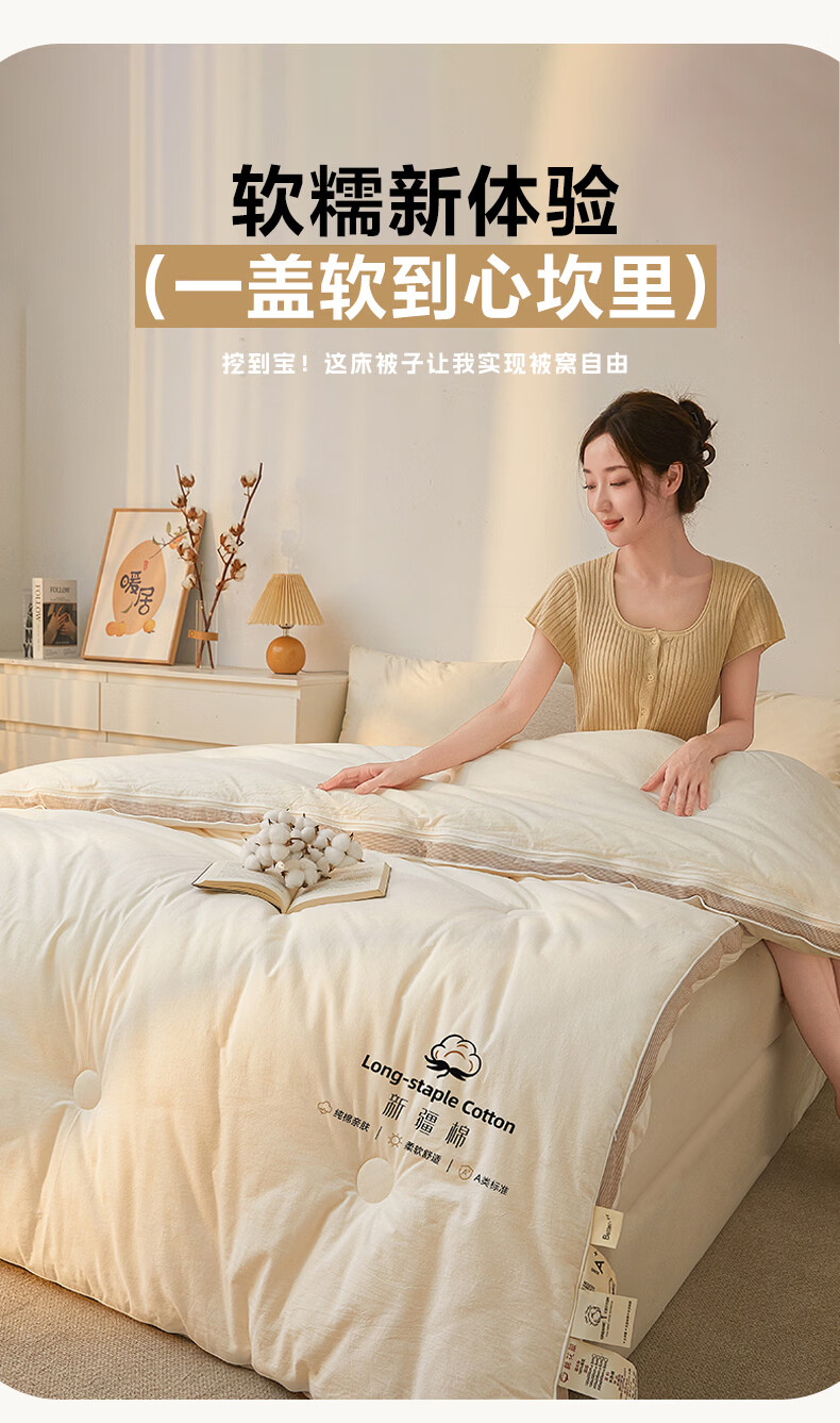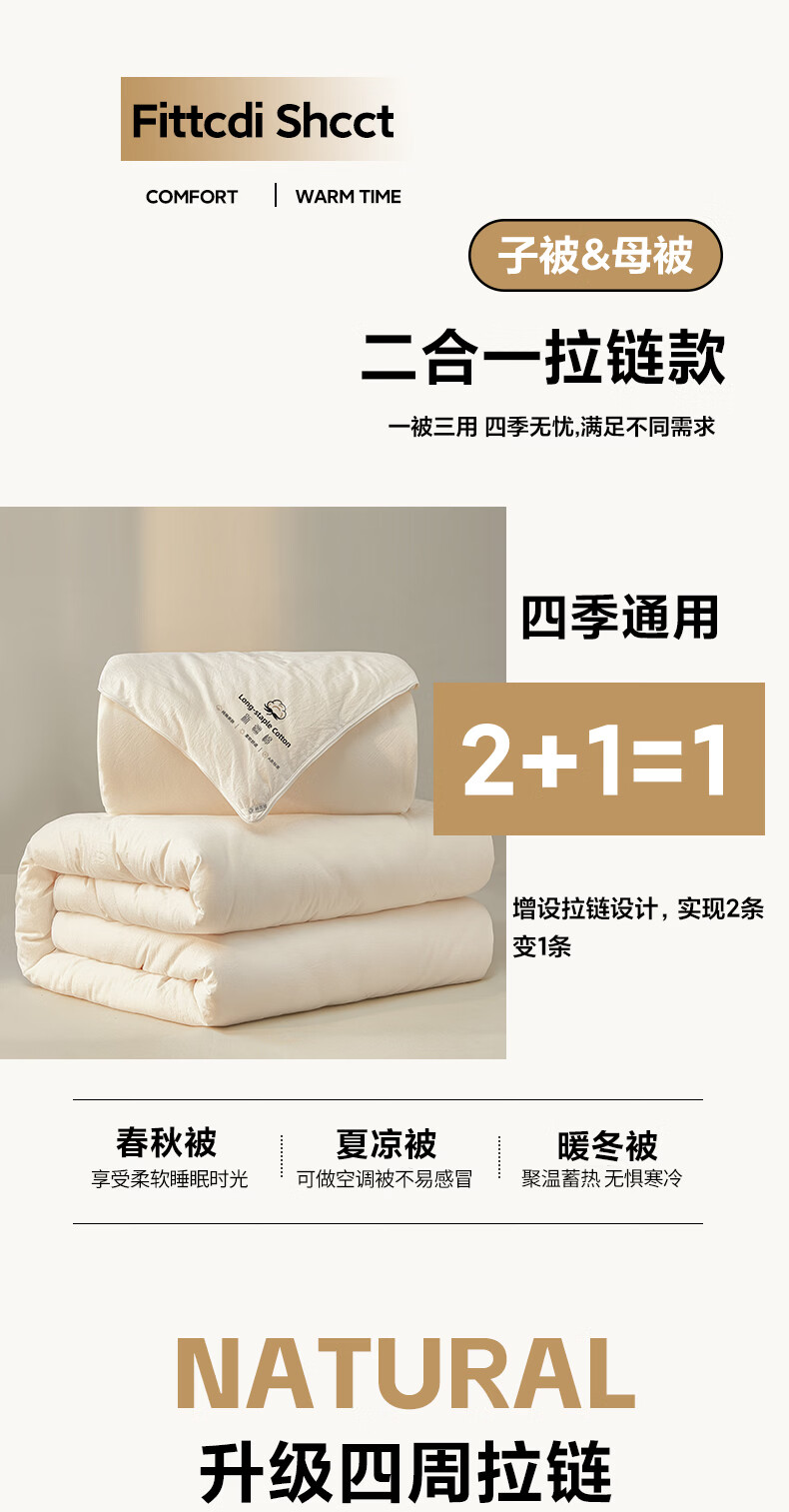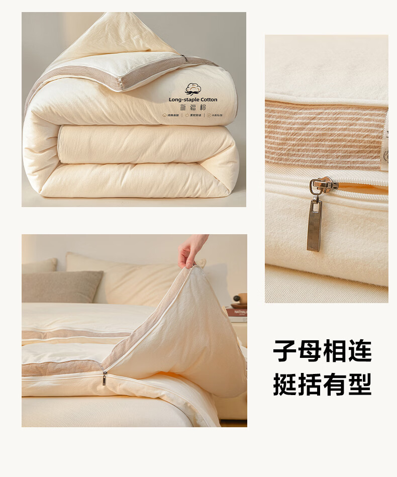 VJE新疆棉花被子母被二合一单人全棉纯棉春秋被芯冬被棉被褥加厚棉絮 新疆棉-米白【100%新疆一级长绒棉花填充 抗菌率99%】 150*200cm拉链款【子被3斤+母被6斤 】二合一设计