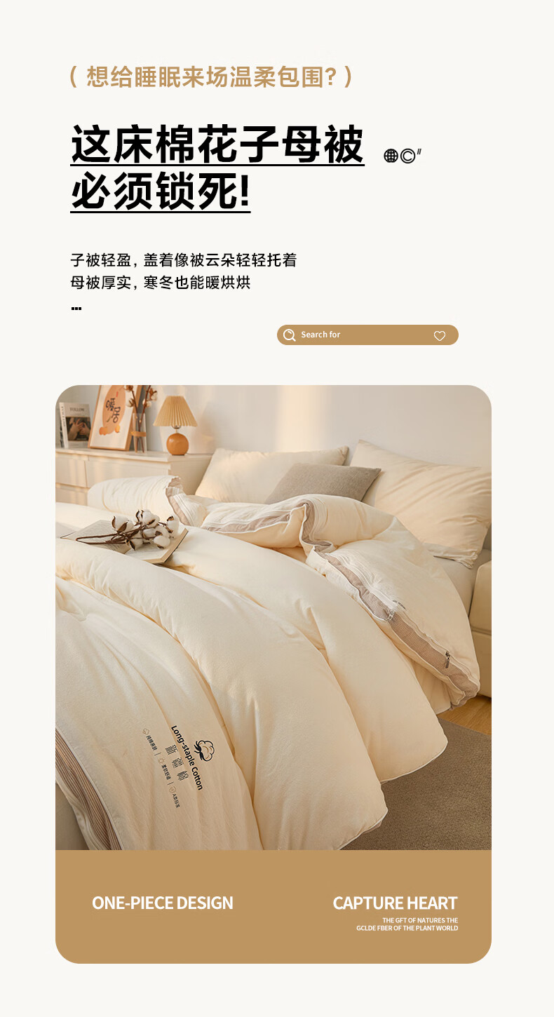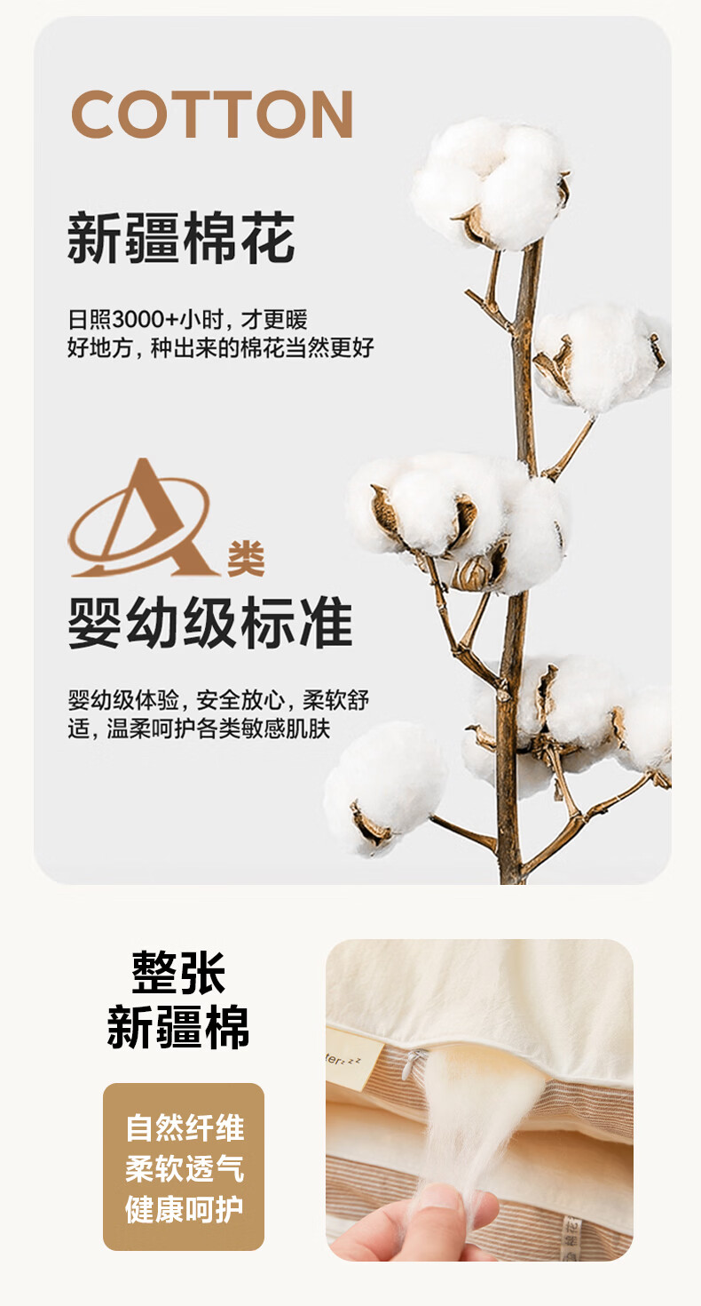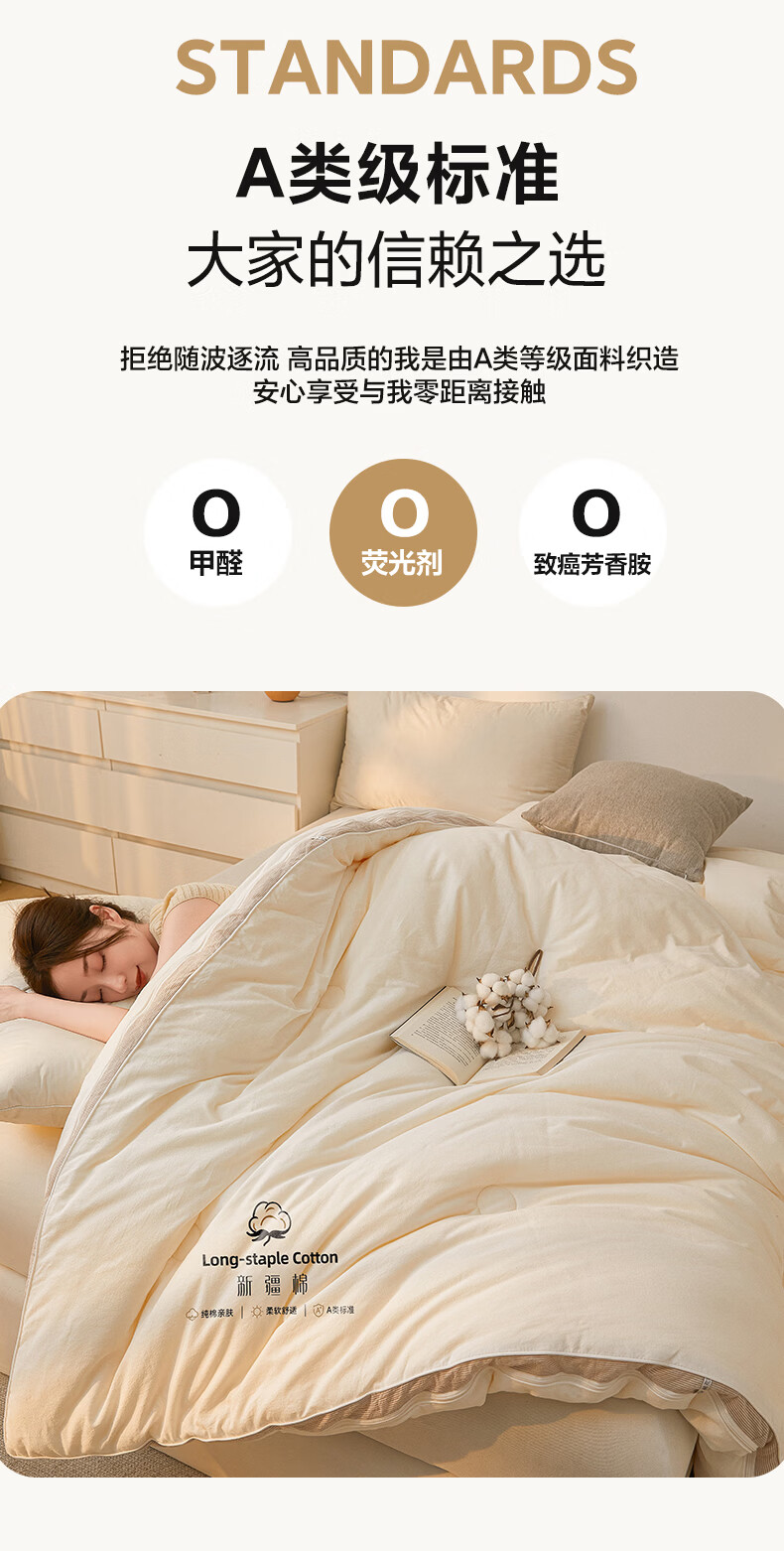 VJE新疆棉花被子母被二合一单人全棉纯棉春秋被芯冬被棉被褥加厚棉絮 新疆棉-米白【100%新疆一级长绒棉花填充 抗菌率99%】 150*200cm拉链款【子被3斤+母被6斤 】二合一设计