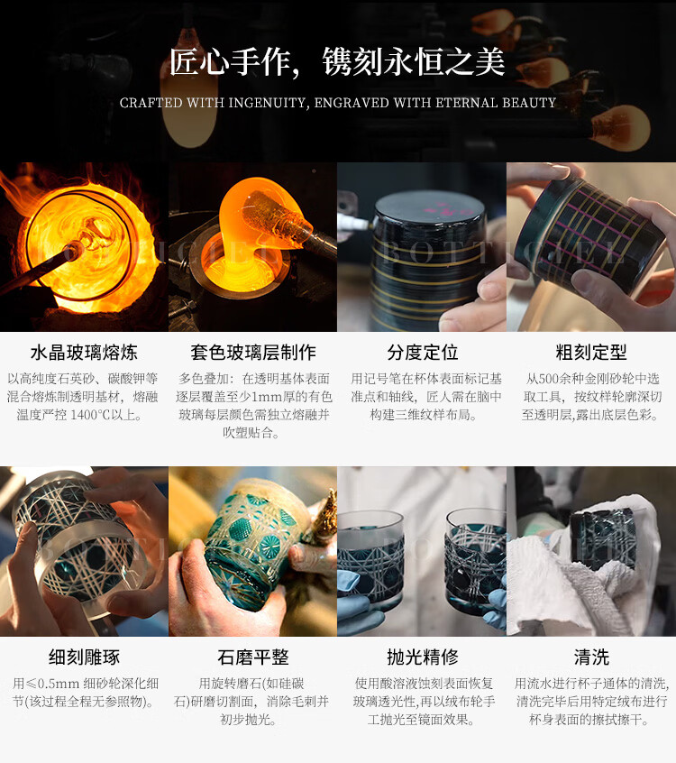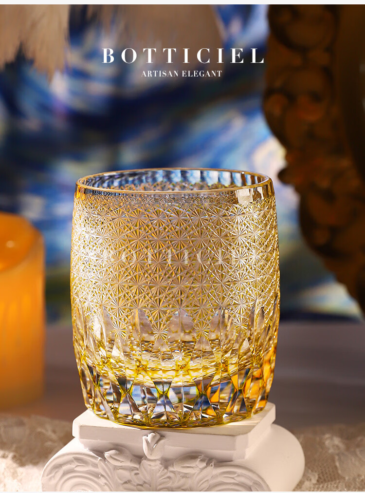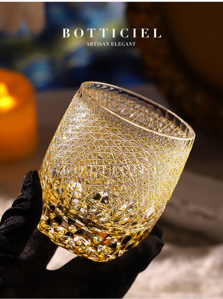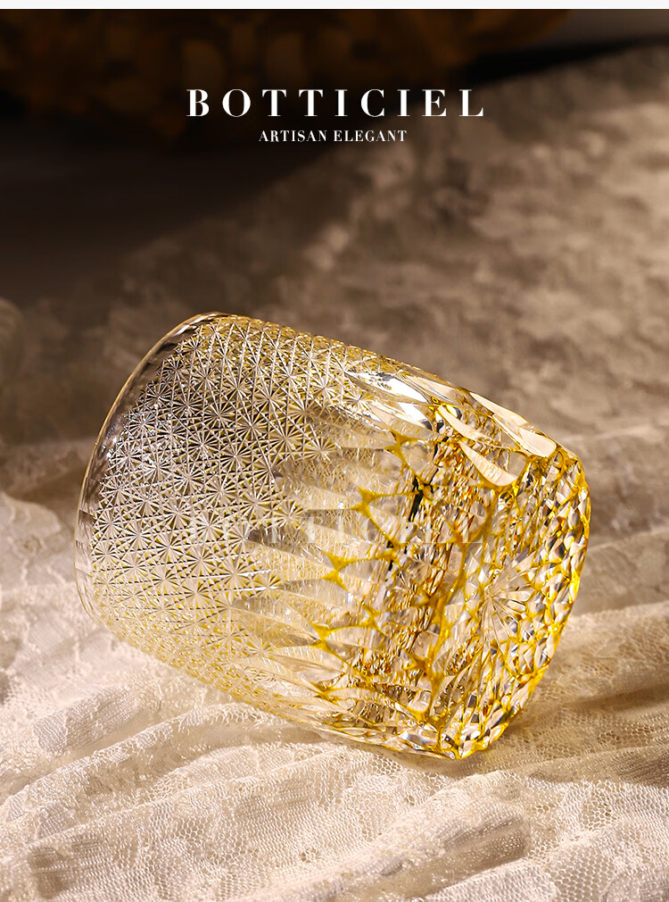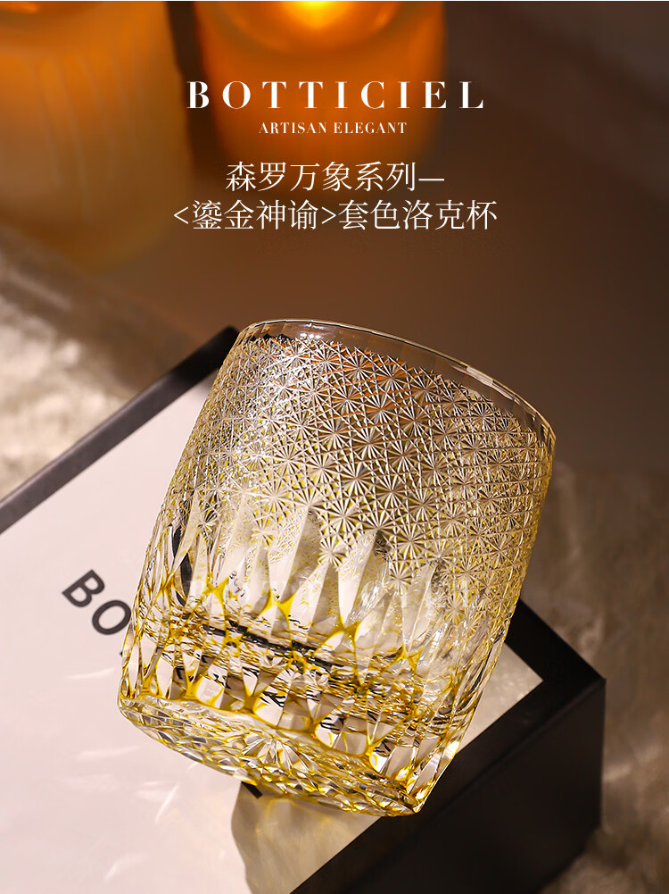 BOTTICIEL鎏金神谕森罗万象江户切子手工雕刻威士忌杯洋酒杯送礼节日礼物 森罗万象-鎏金神谕【双只礼盒装】 320ml 2只