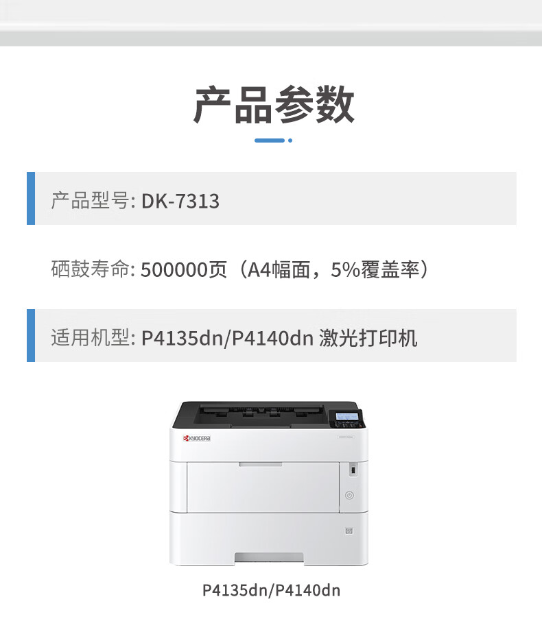 京瓷(KYOCERA)DK-7313原装硒鼓耗材 打印寿命50万页 适用于京瓷P4135dn/P4140dn 打印机