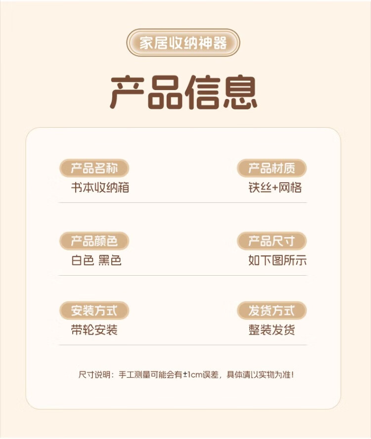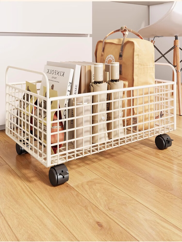 尔思家书本收纳箱高中生教室用装书箱带轮可移动学生宿舍桌下落地置物架 白色大号-带轮