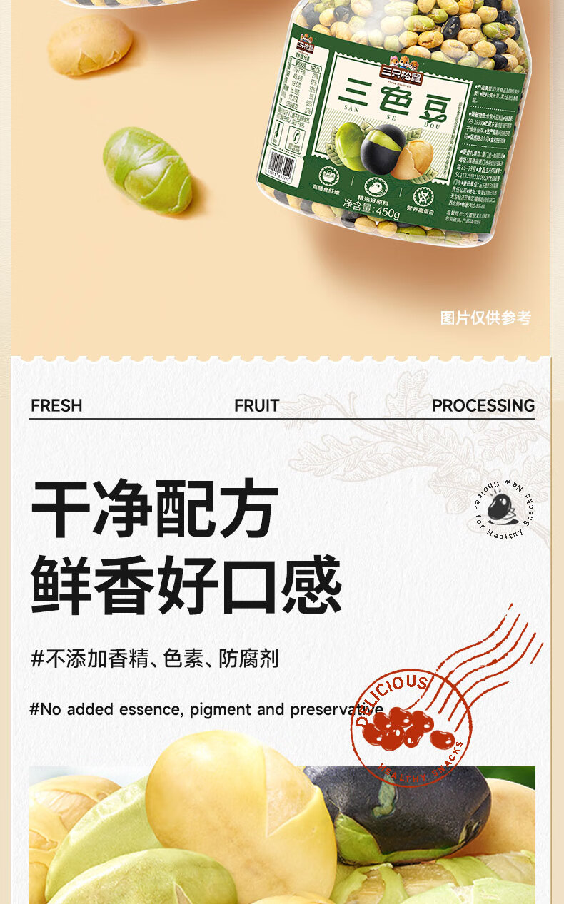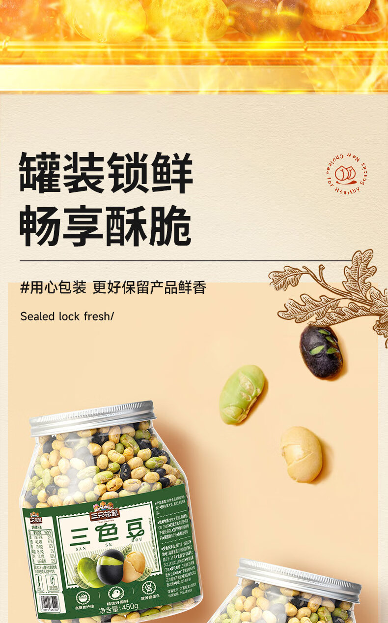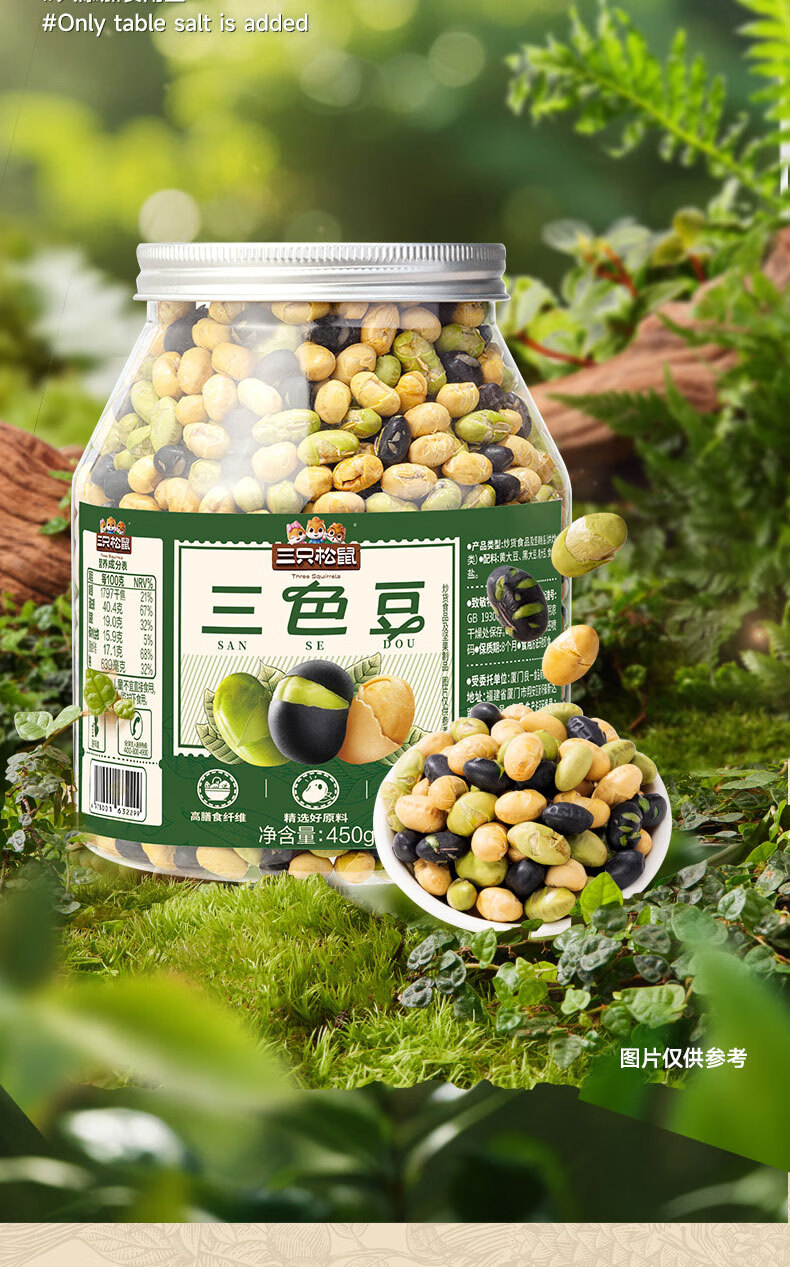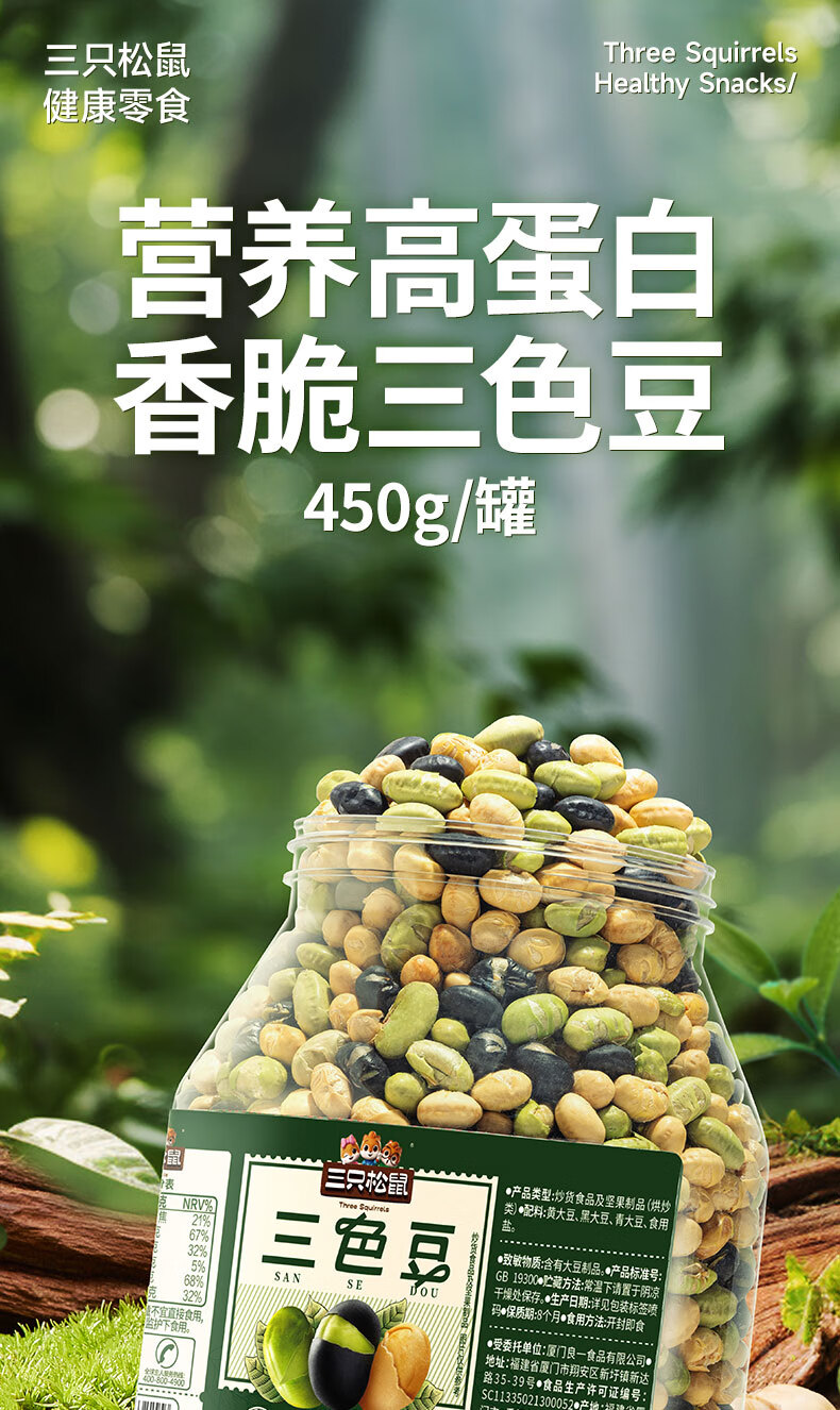 三只松鼠量贩罐装三色豆450g 黄豆黑豆青豆豌豆坚果炒货办公室干果零食
