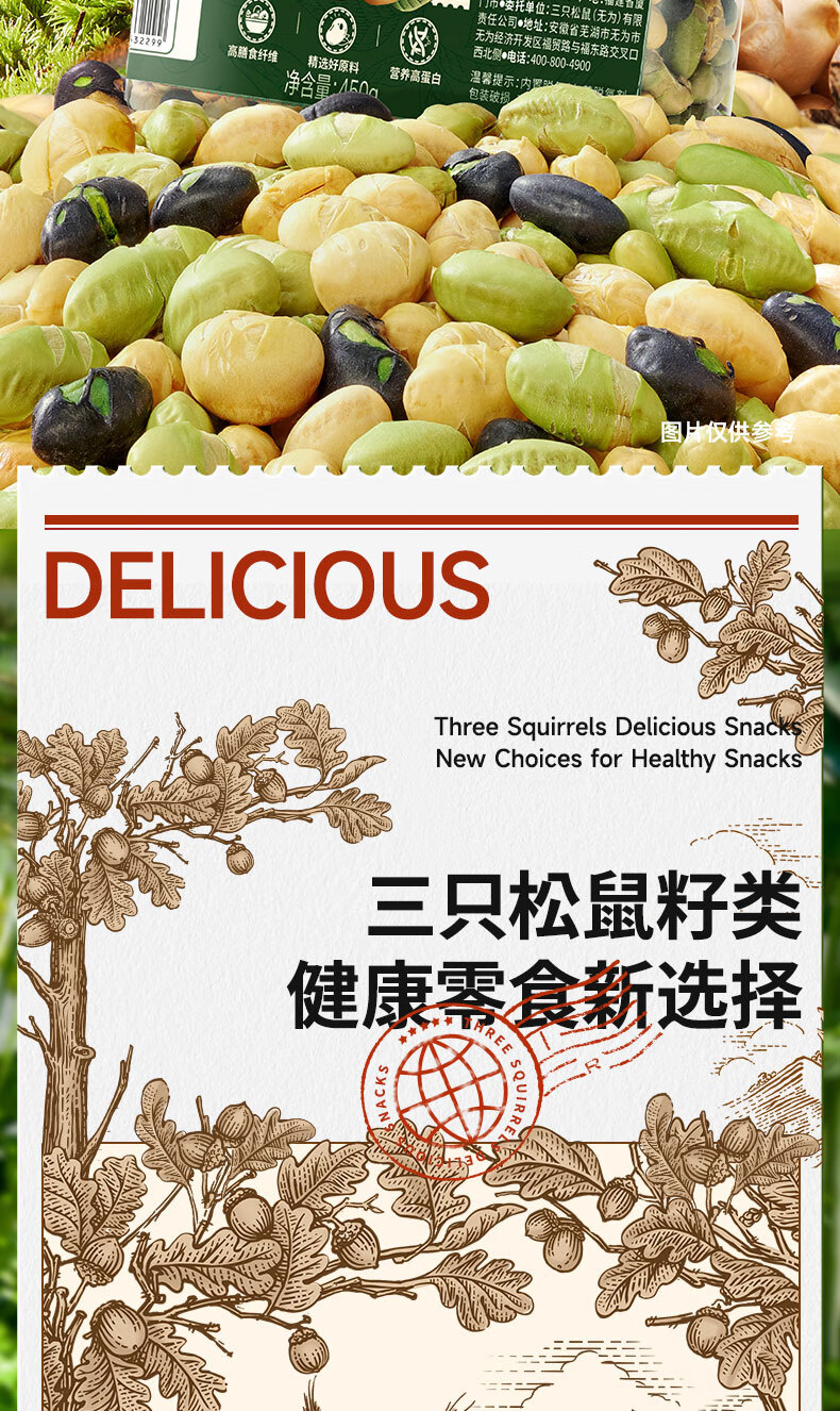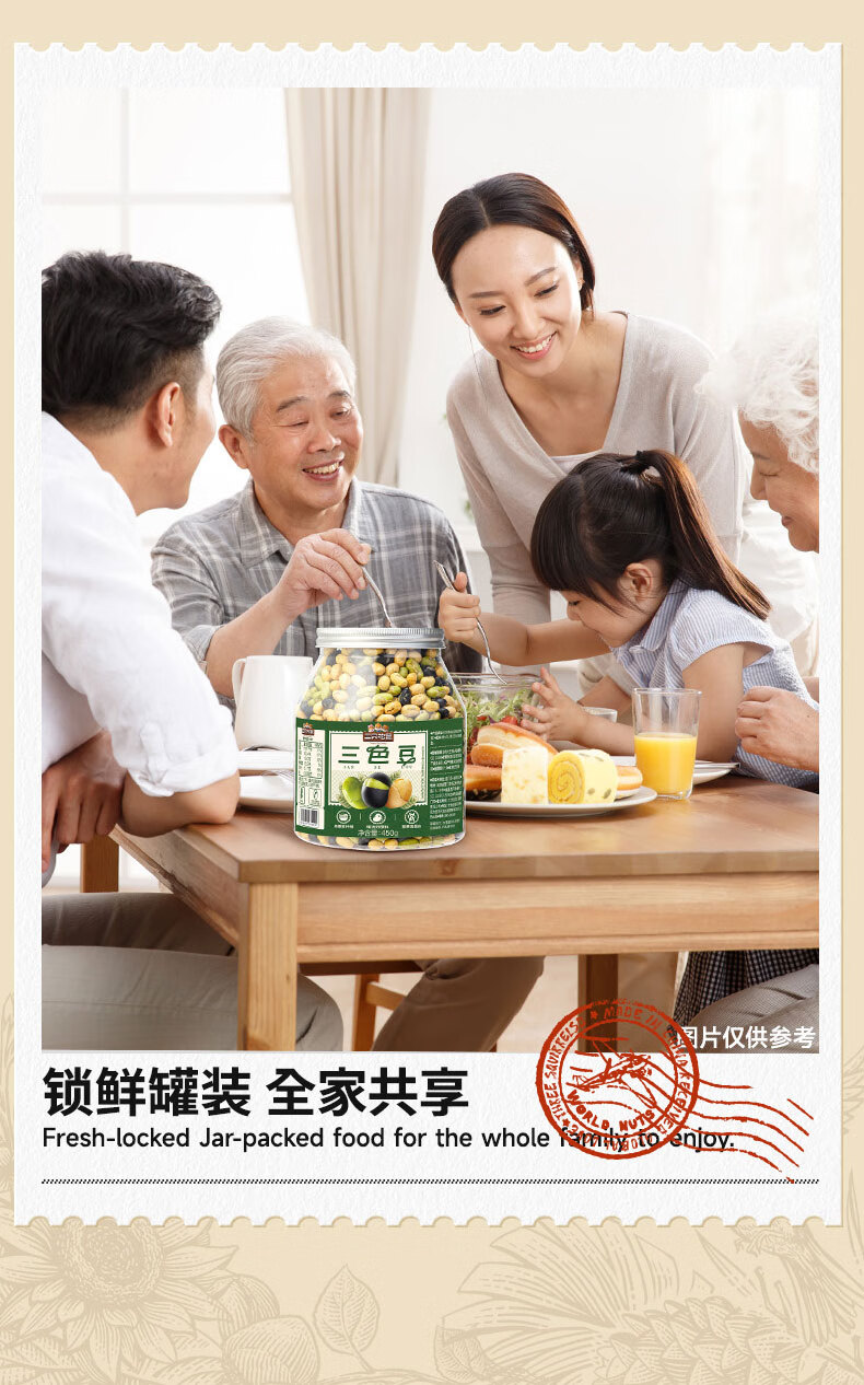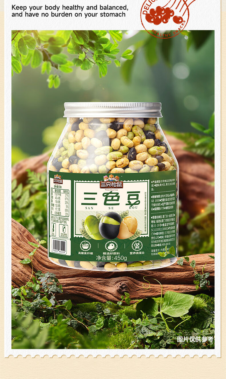 三只松鼠量贩罐装三色豆450g 黄豆黑豆青豆豌豆坚果炒货办公室干果零食
