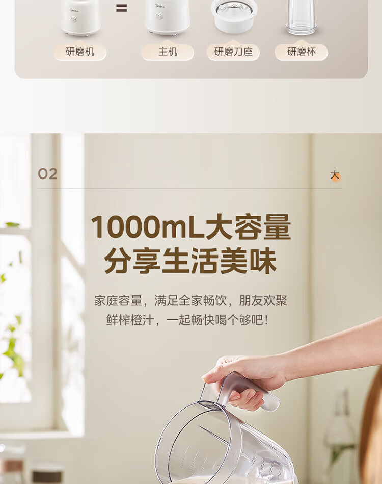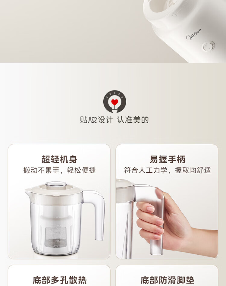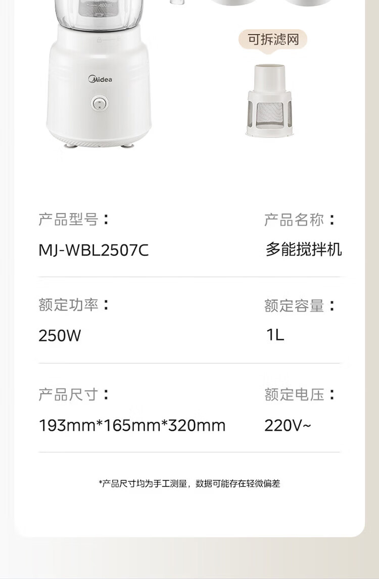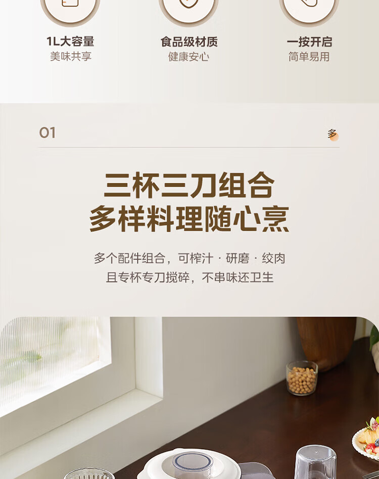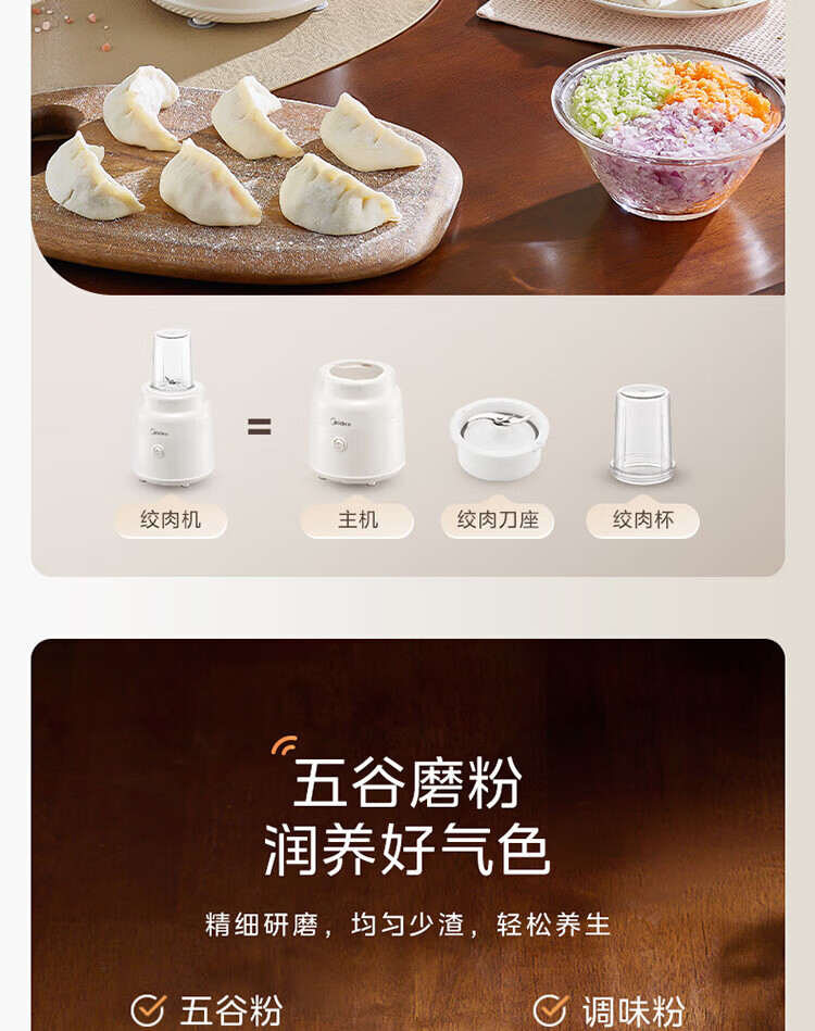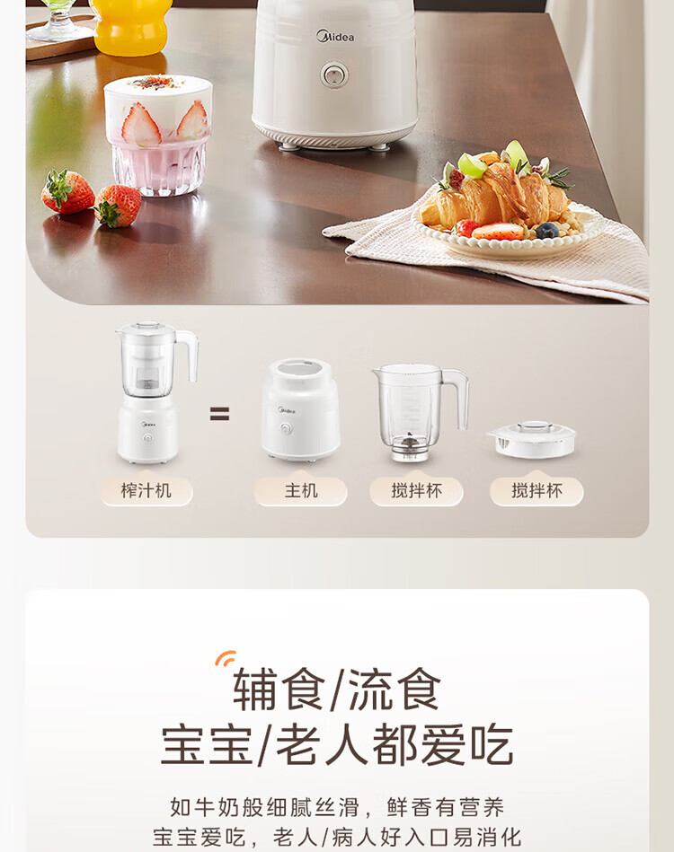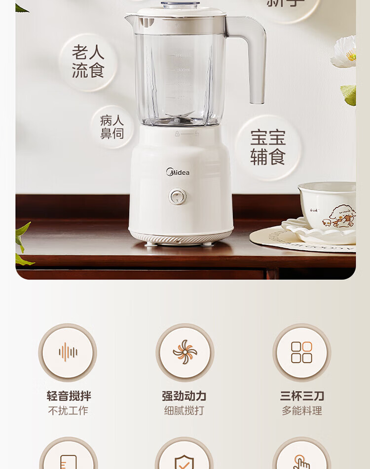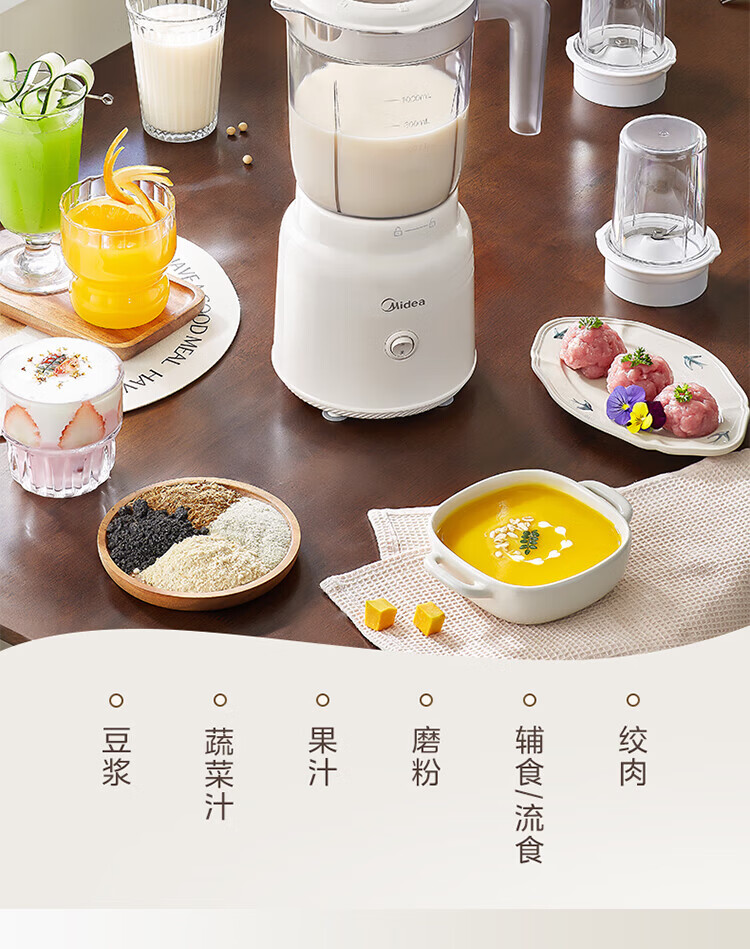 美的(Midea)家用多功能搅拌机料理机 三杯三刀组合 双重强劲动力一键启动易清洗 果蔬汁绞肉磨粉婴儿辅食