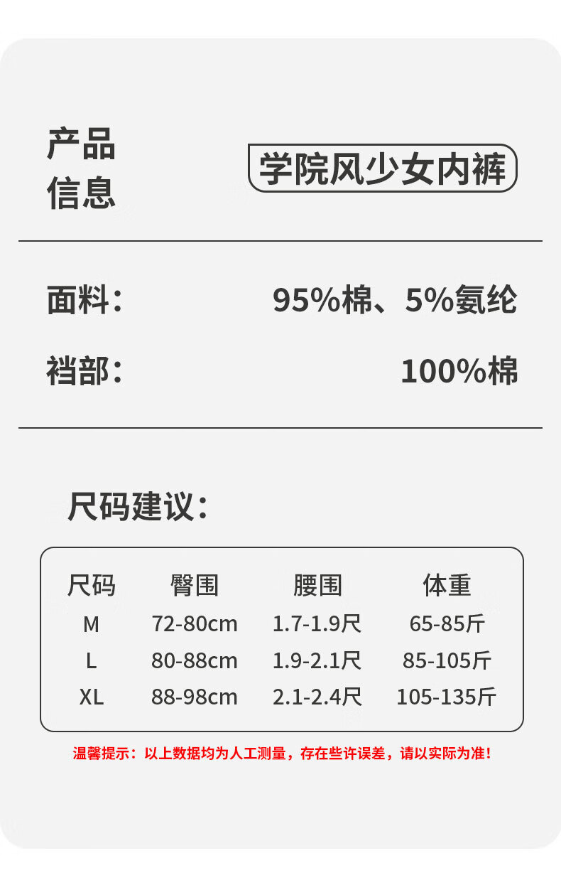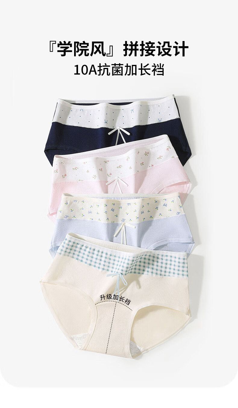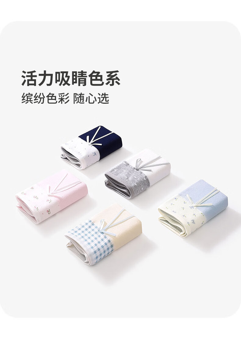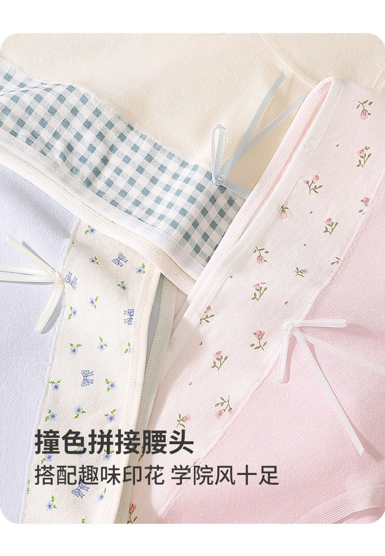 稚蝶学院风纯棉少女三角裤抗菌10A内档中高腰拼色全棉女生内裤学生 混色 5条组合 5条 L 【85-105】斤