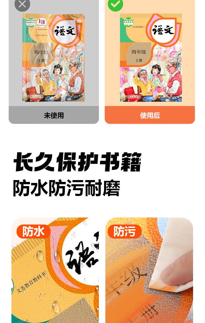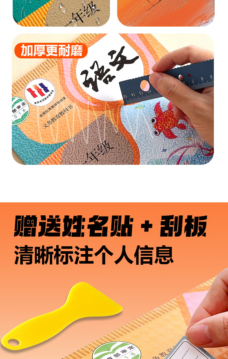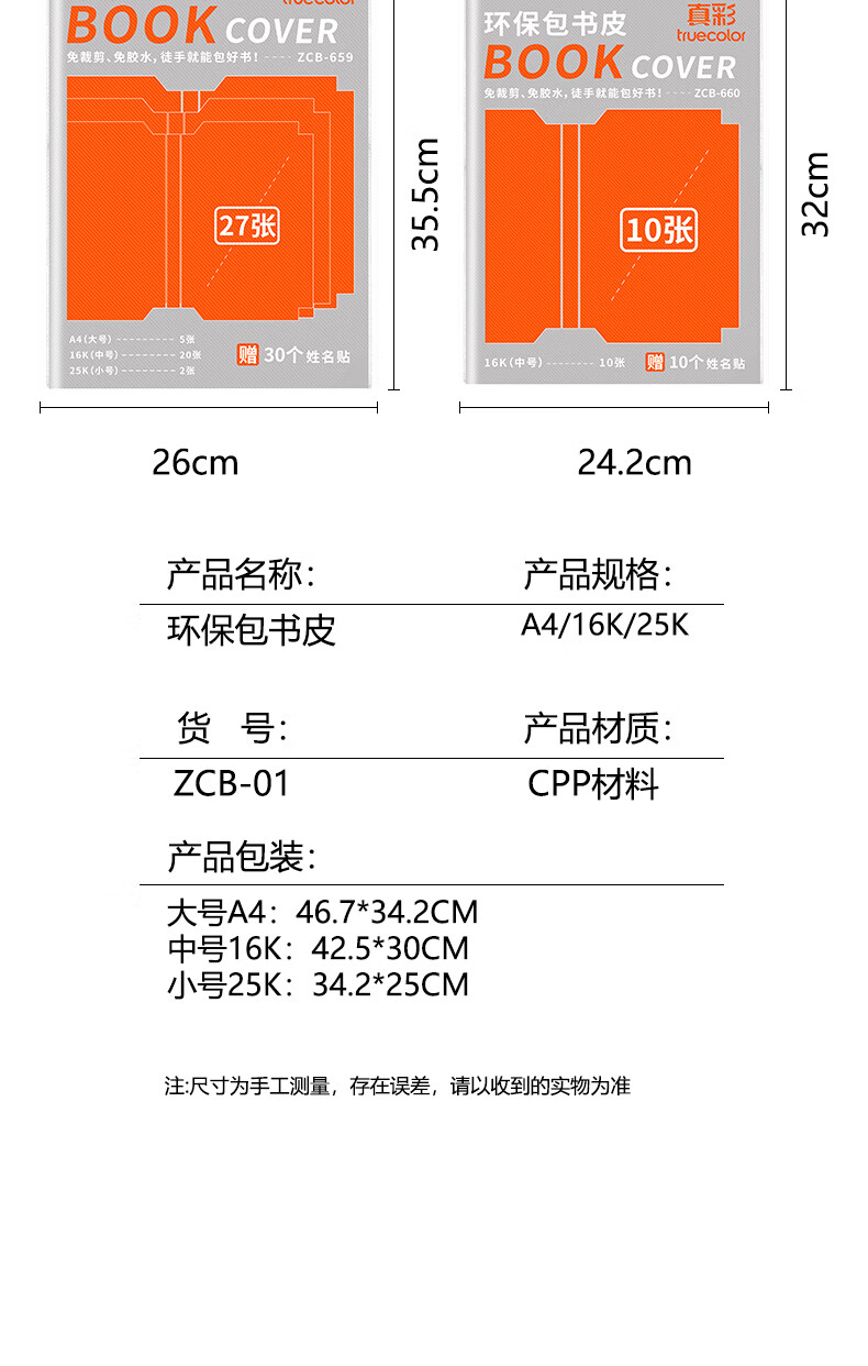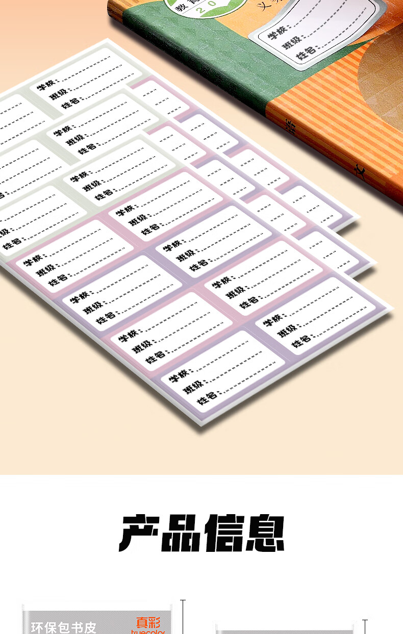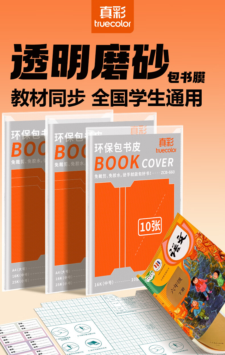 真彩(TRUECOLOR)加厚环保书皮自包书皮贴纸自粘透明磨砂书膜防磨损防水全套中小学生一二三年级包书纸全套A4书壳 全年级通用推荐【大5中20小2】30枚姓名贴+刮刀